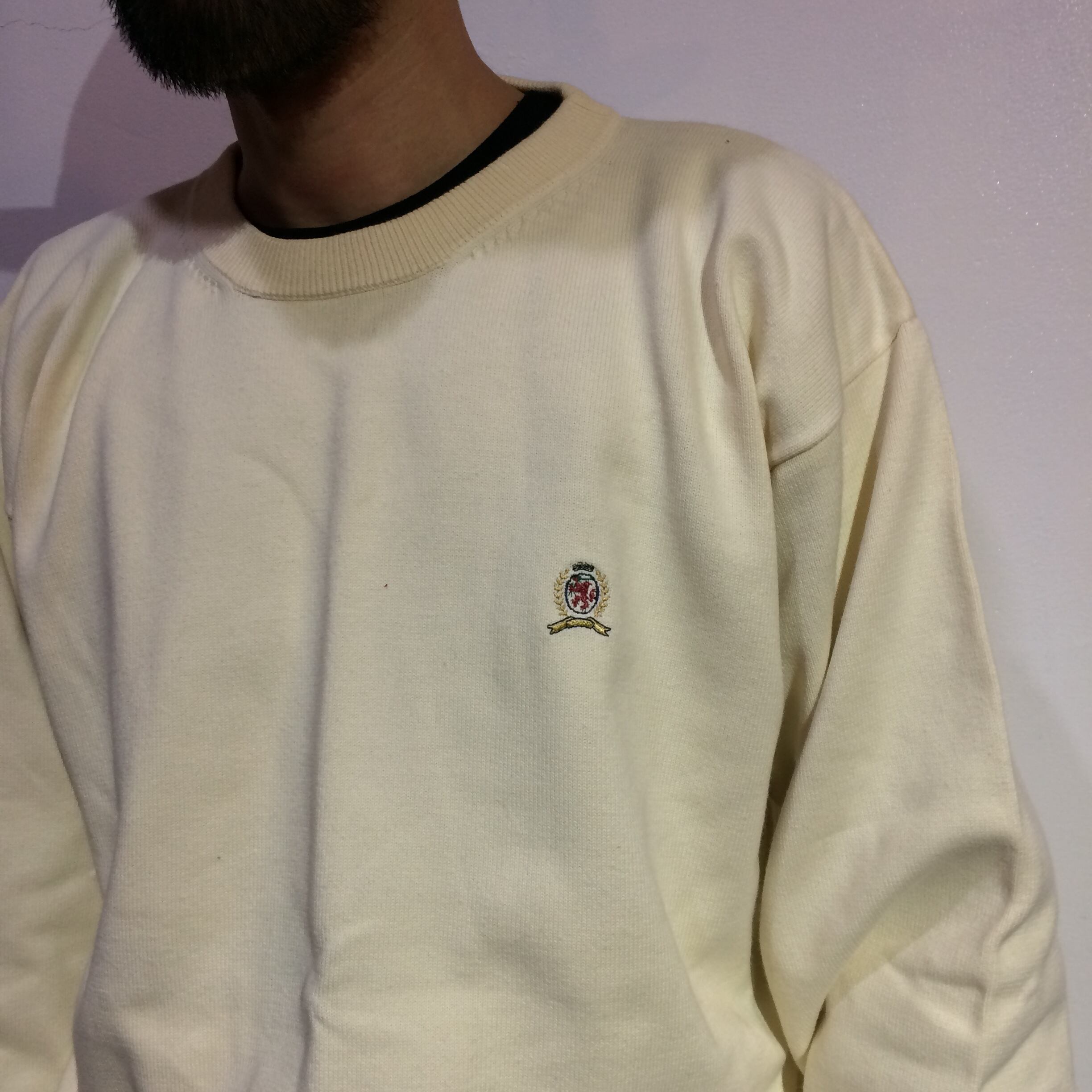 こちらはアメリカから入荷致しました、トミーヒルフィガーのワンポイント刺繍コットンニットプルオーバーになります!