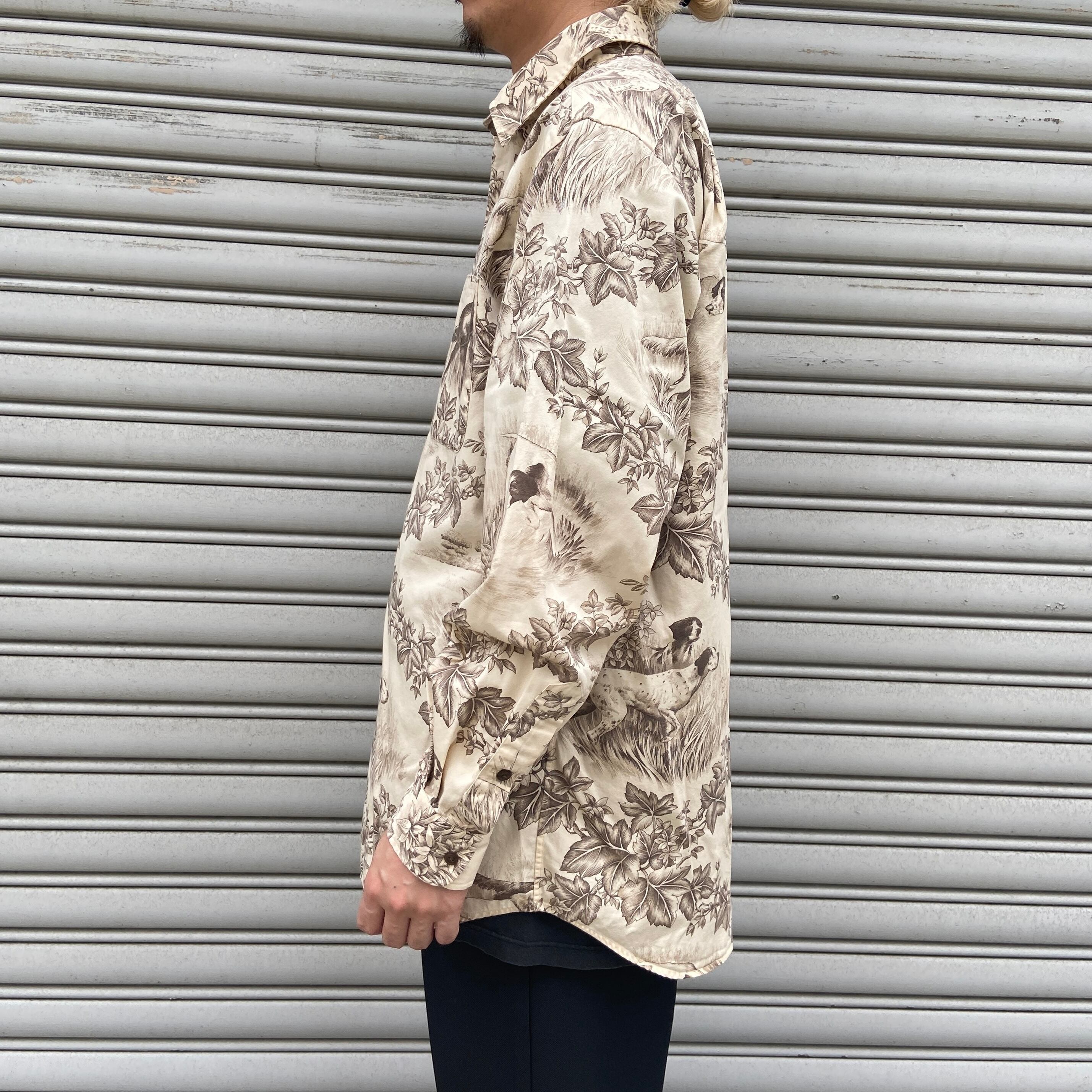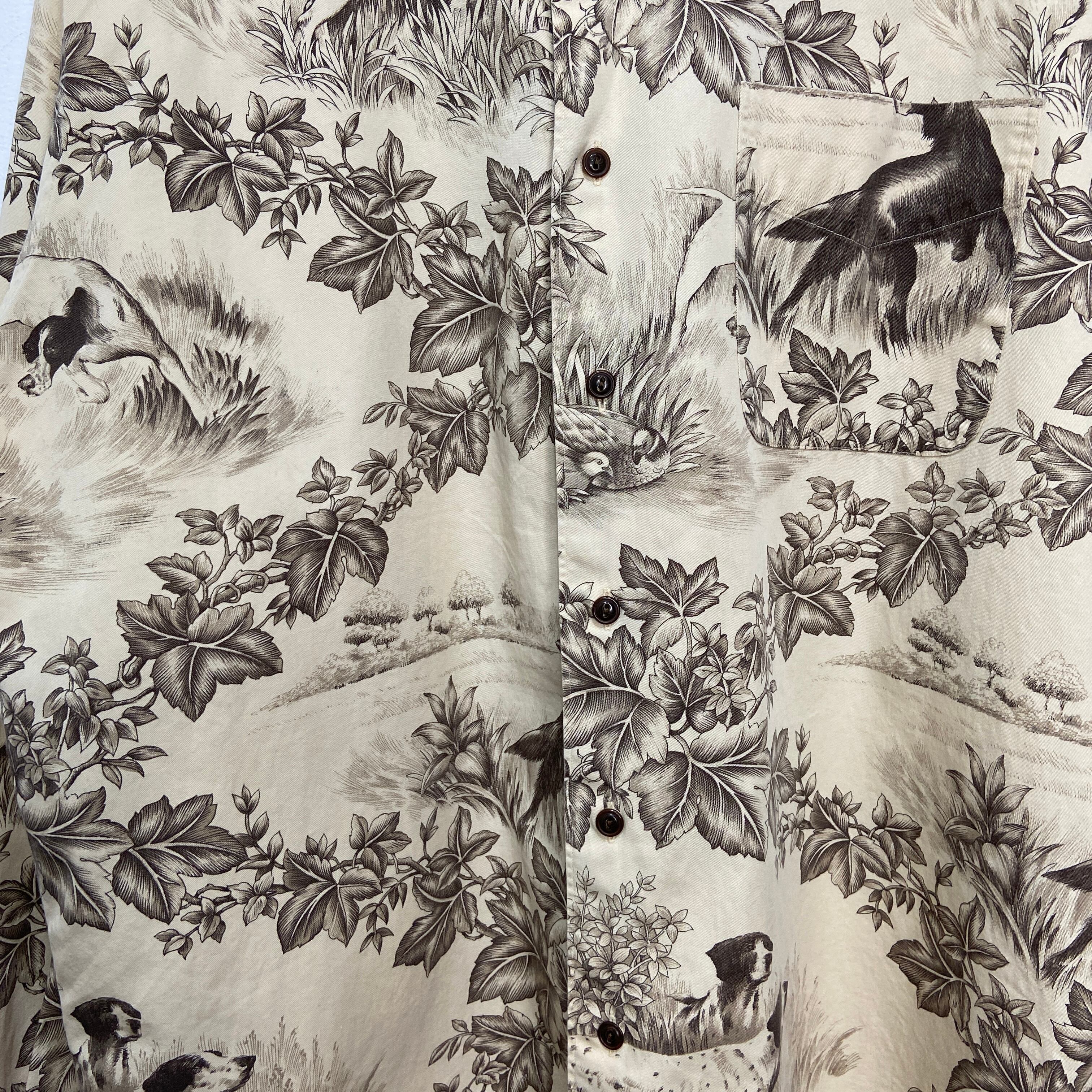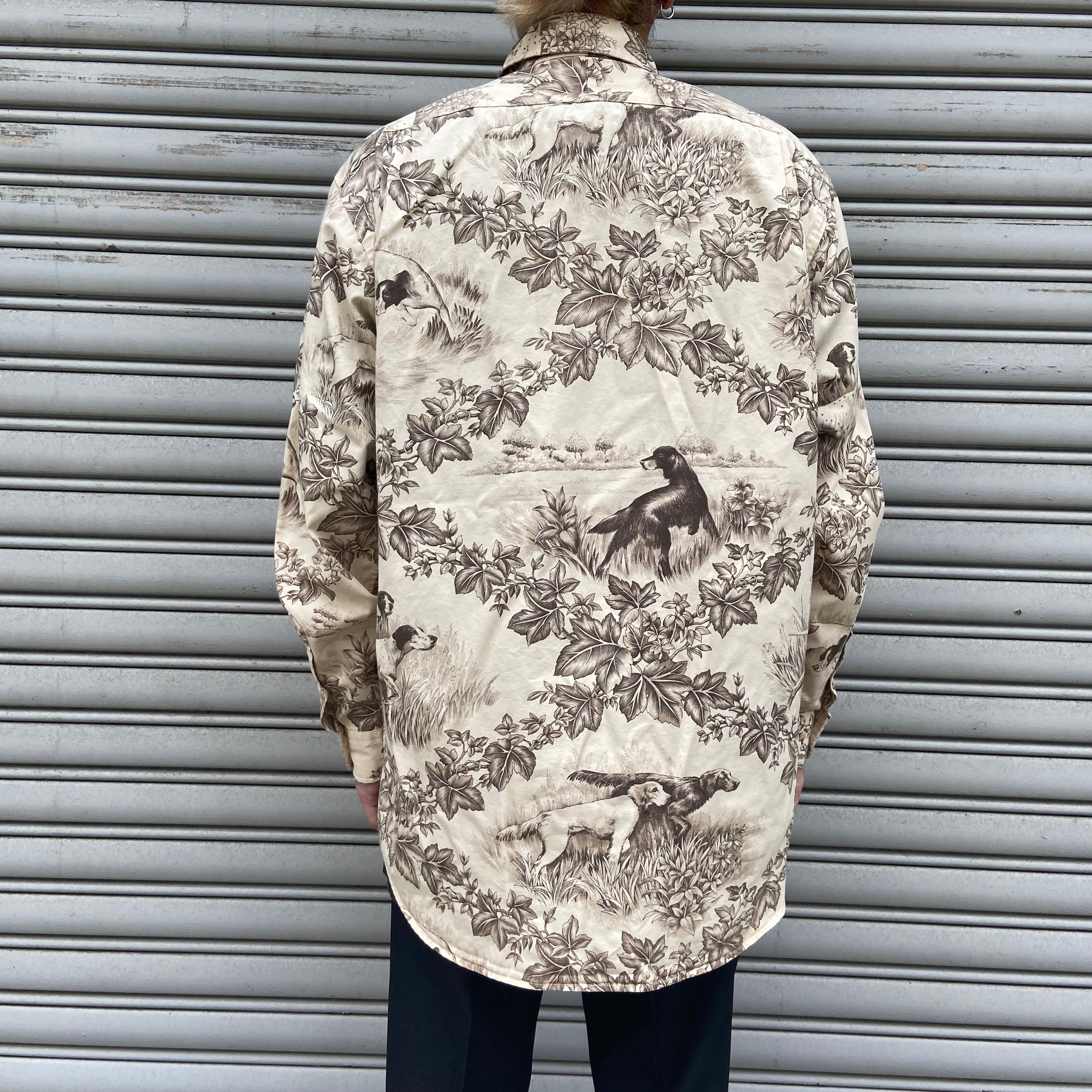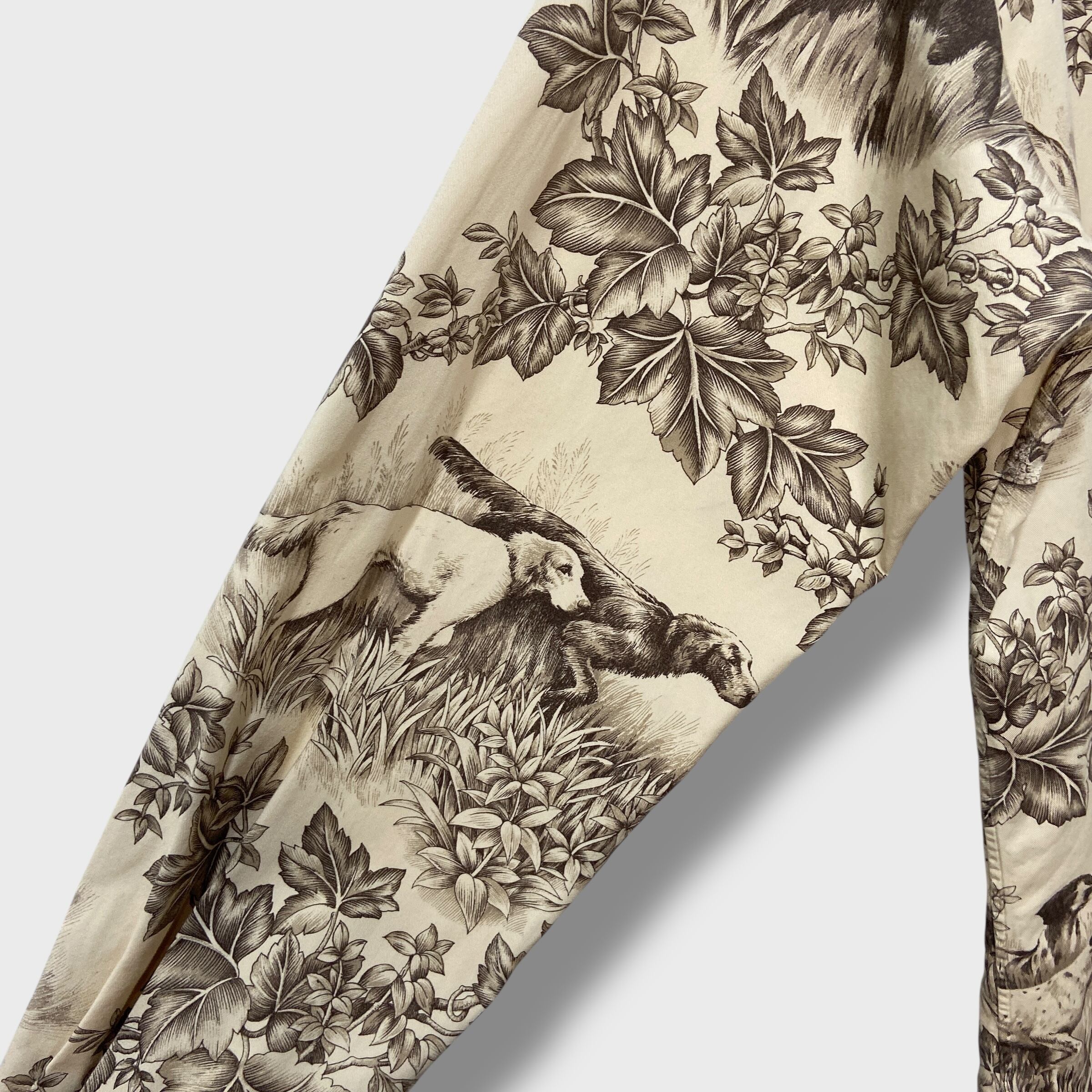 繊細なタッチで描かれたハンティングドッグ達とボタニカルな自然の風景が見事にマッチした1着です!