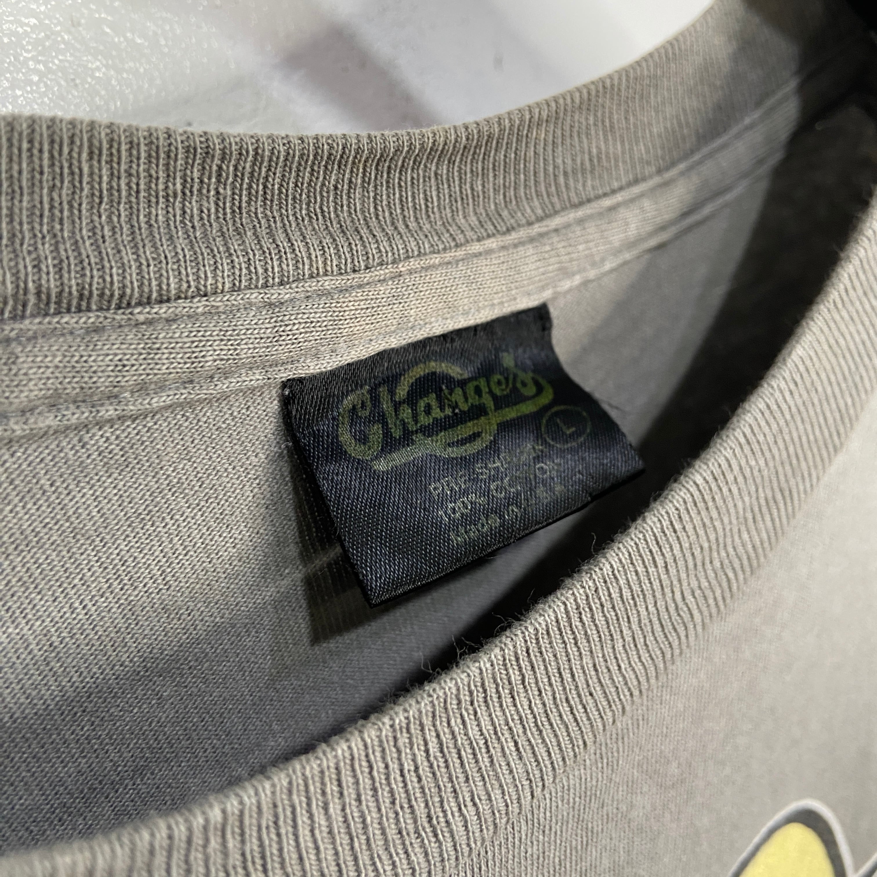 全体的に使用感、フェードした色落ち、プリントのヒビ割れはございます。お腹付近に薄汚れがあります。