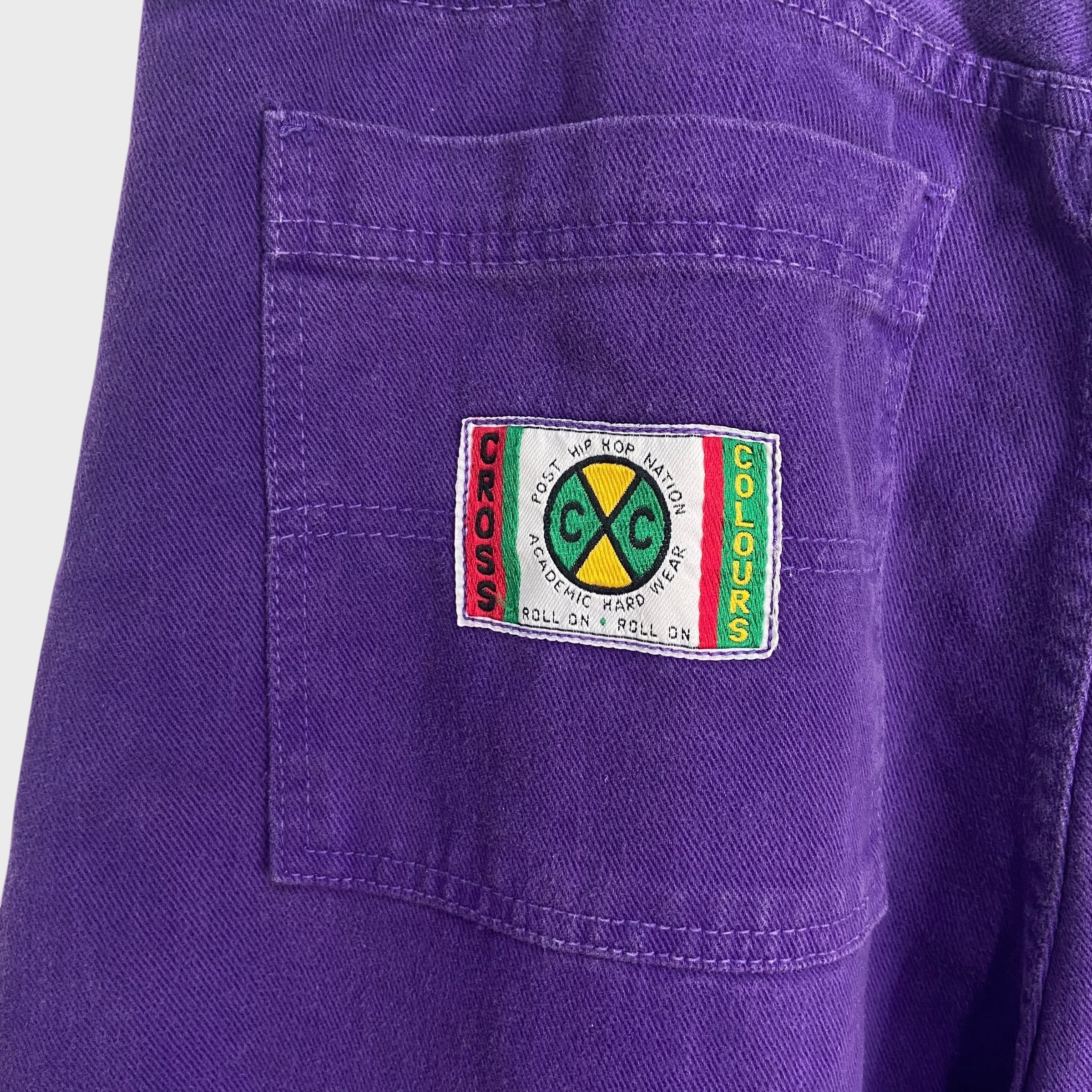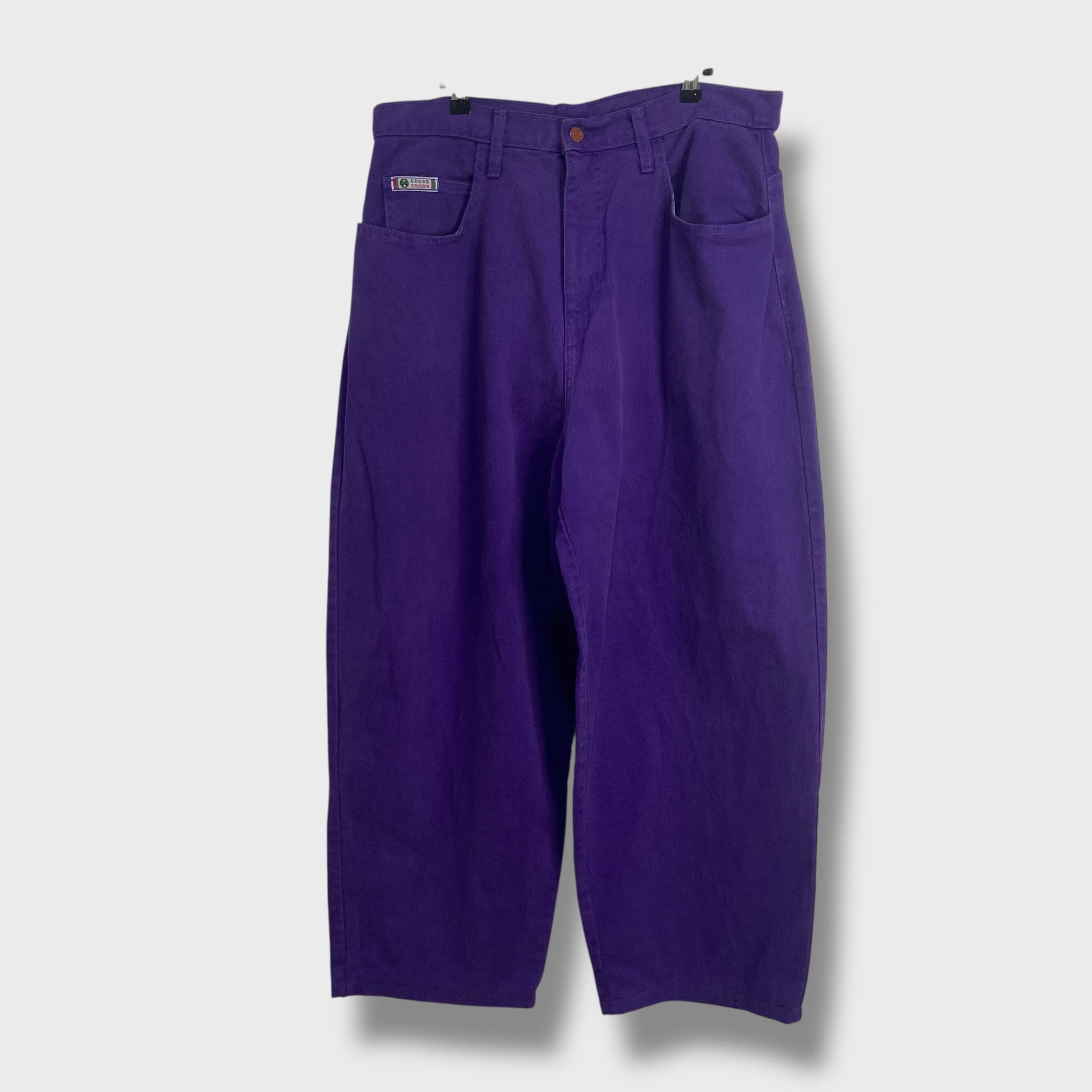90s USA製 クロスカラーズ ワイドバギーパンツ カラーデニム 紫 W38