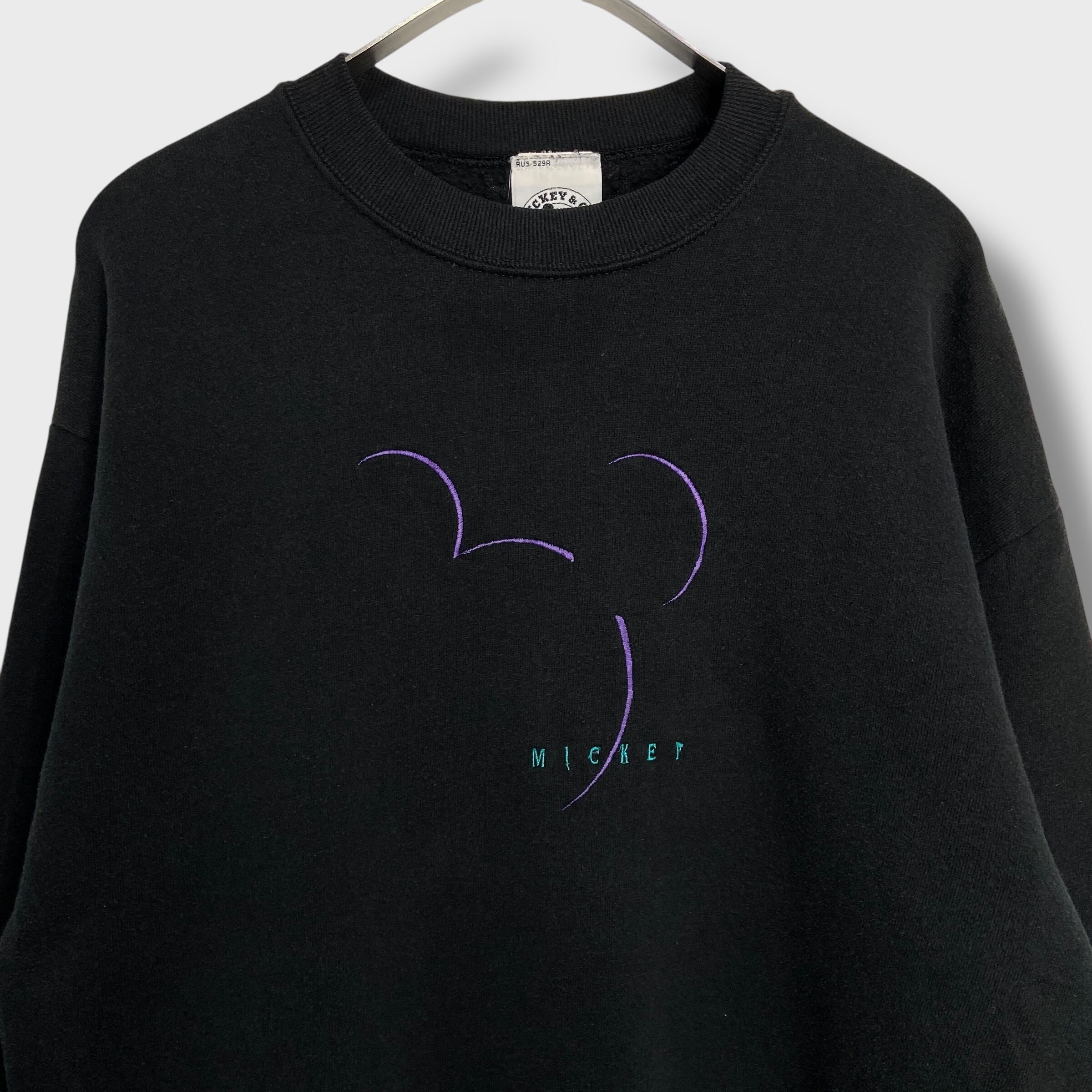 ブラックボディにミッキーマウスの輪郭とロゴがお洒落に刺繍デザインされたスウェットです^ ^