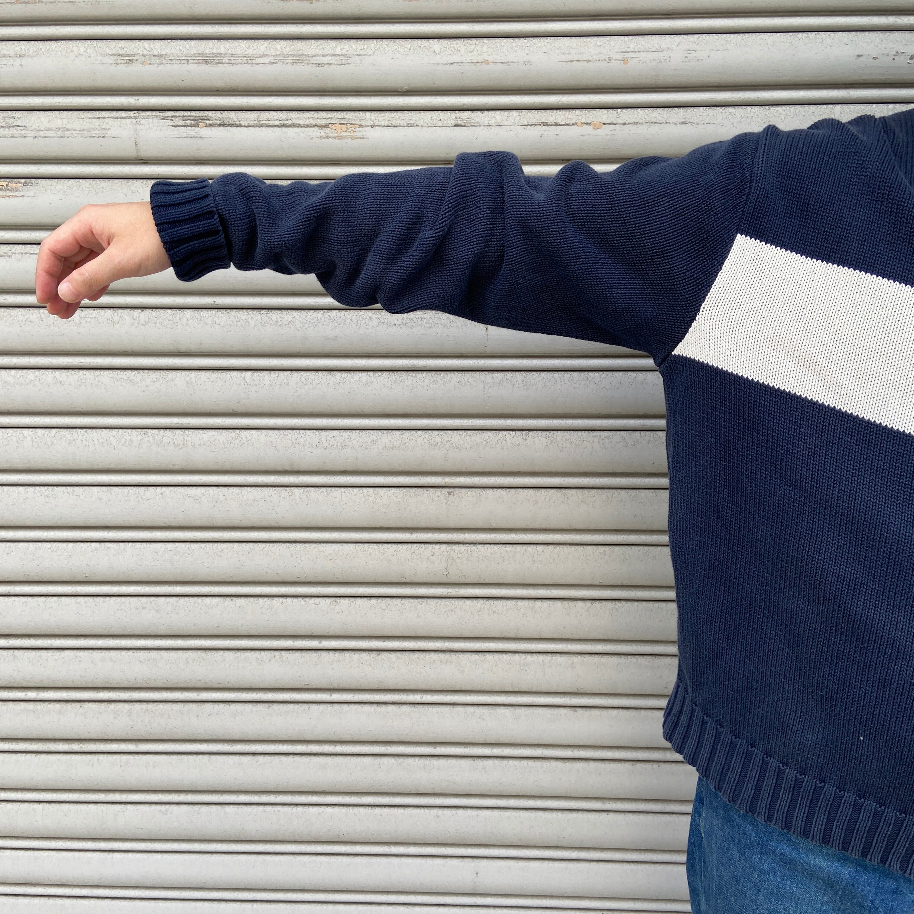 ピッチの太い白いラインがアクセントとなったコットンニットです!