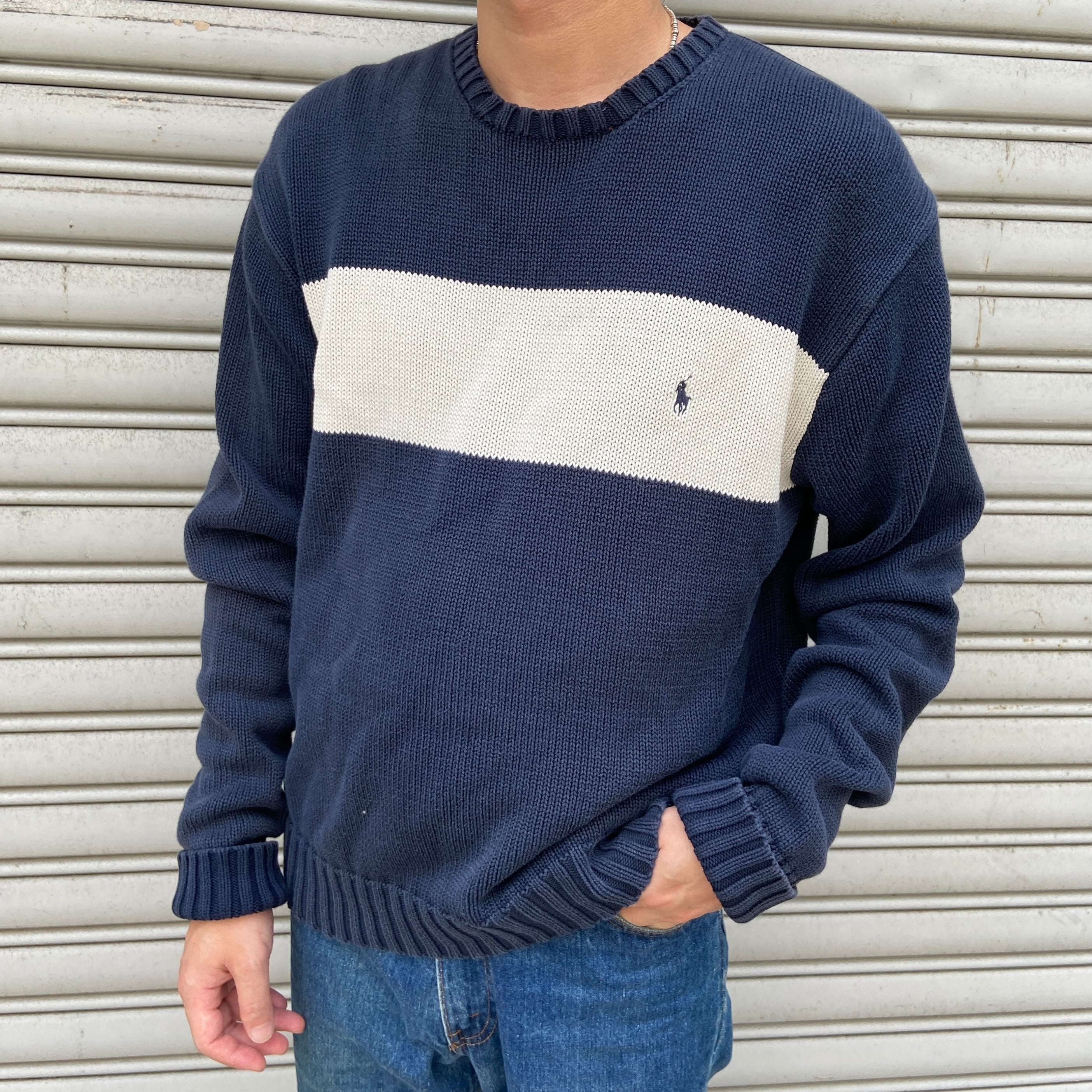 こちらは90年代RalphLaurenのラインボーダーコットンニットです!