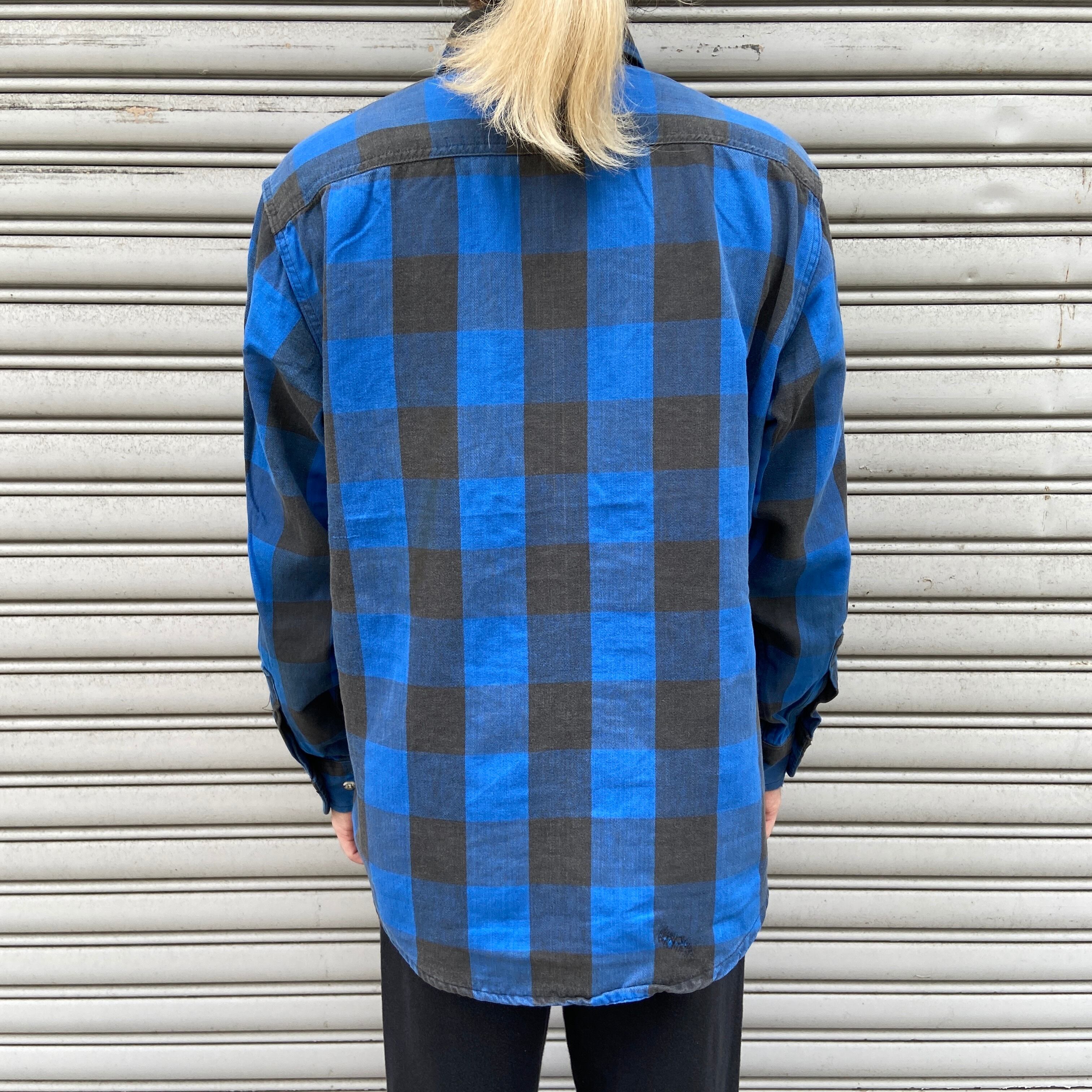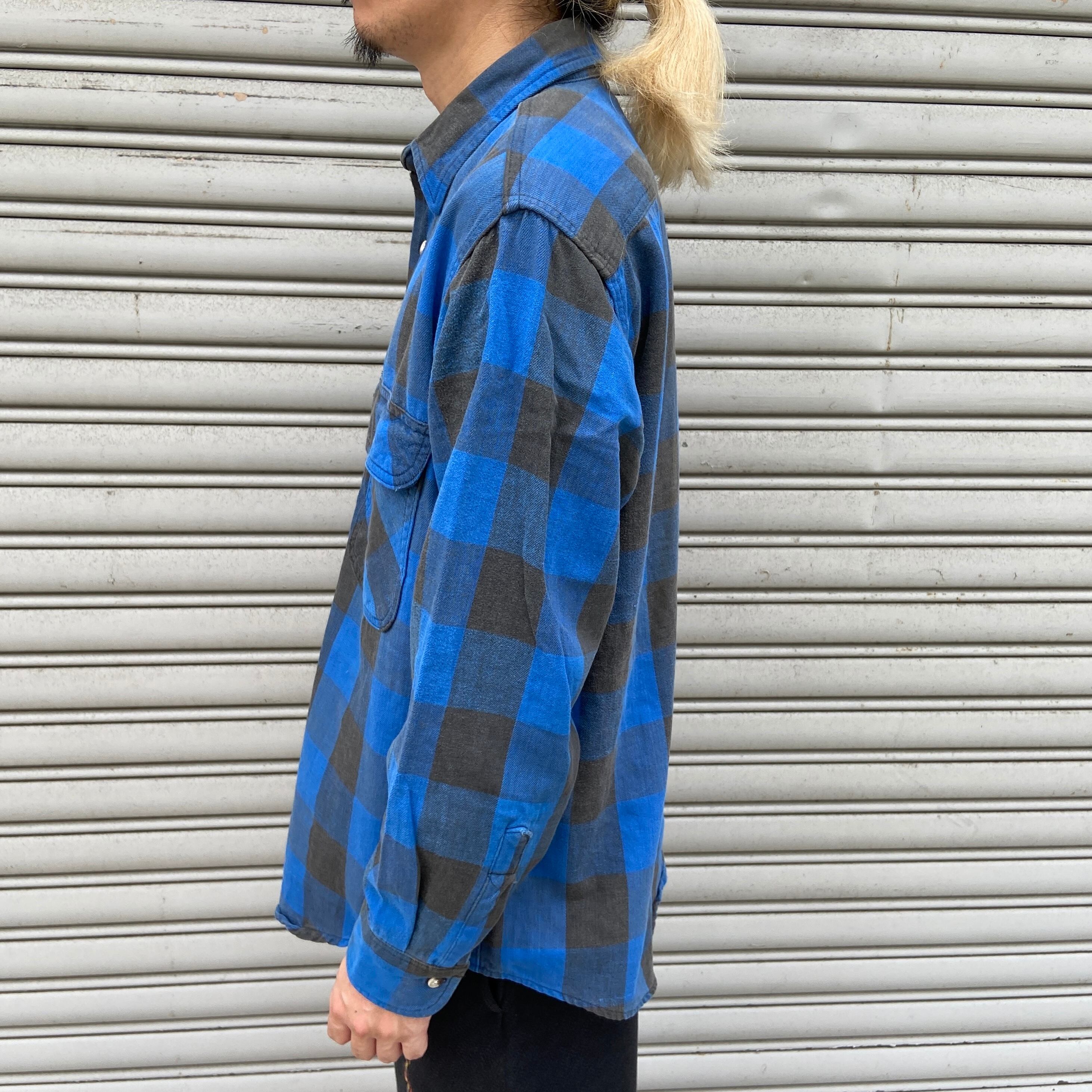 90s セントジョンズベイ バッファローチェックヘビーネルシャツ ブルー L