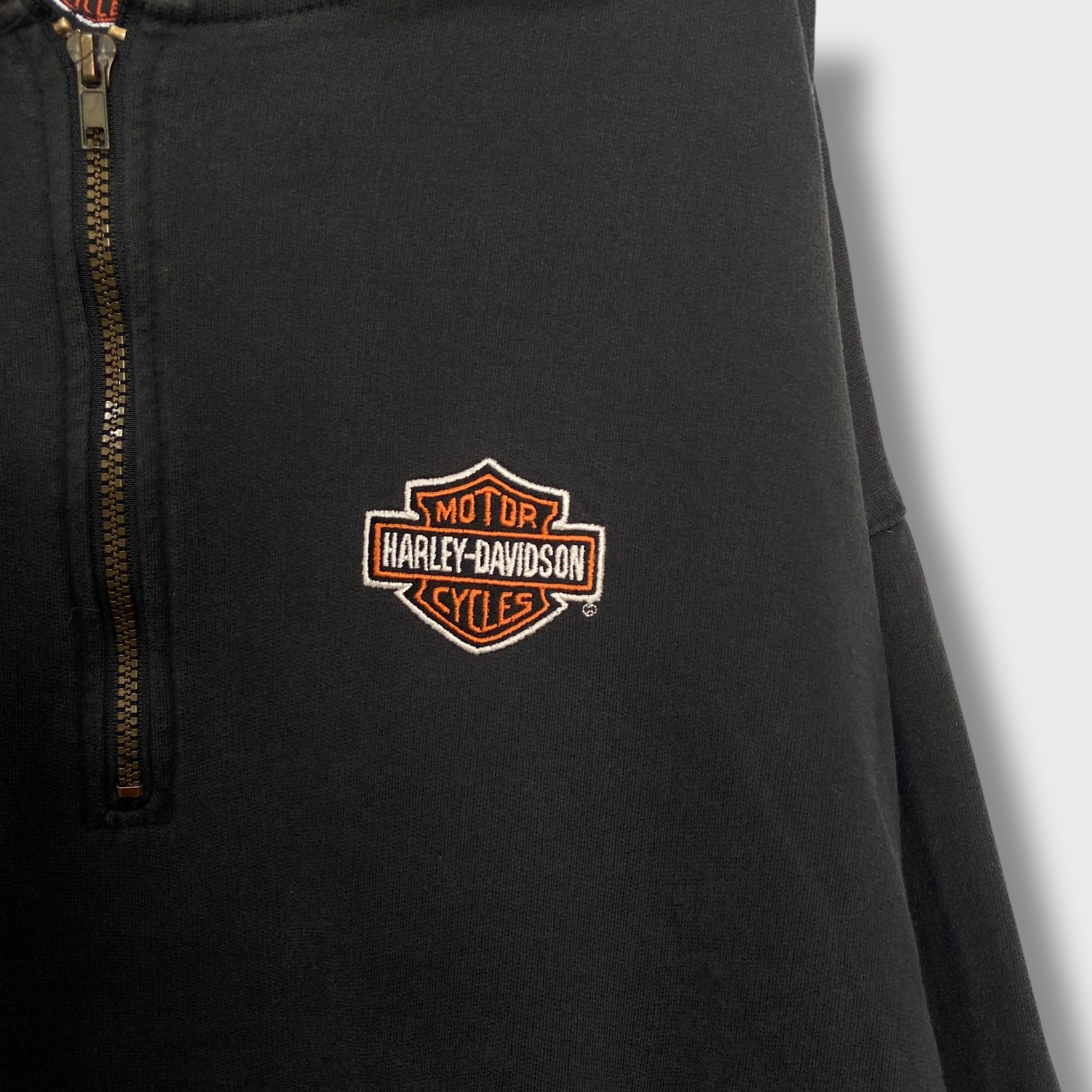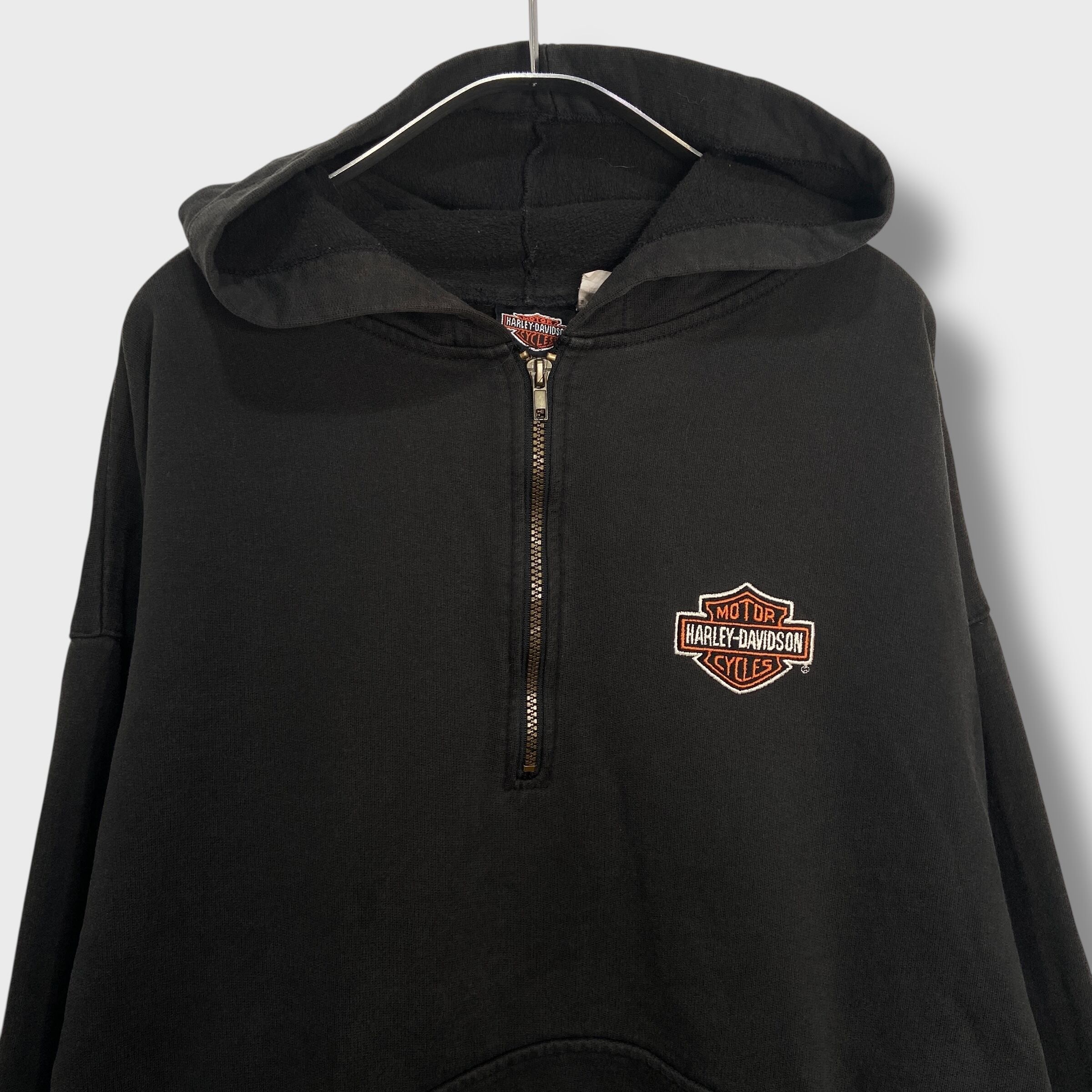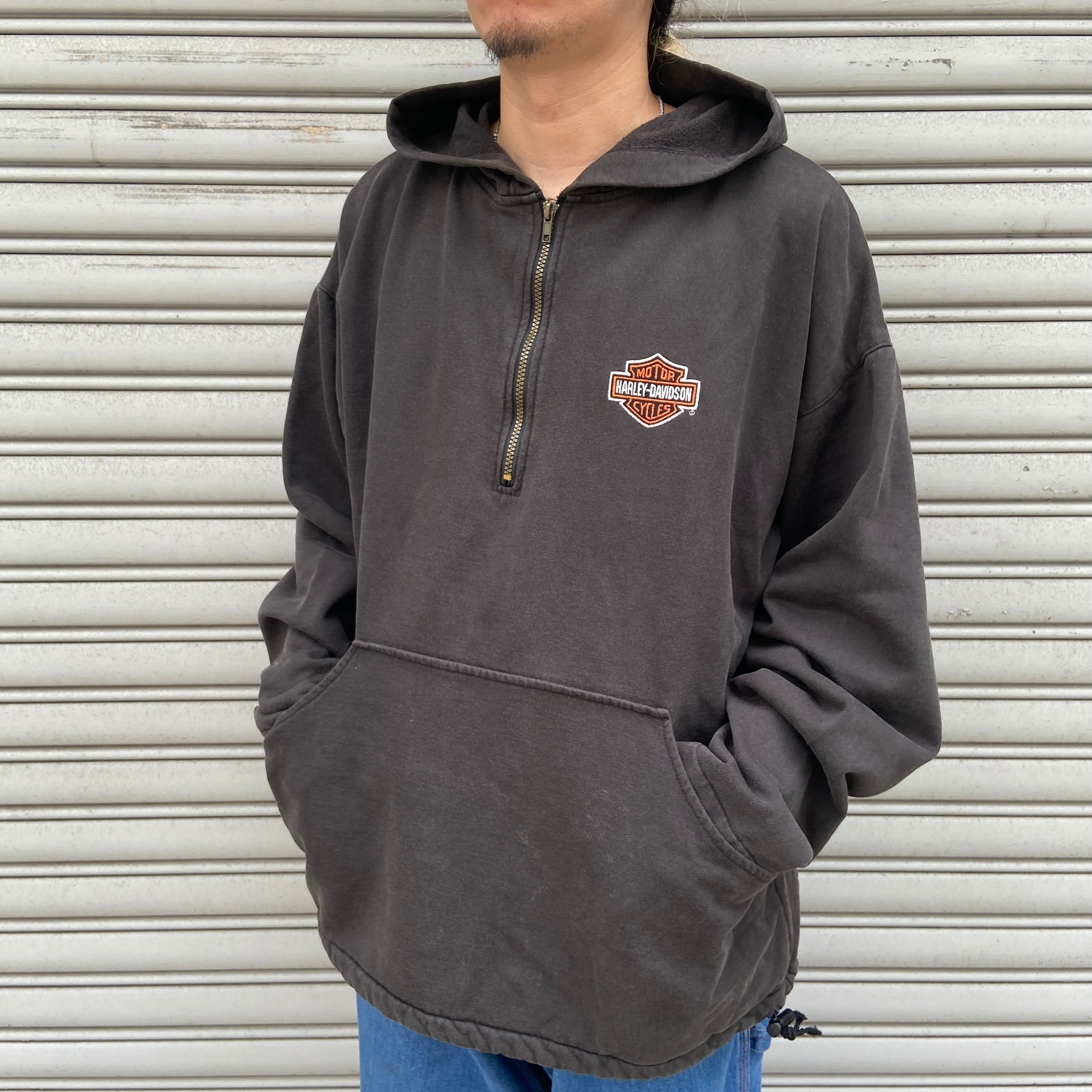 90s USA ハーレーダビッドソン ハーフジップスウェットパーカー 黒 XXL