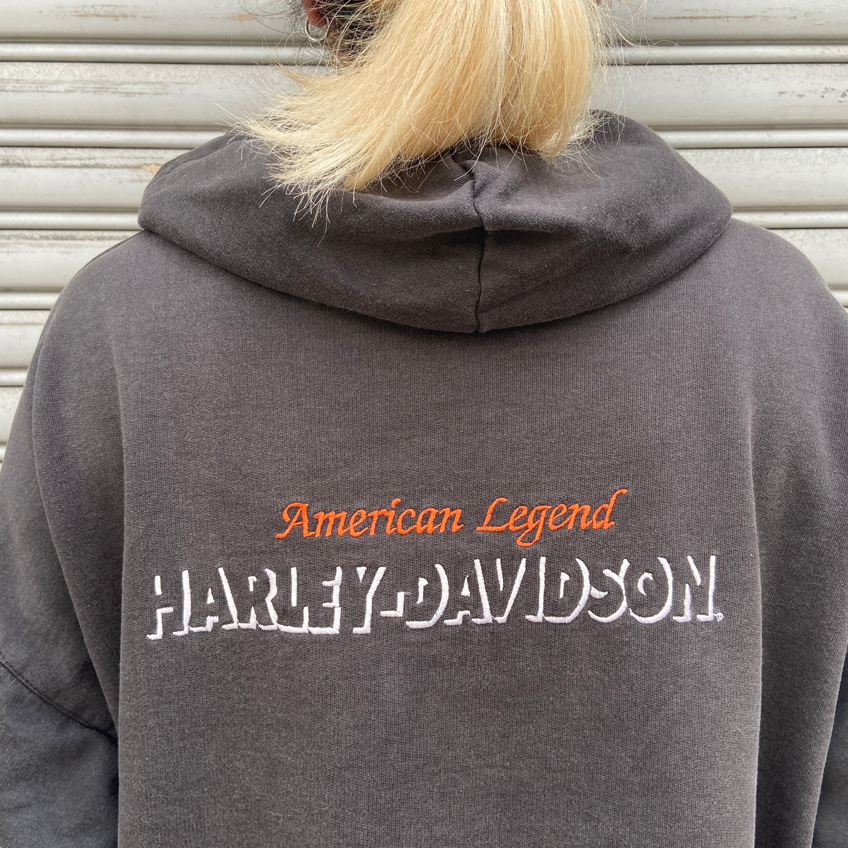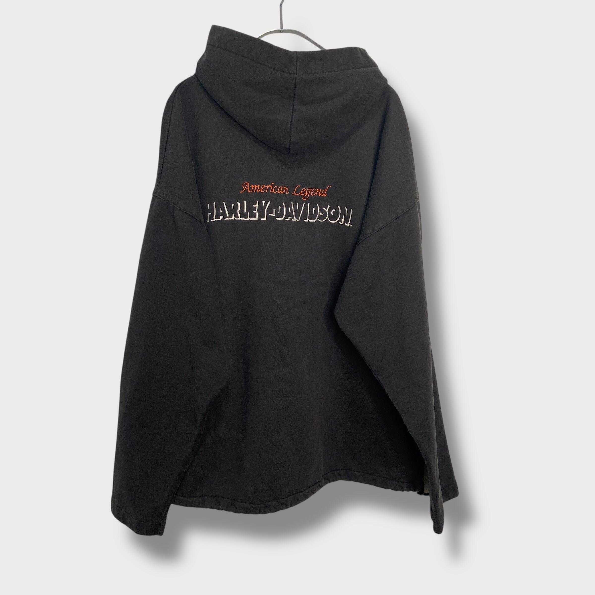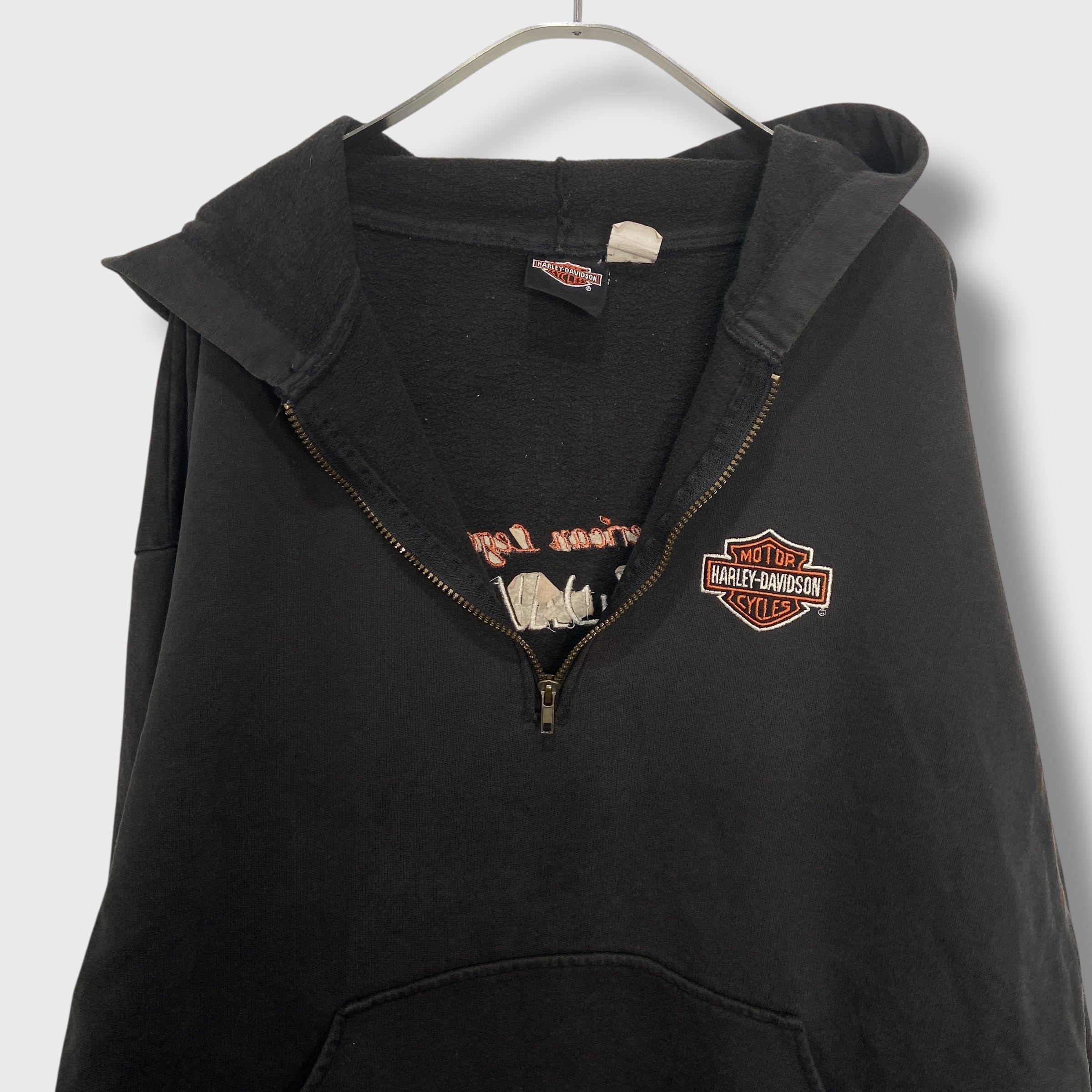 90s USA ハーレーダビッドソン ハーフジップスウェットパーカー 黒 XXL