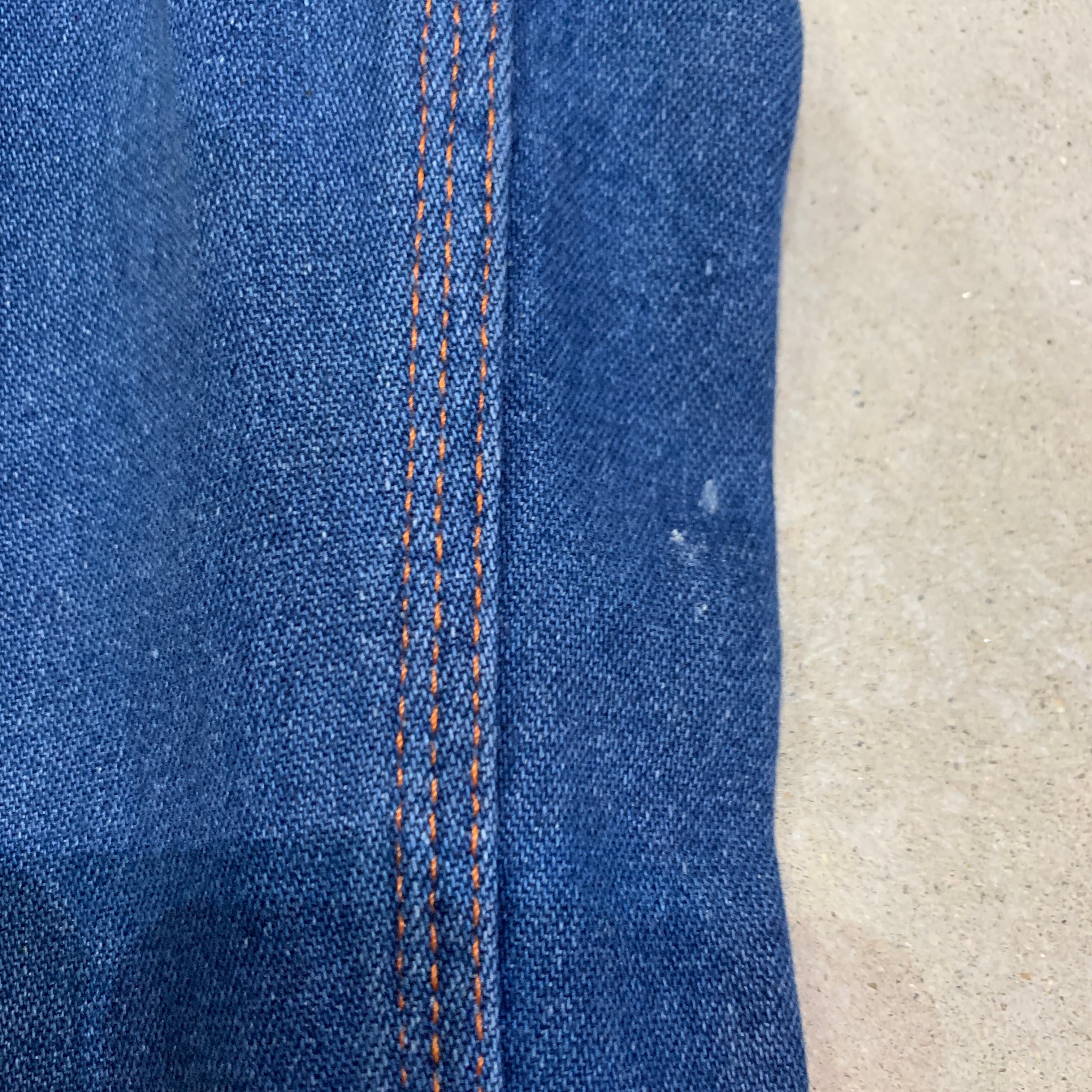 90年代らしいぬめっとした淡いブルーカラーにオレンジのトリプルステッチ仕様な一本です。