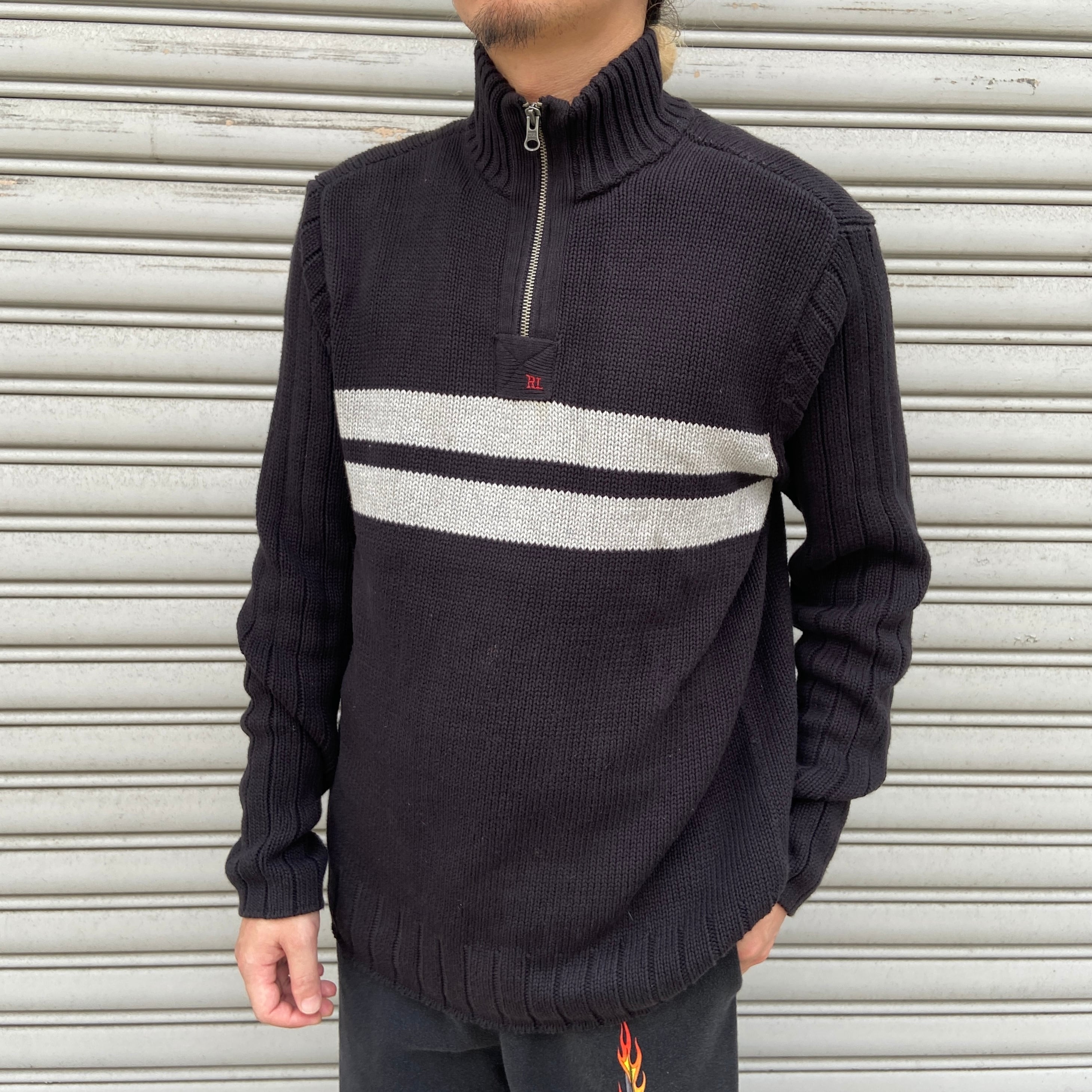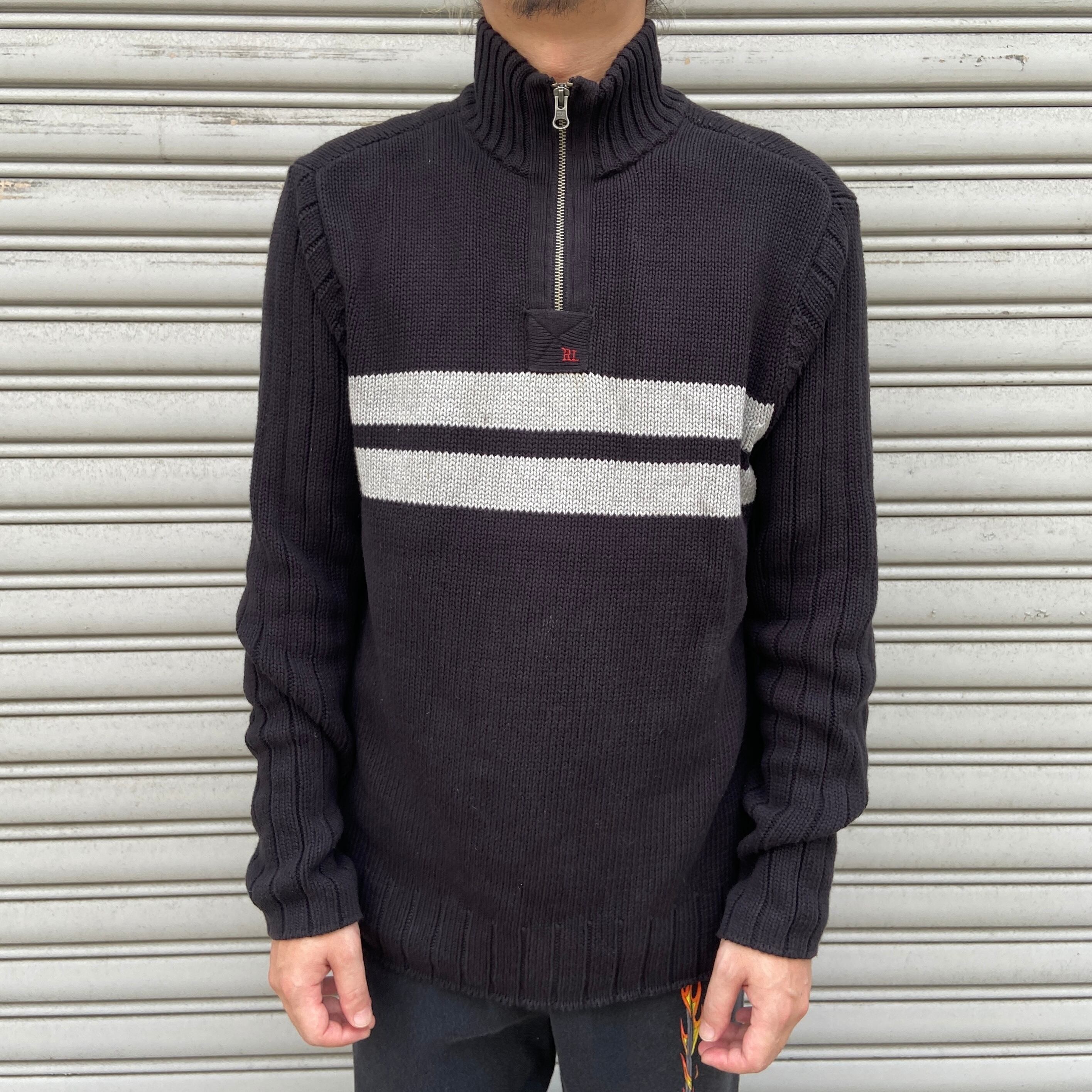 ポロジーンズ ラルフローレン ハーフジップコットンニット セーター M 黒