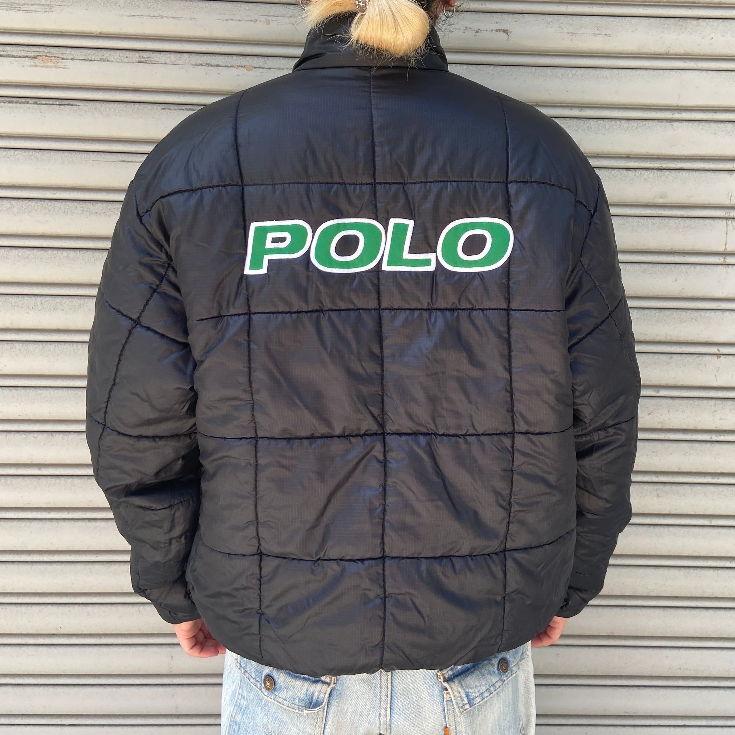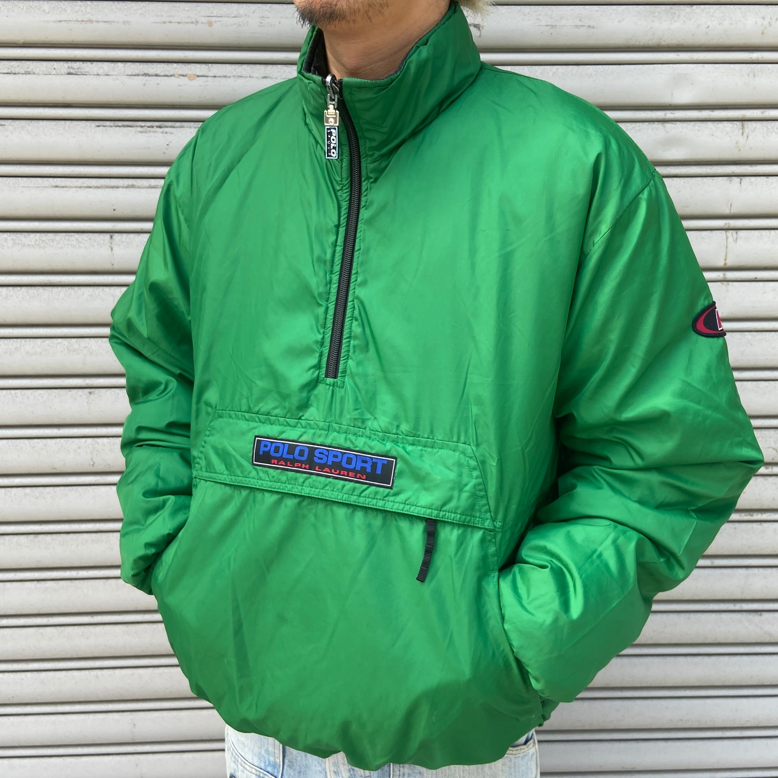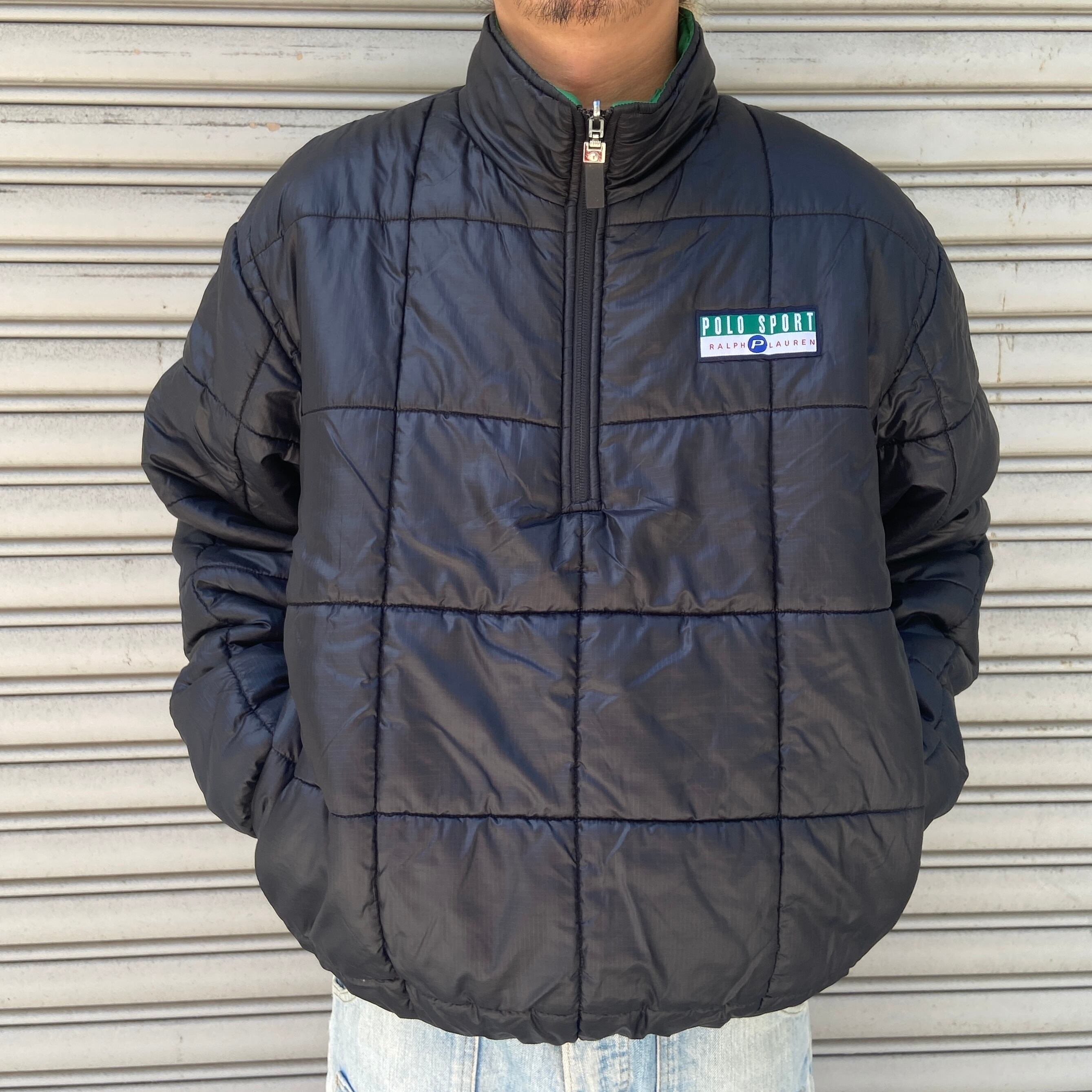 ポロスポーツ リバーシブルハーフジッププルオーバー 中綿ジャケット緑 黒 M