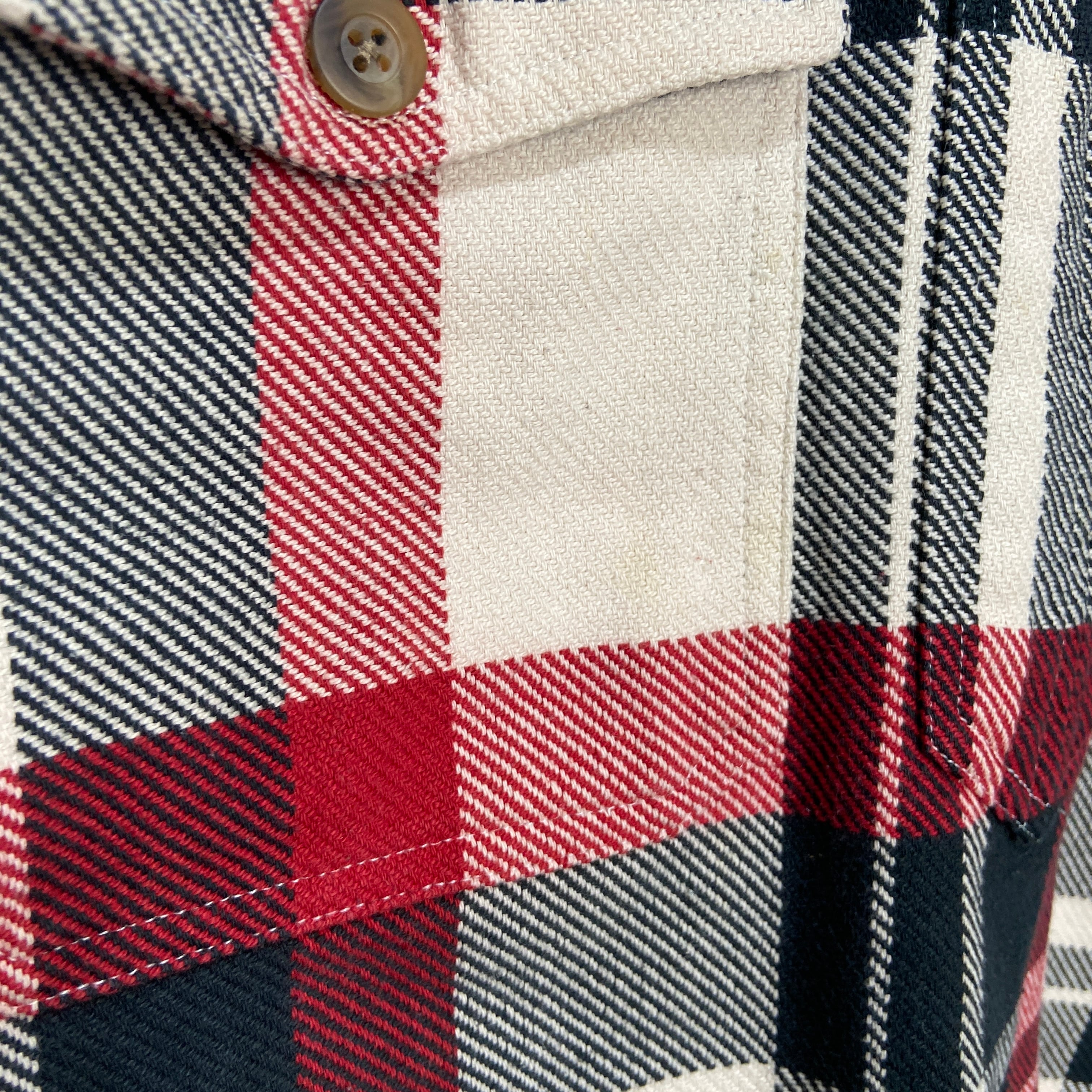 右胸ポケットとお腹あたりに薄シミがあります。