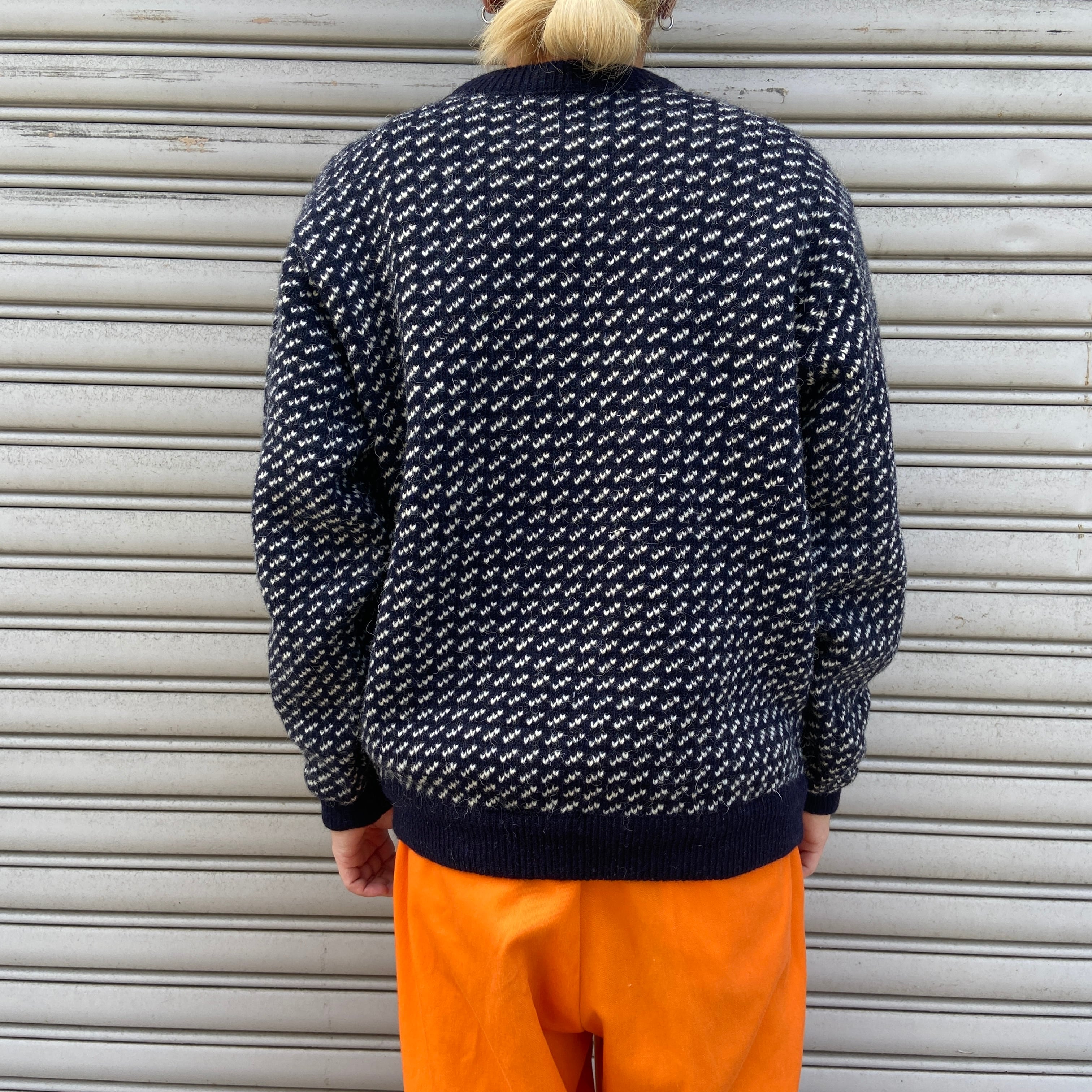 80s LLBean バーズアイニット L ノルウェー製 ウールレーヨン