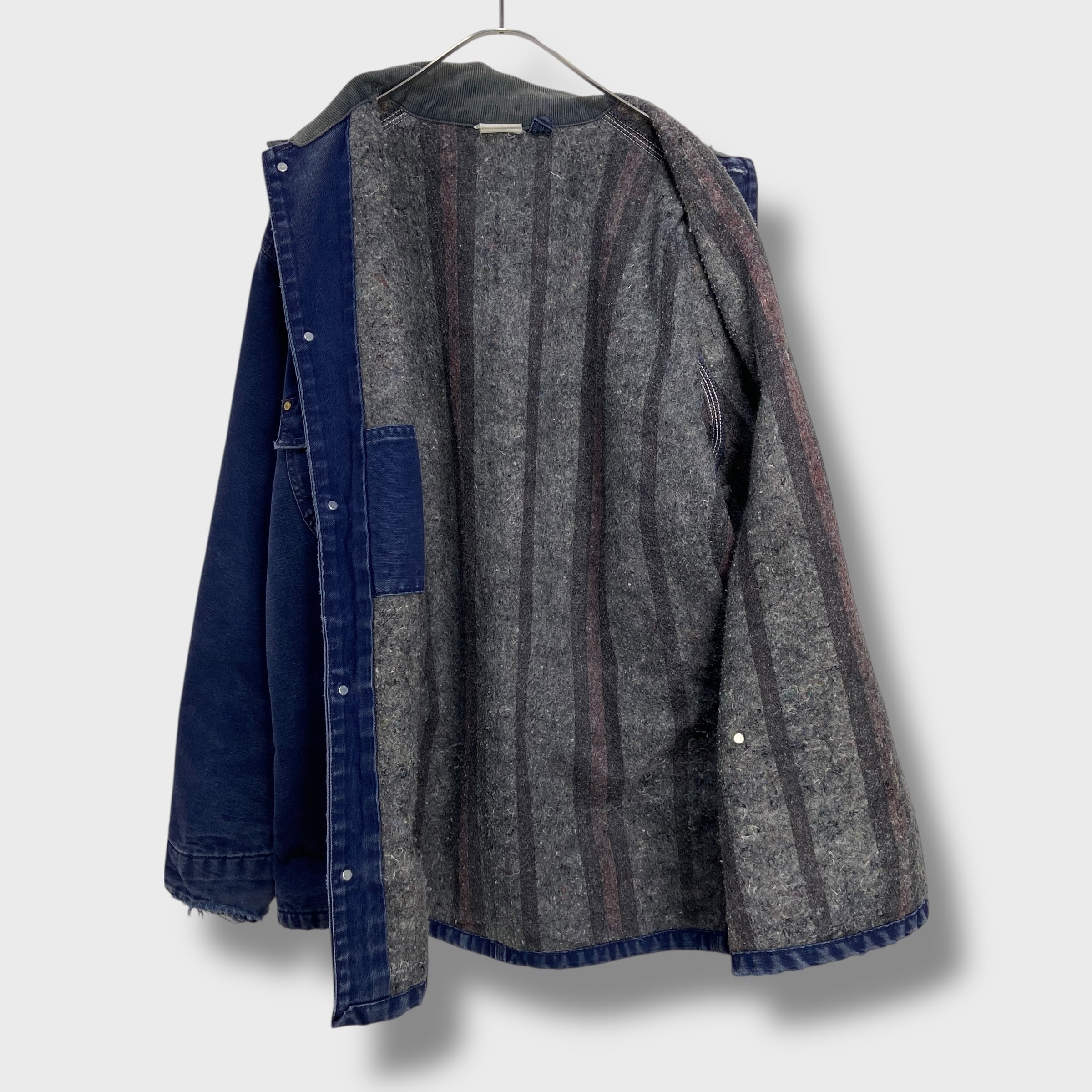 耐久性に優れたダック地を使用し、裏地にはストライプ柄のブランケット地が施されており保温性と防寒性にも優れた1着です^ ^