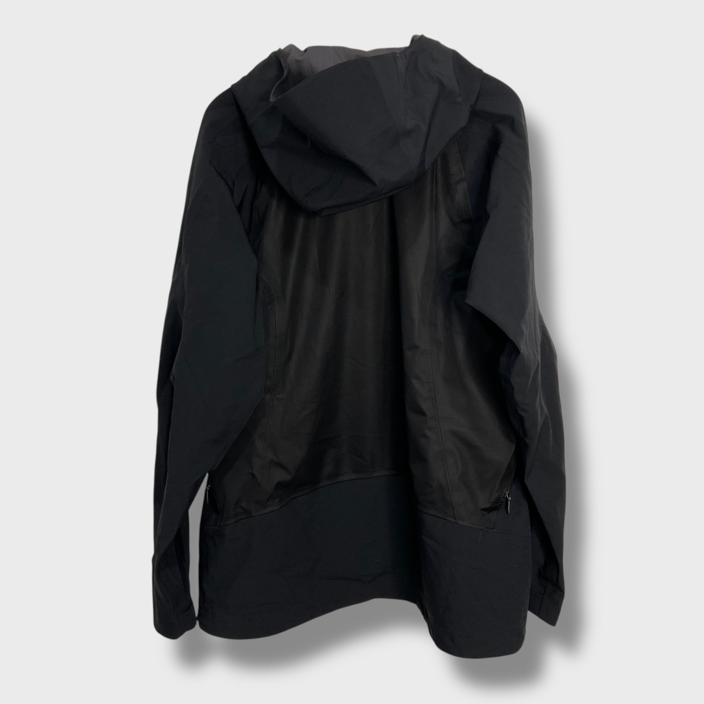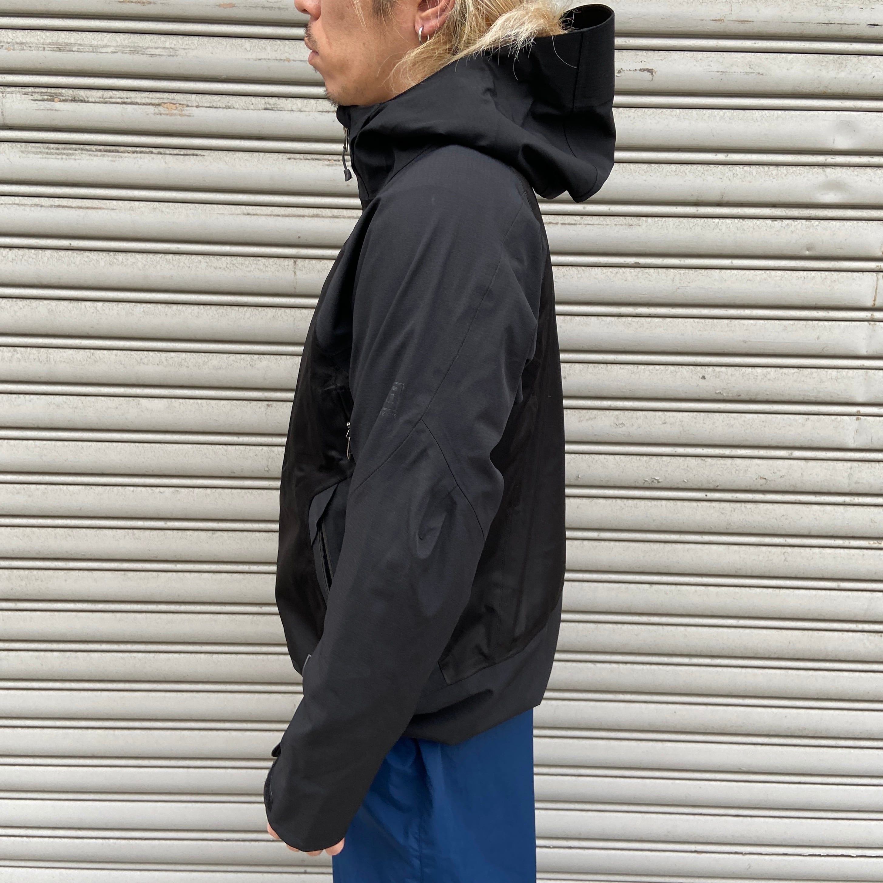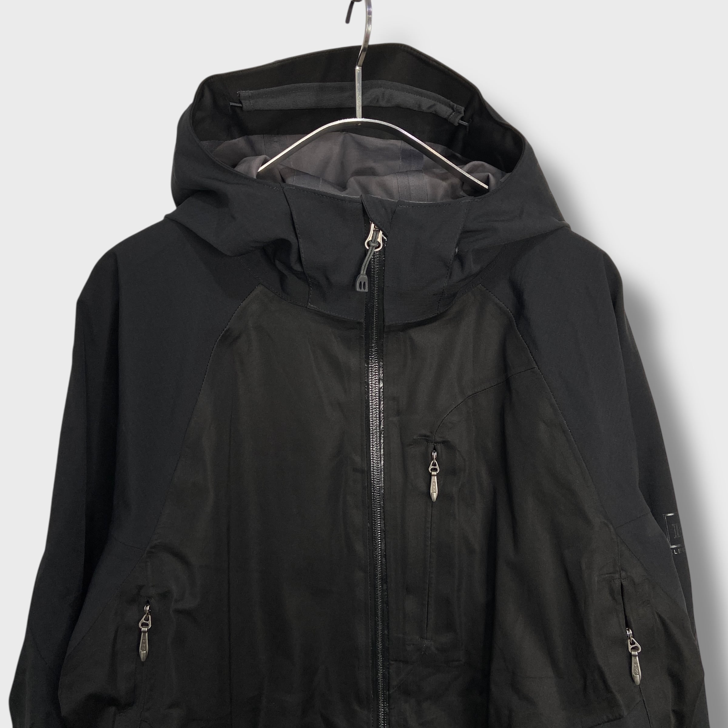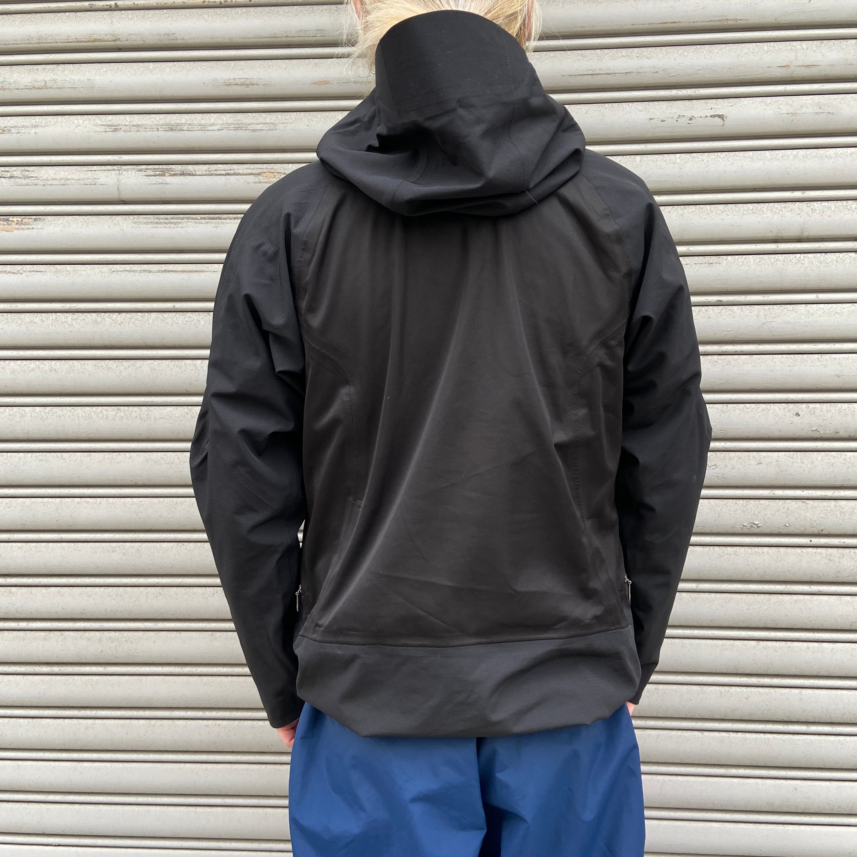 オールブラックのソフトシェルと伸縮性のある素材の切り返しデザインがカッコいいマウンテンパーカーです^ ^