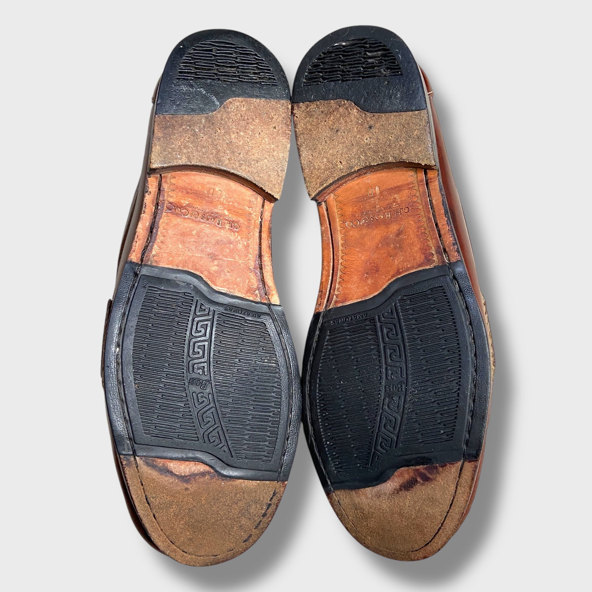 ツヤ感のある濃い目のブラウンカラーでパンツを選ばず履きやすいかと思います。