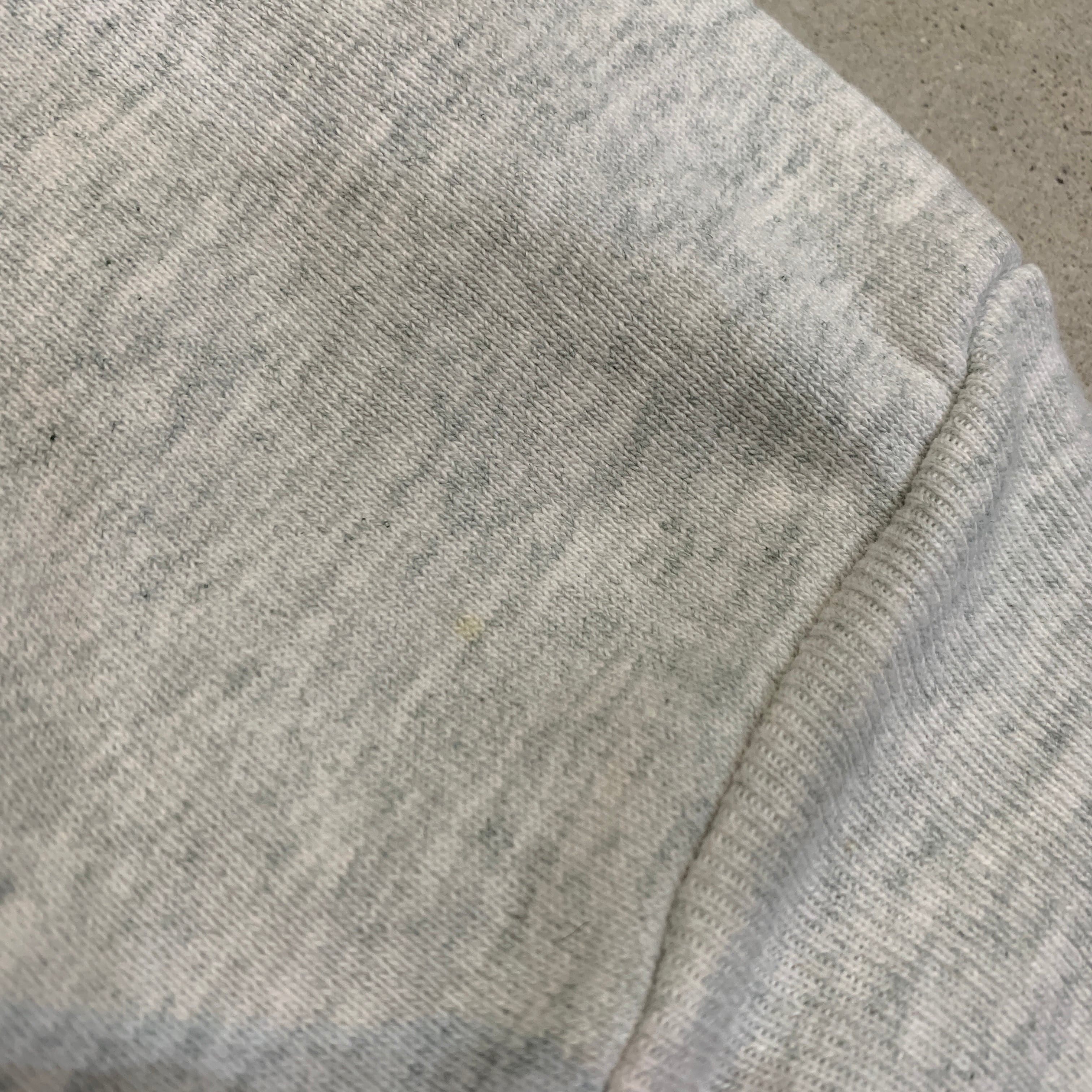 右肘あたりと右袖口のリブ上あたりに薄シミがあります。