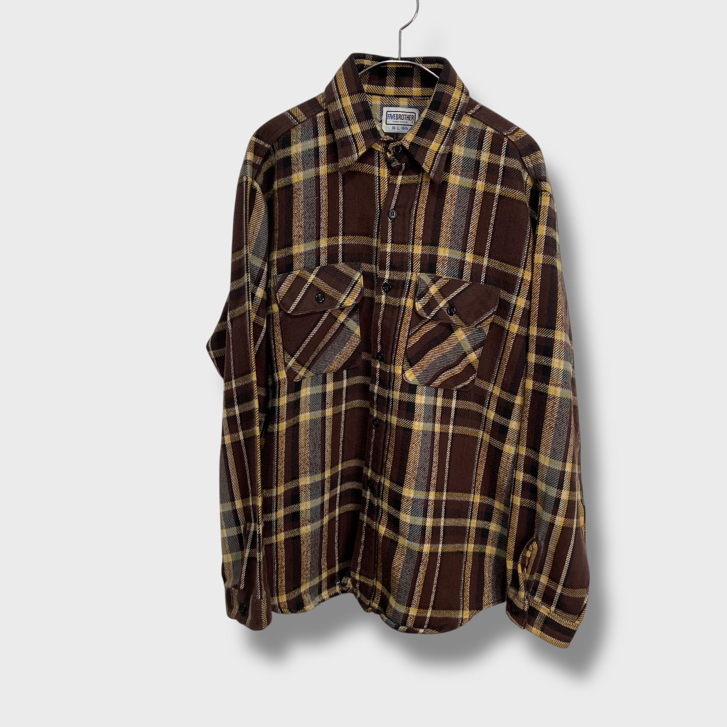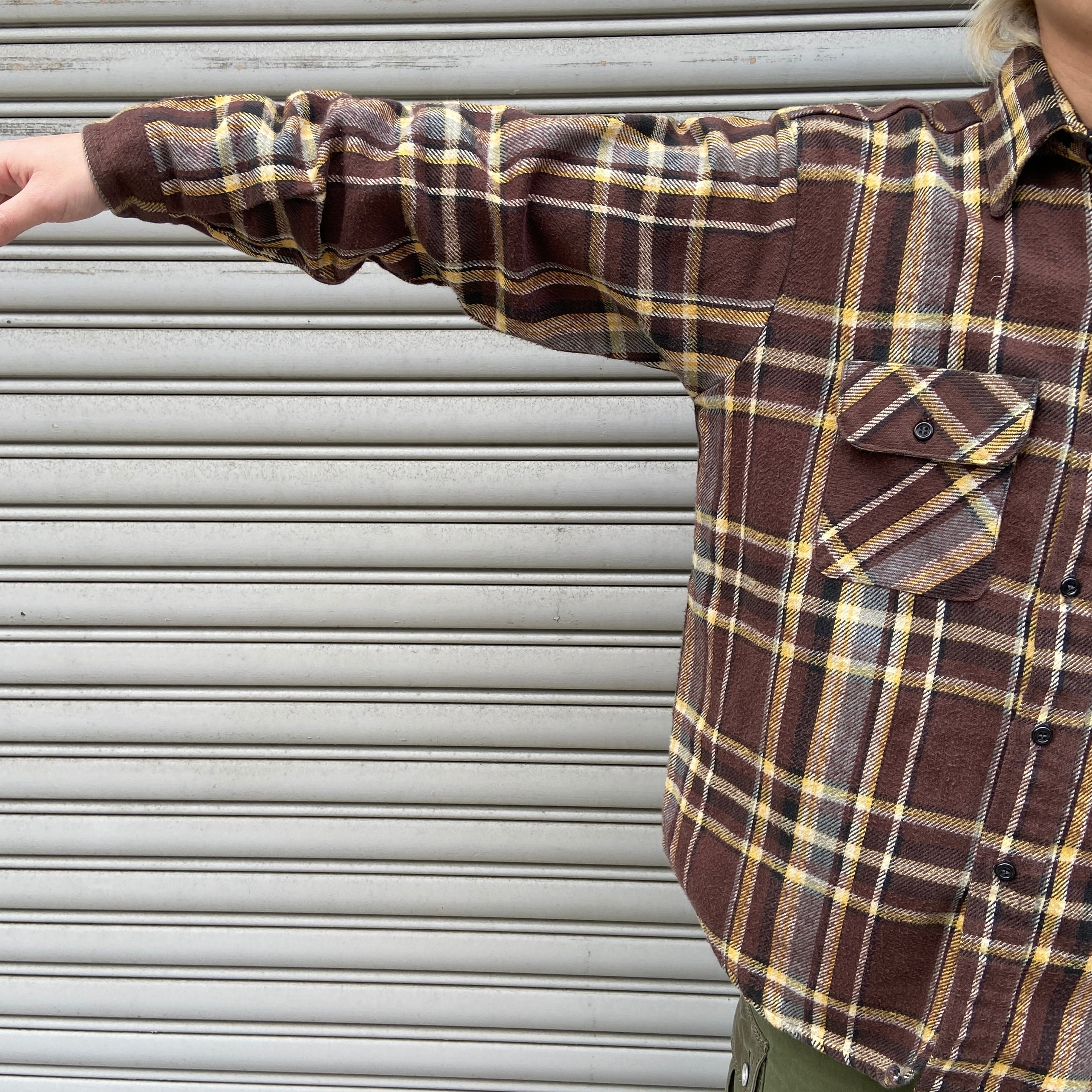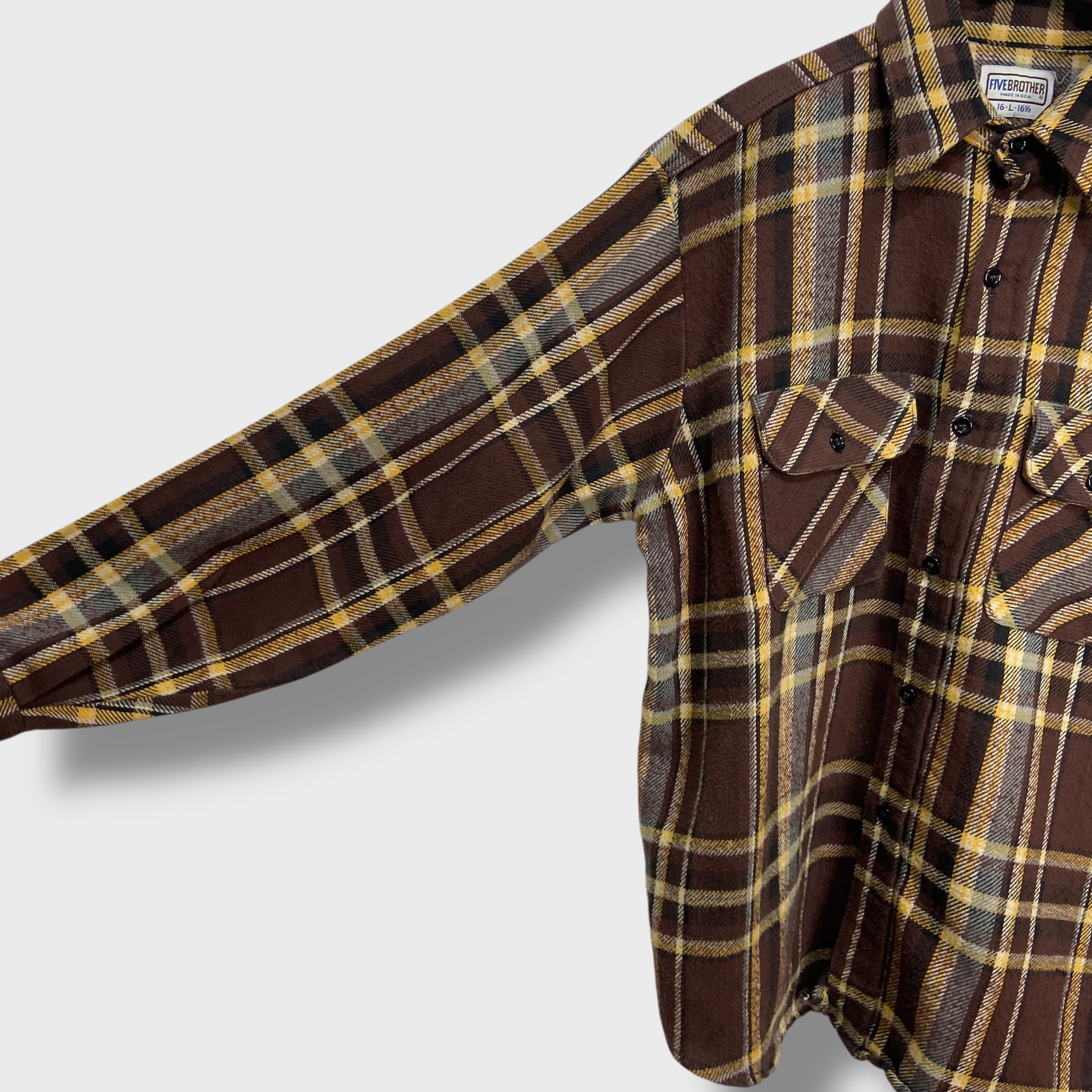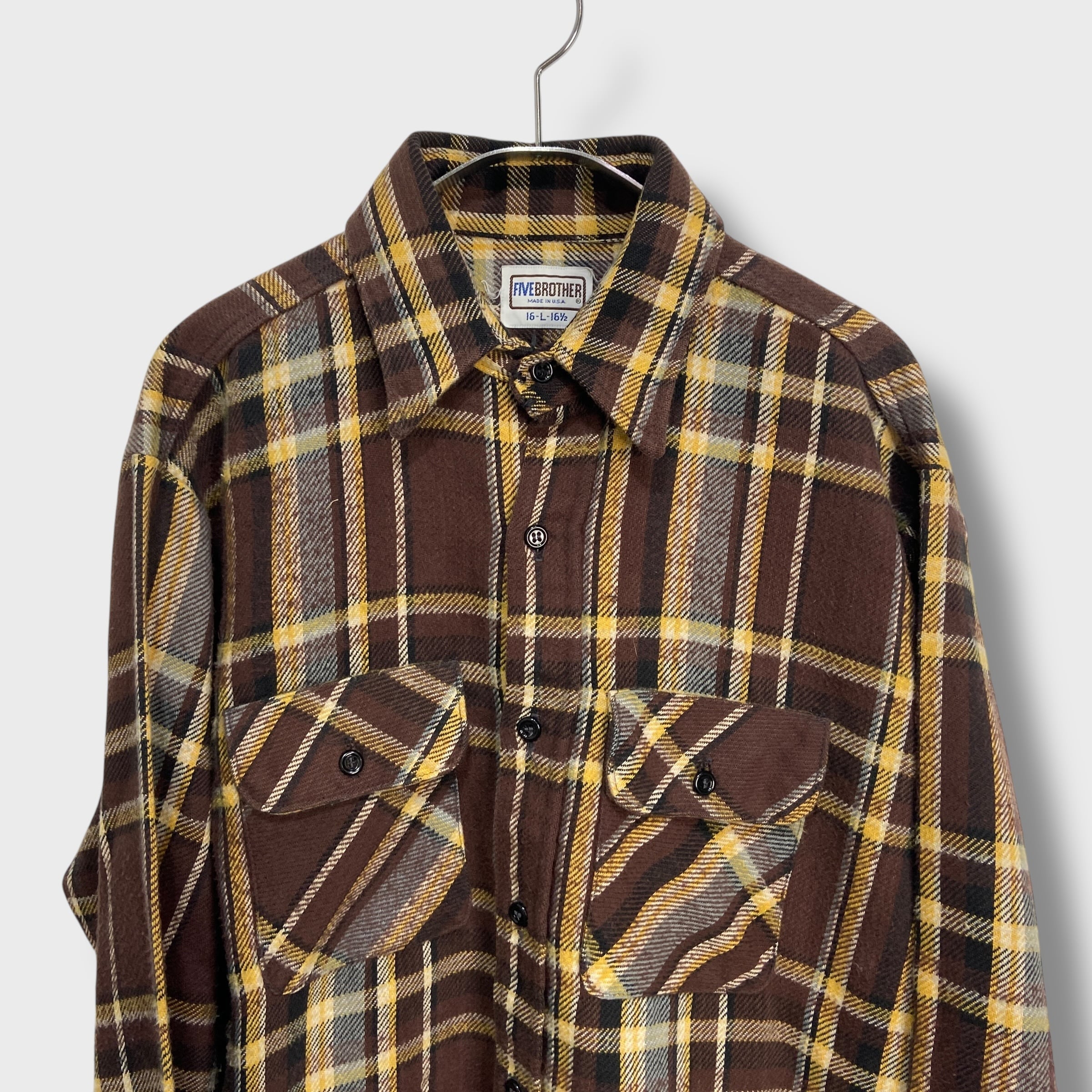 80s USA製 ファイブブラザー ネルシャツ L ブラウン系 ヘビーネル