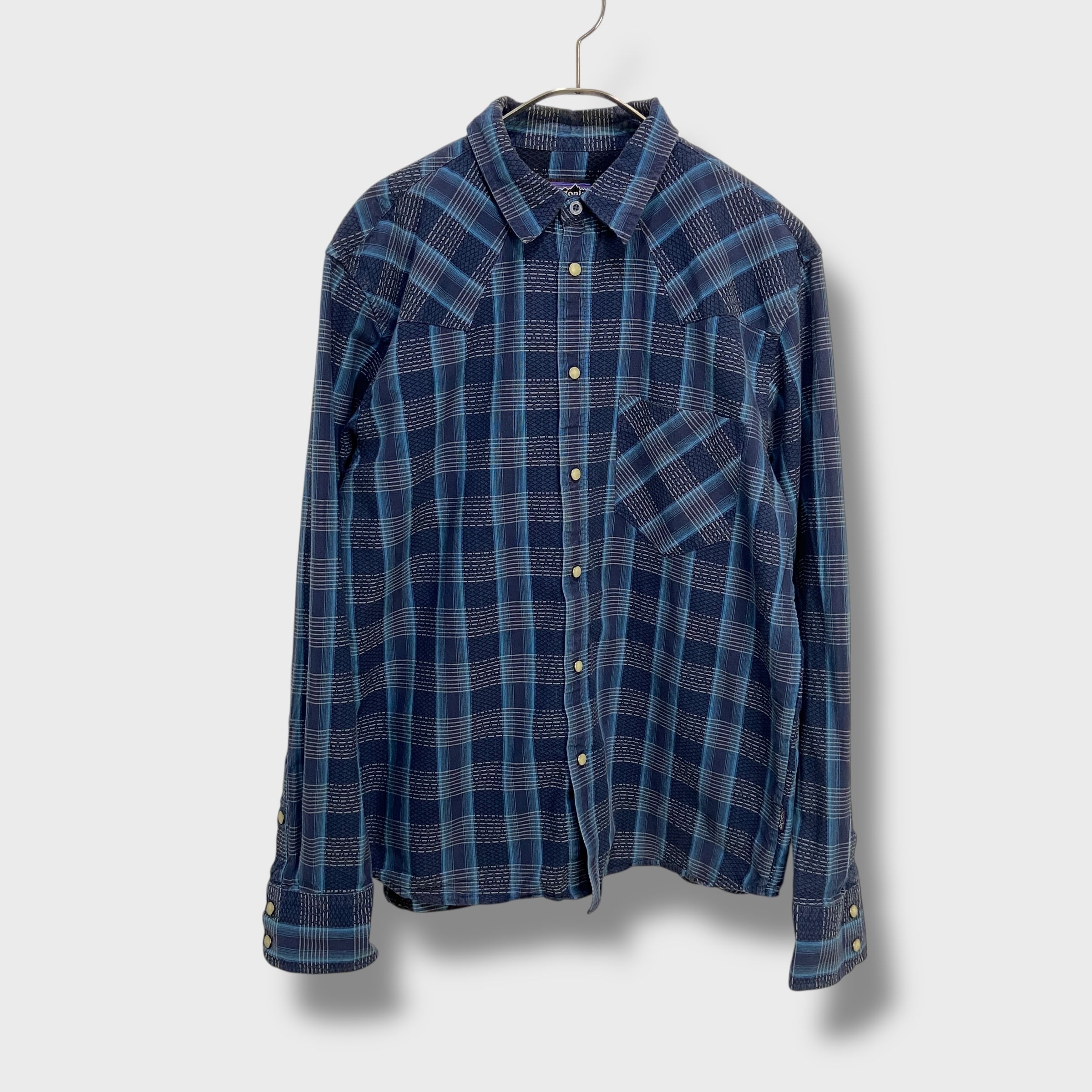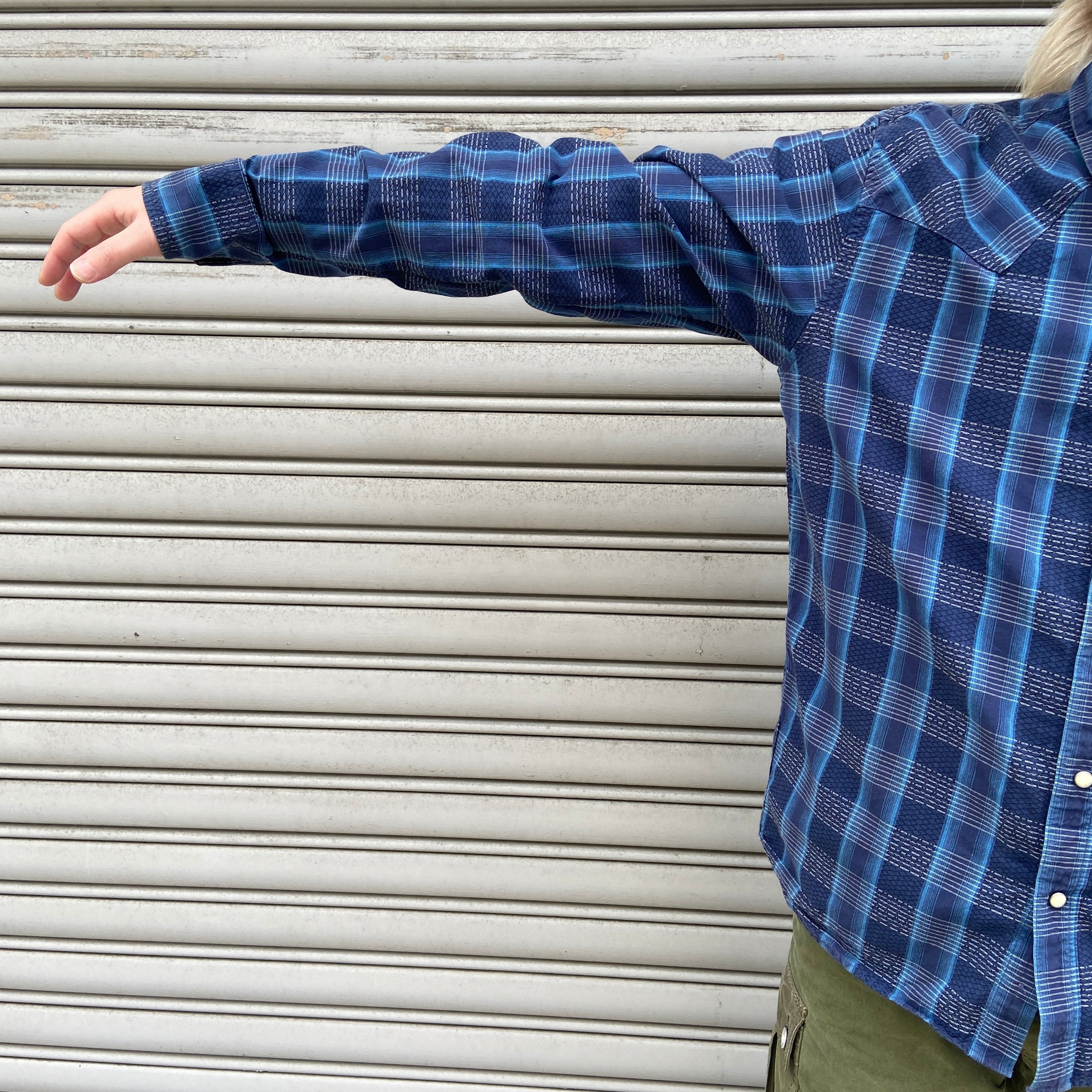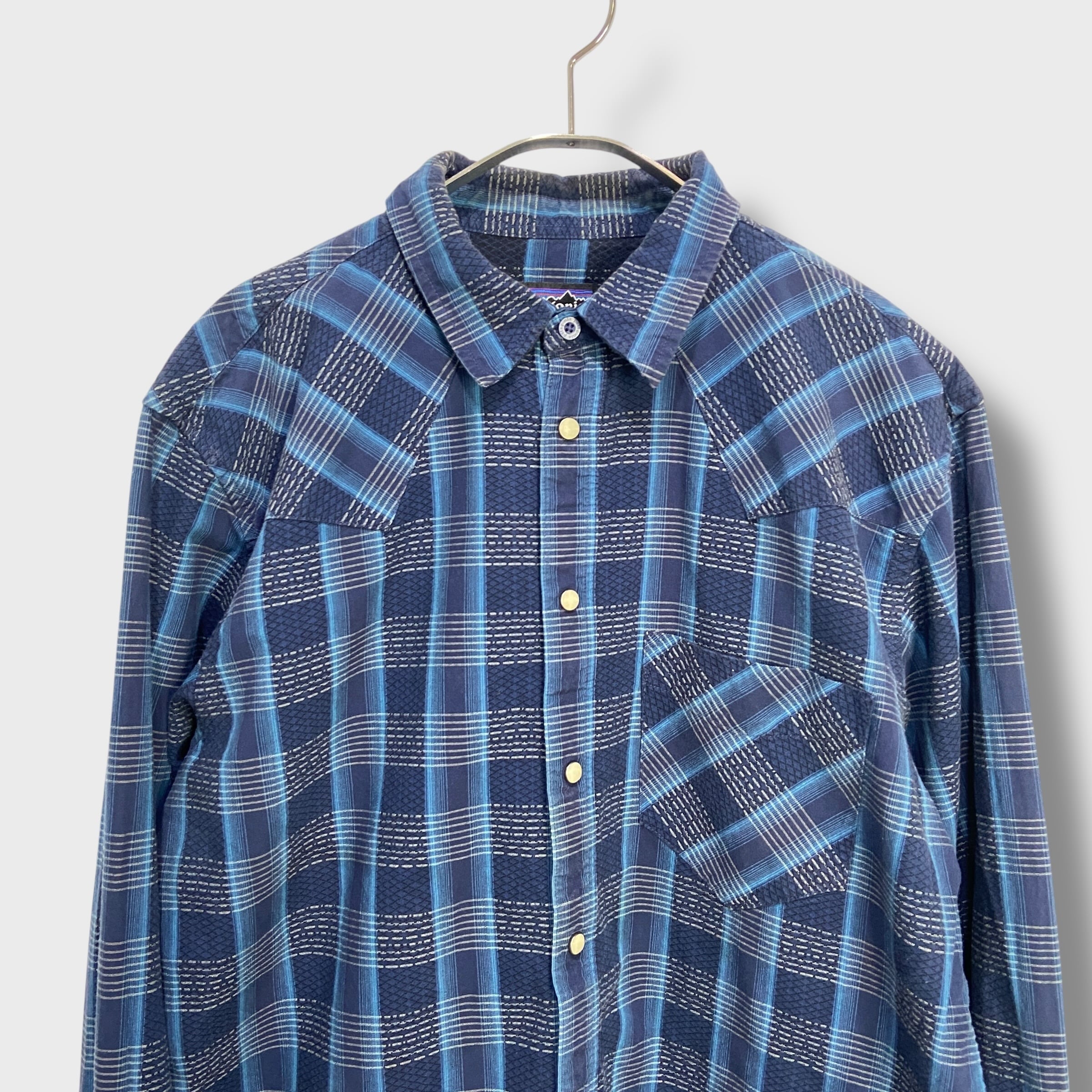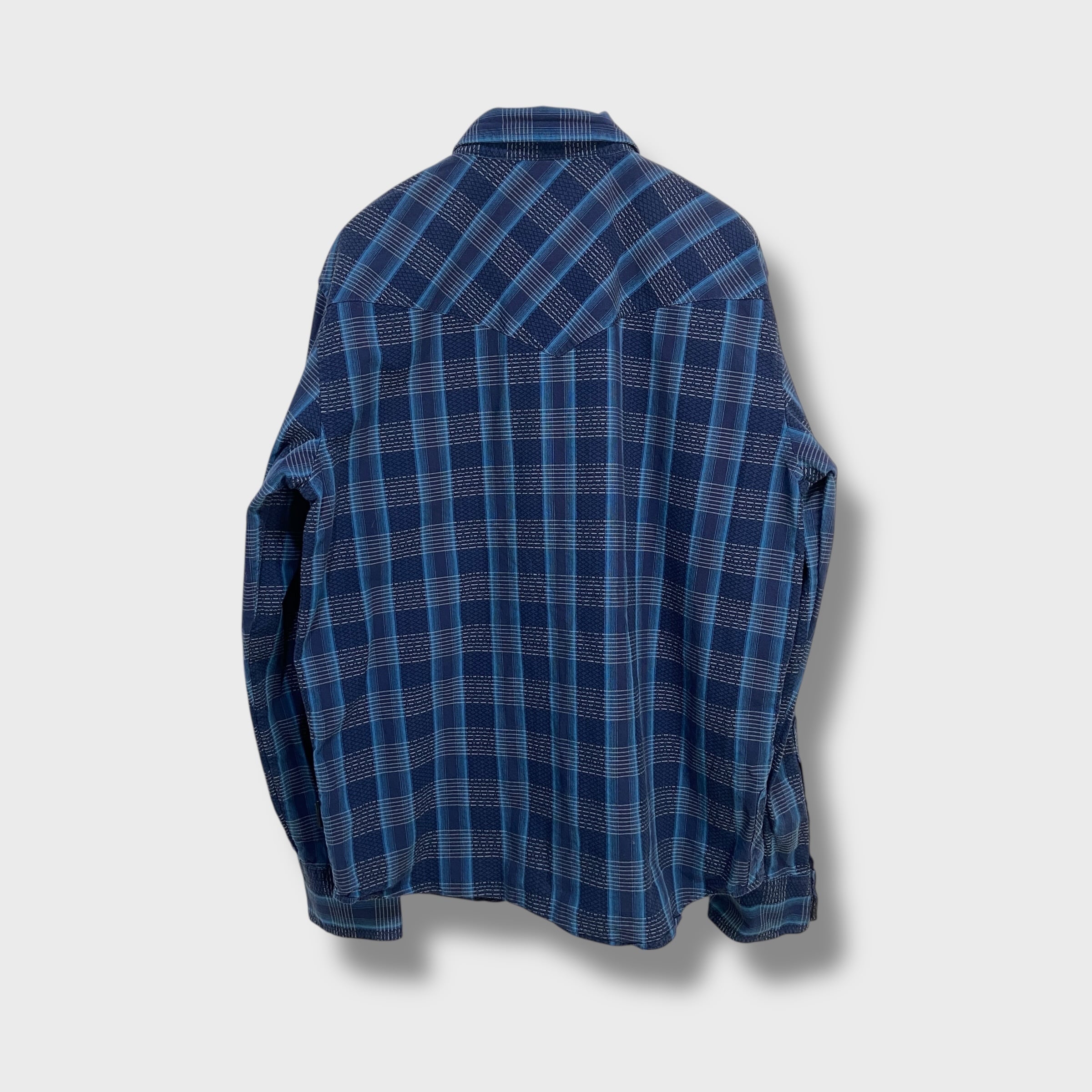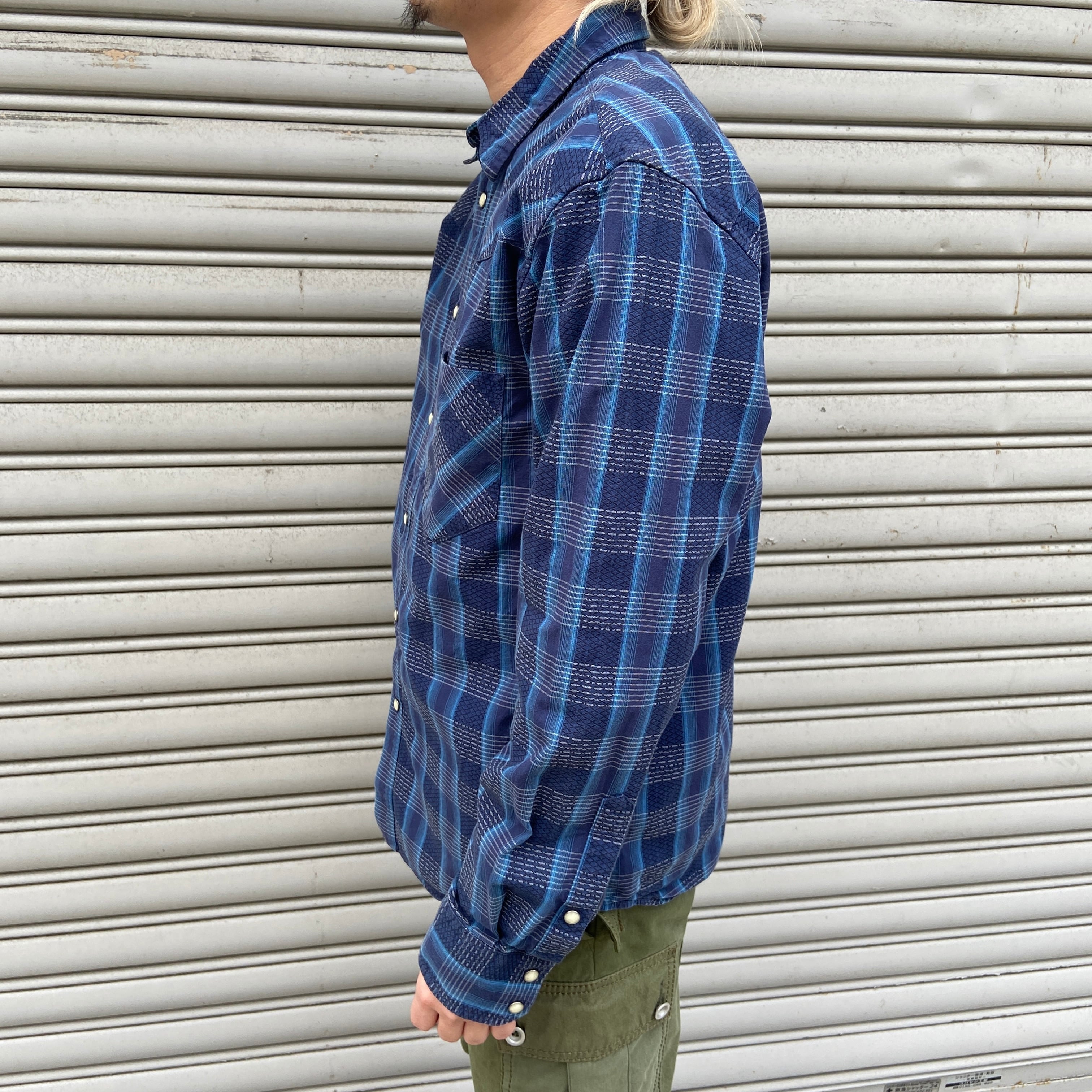 ブルー系のチェック柄にウエスタンヨークとスナップボタン仕様^ ^