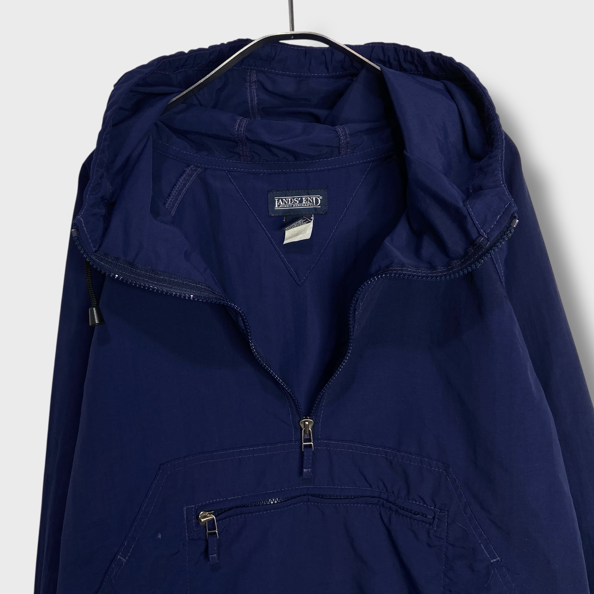 90s USA製 ランズエンド ナイロンアノラックパーカー ネイビー M