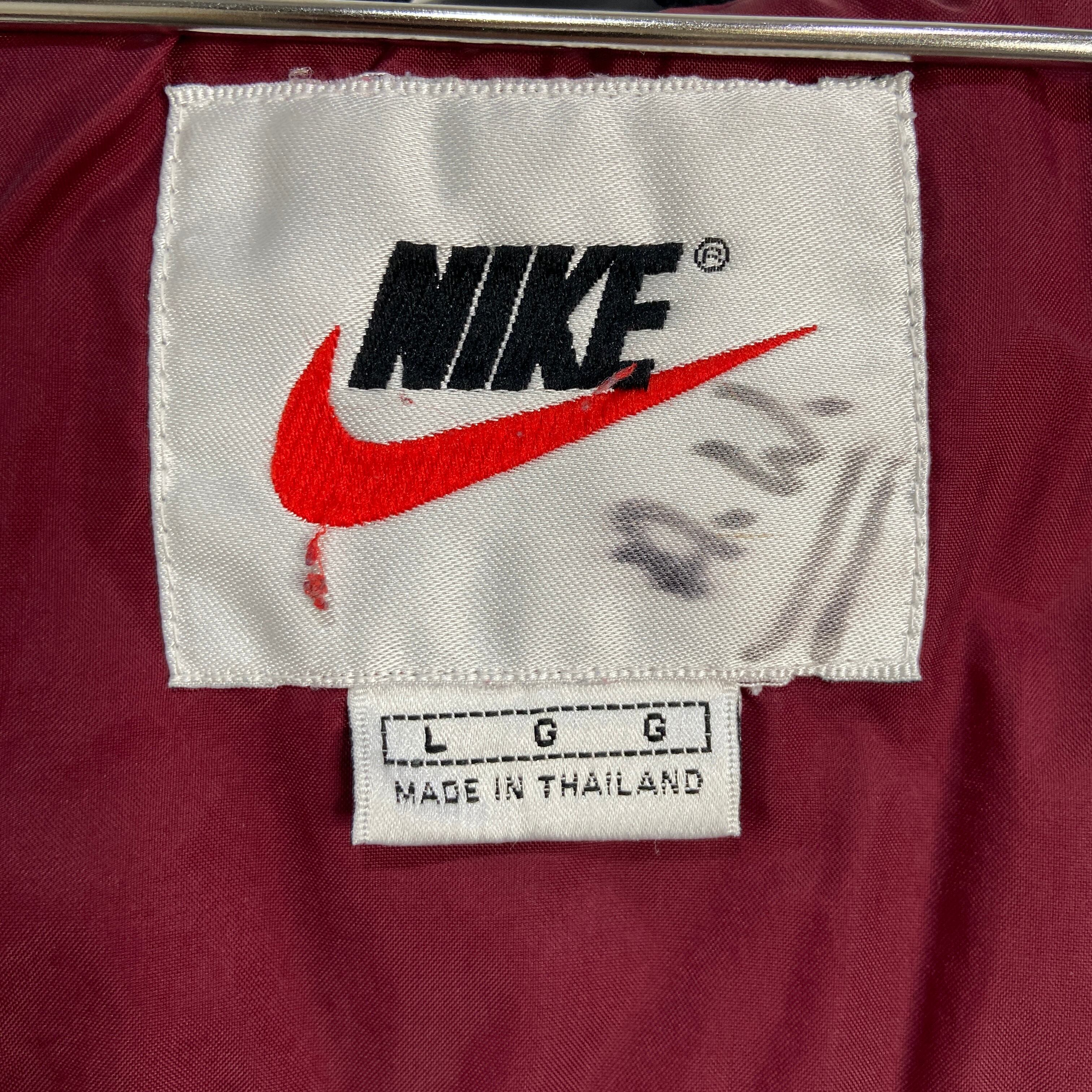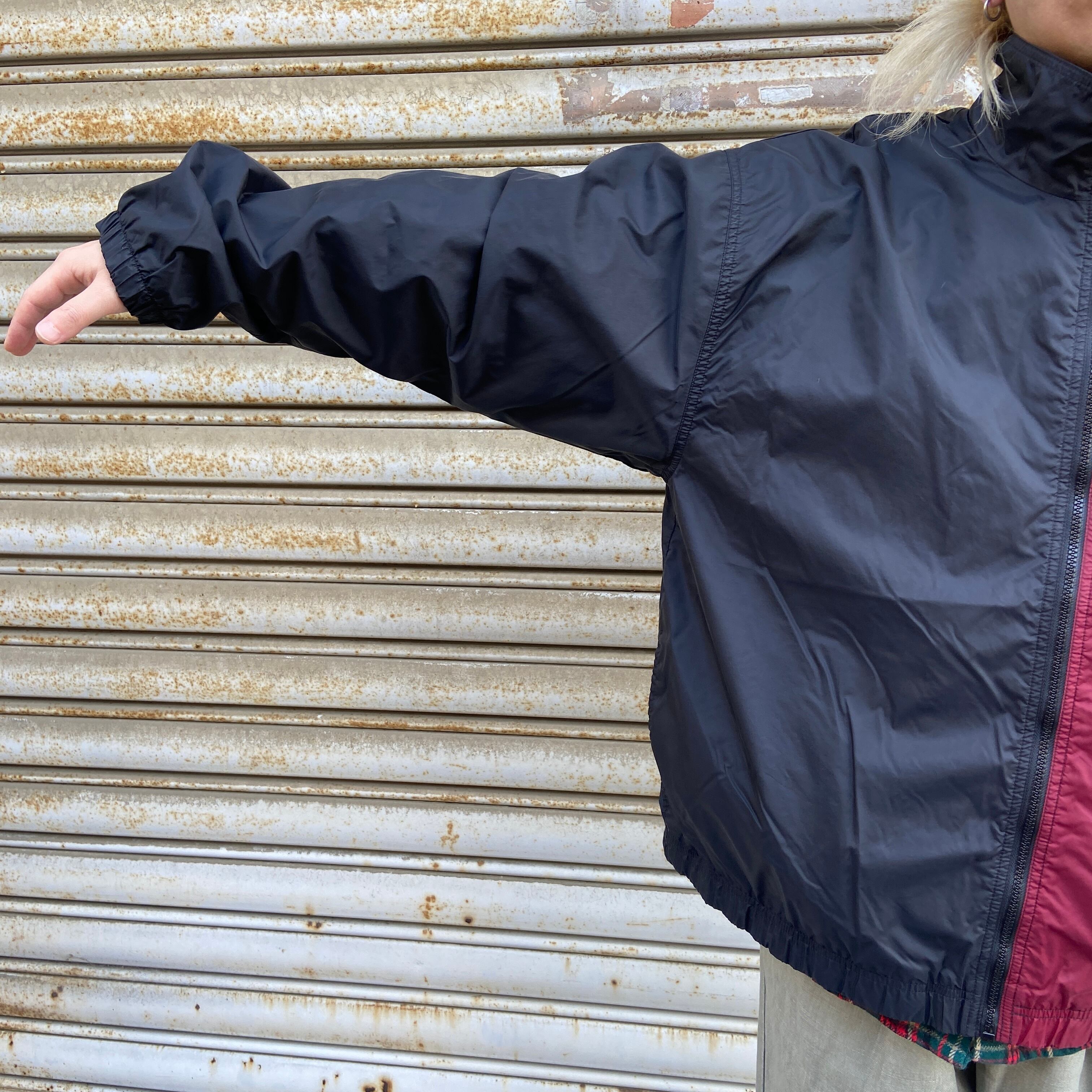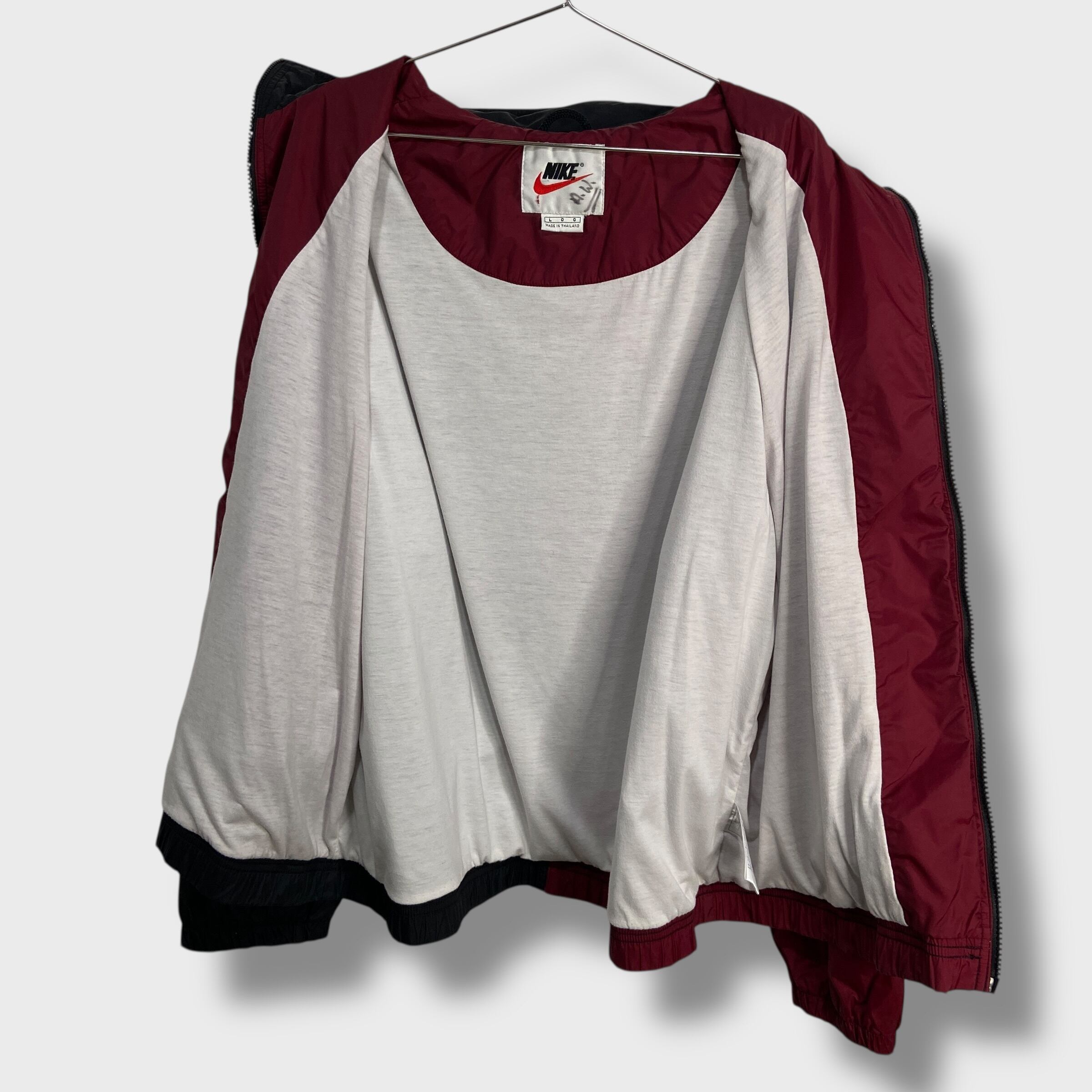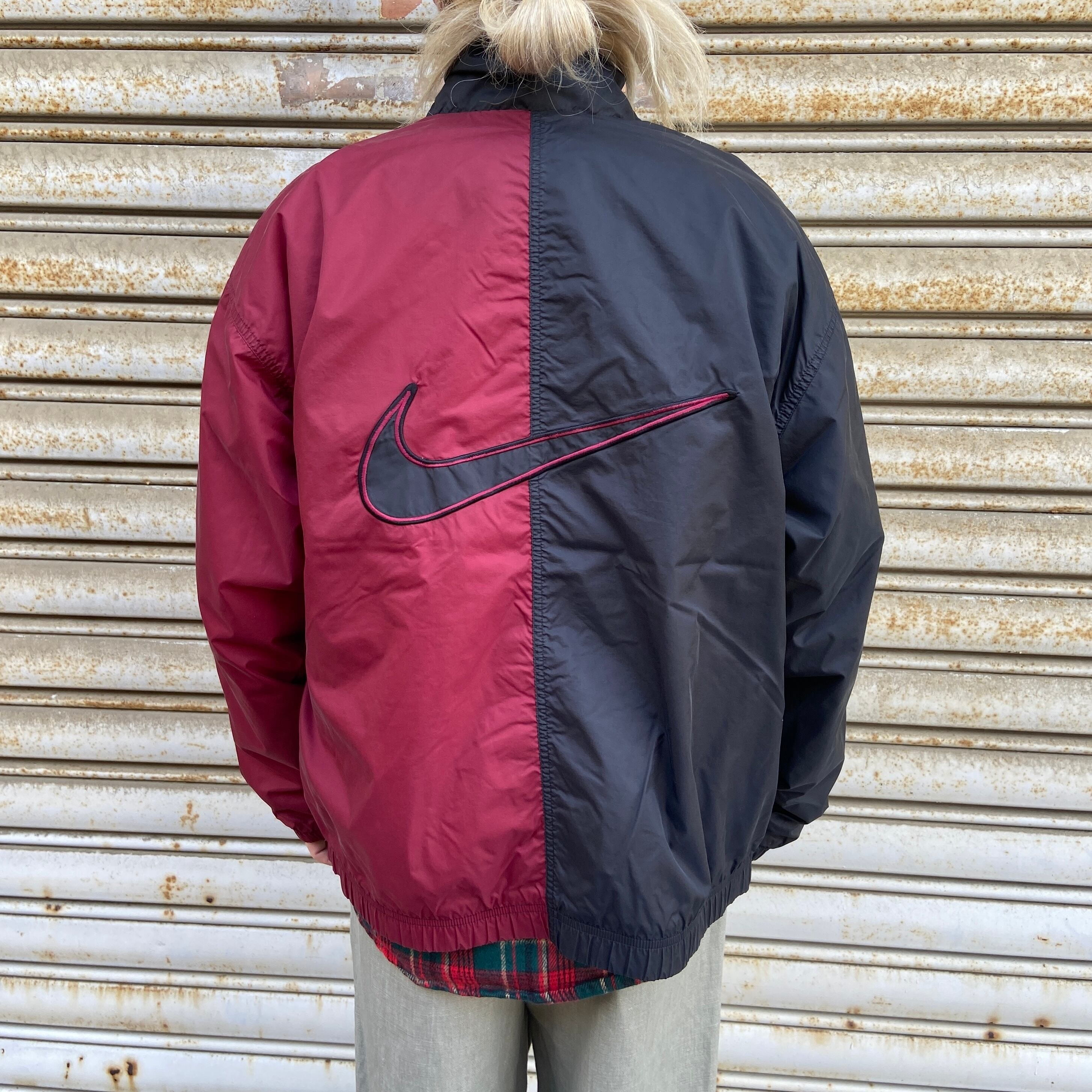 90s NIKE ツートンナイロンジャケット ビッグロゴ L エンジ 黒