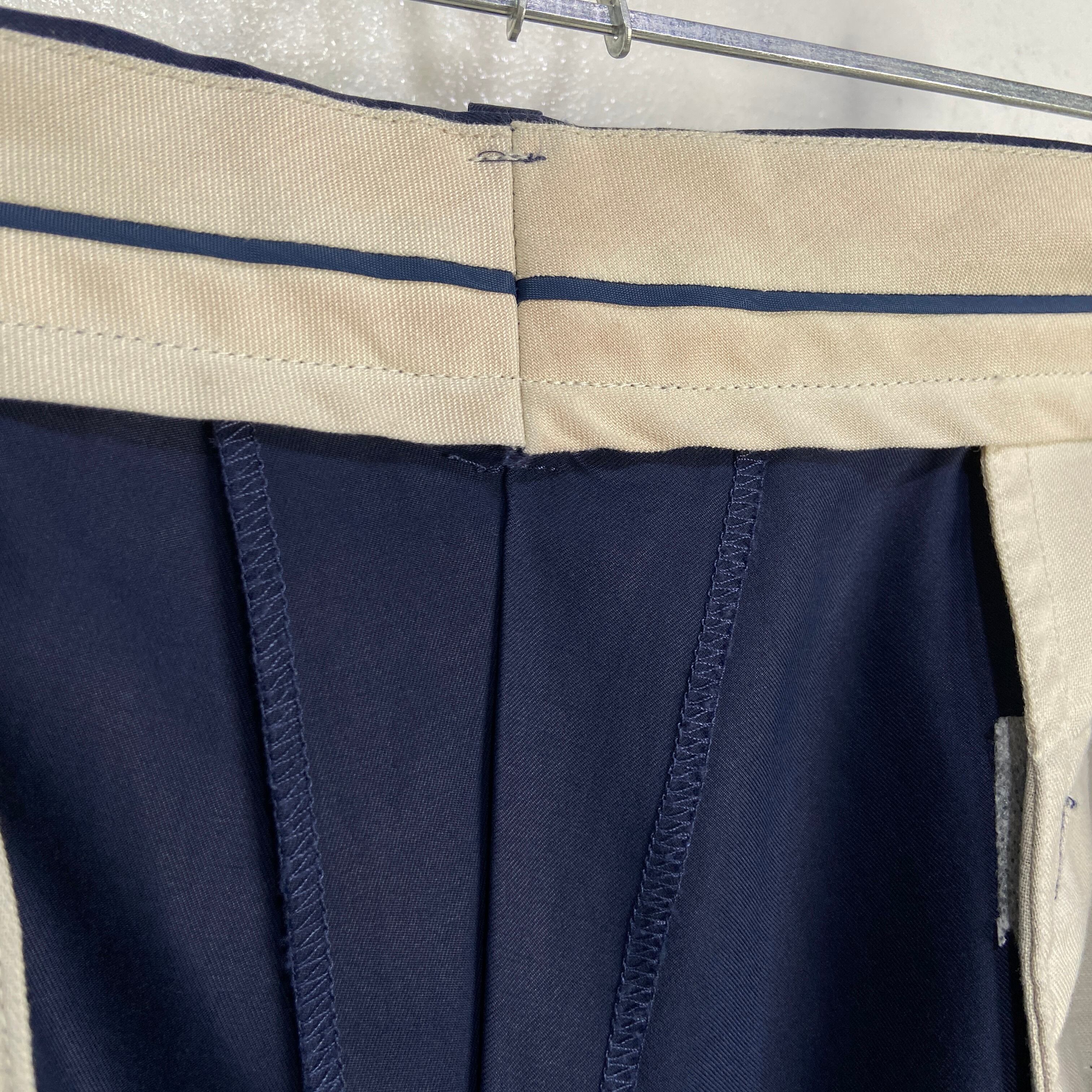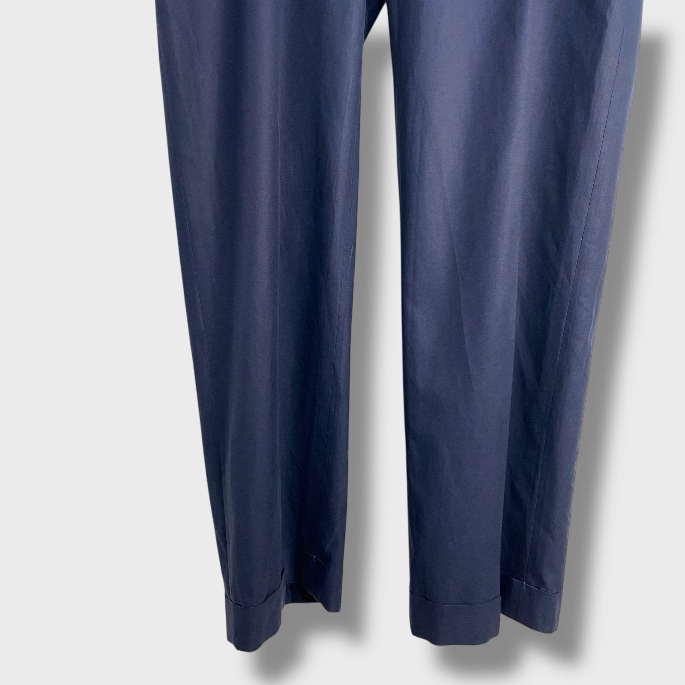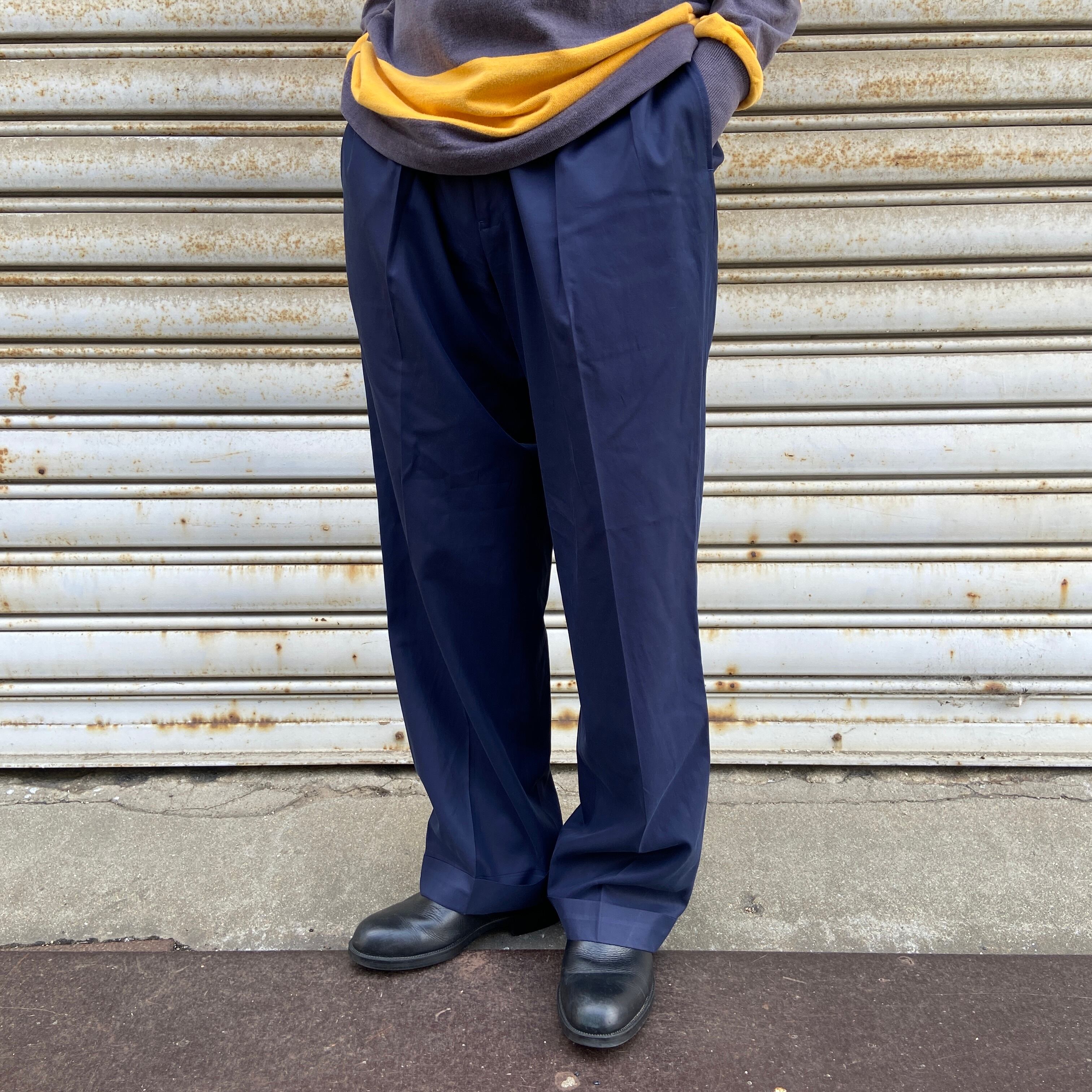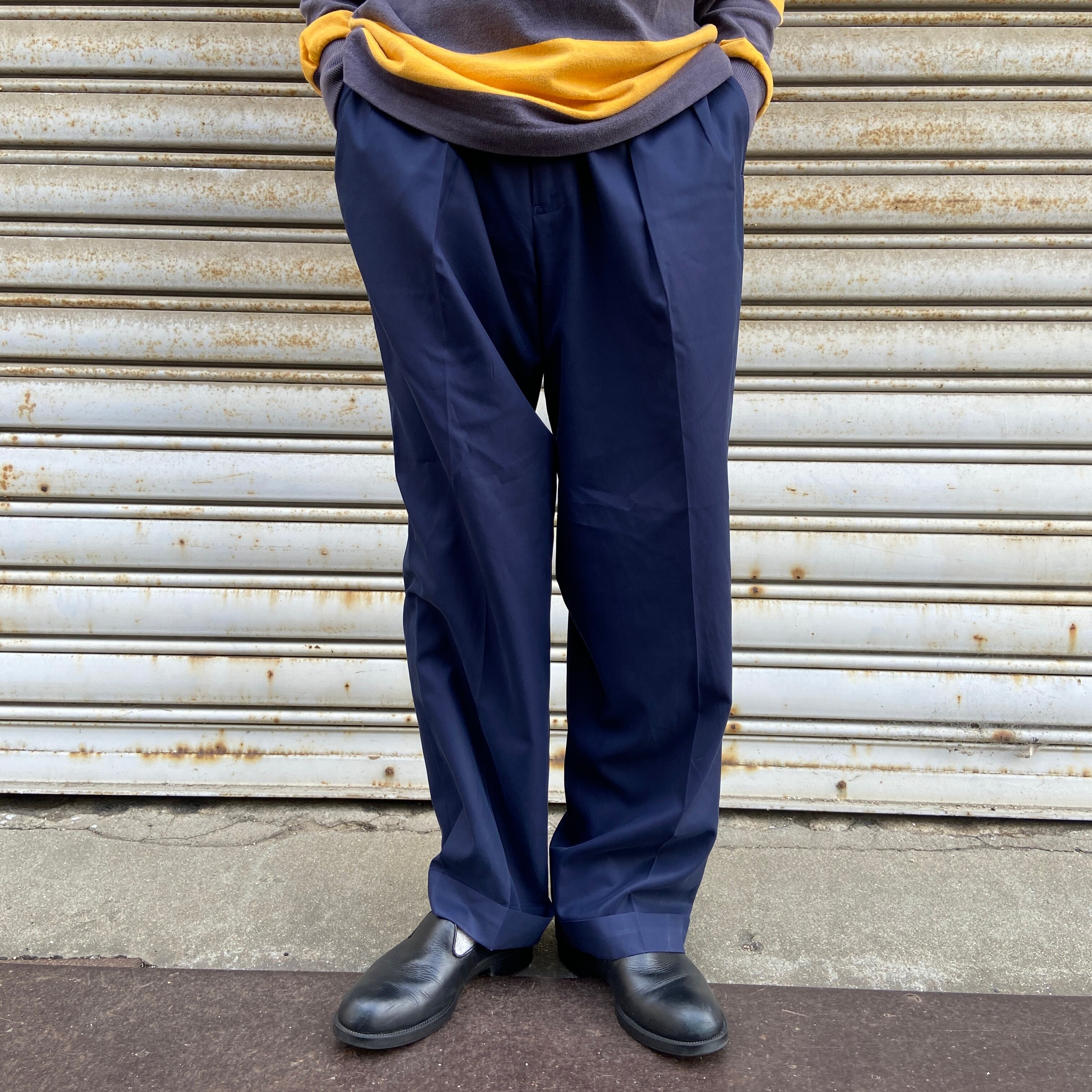 程よいコシと上品な艶感、マットなネイビーカラーがより高級感を引き立てている大人なスラックスです!
