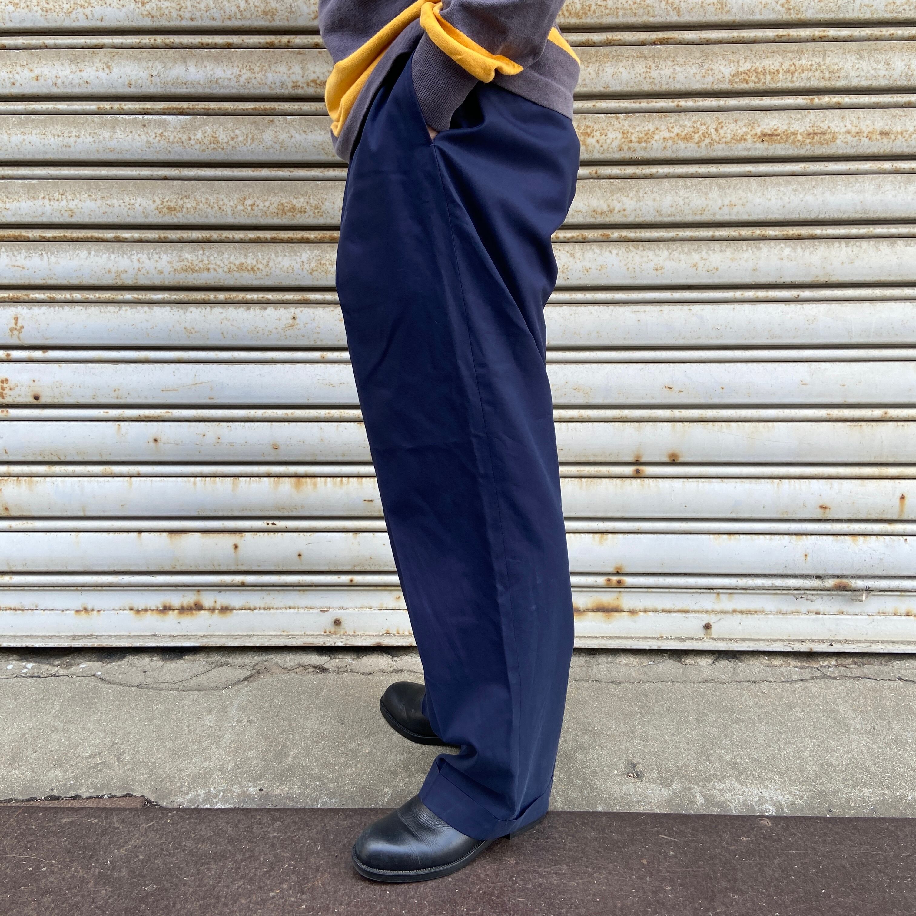 90s ラルフローレンPOLOGOLF シルクコットンタックスラックス ネイビー