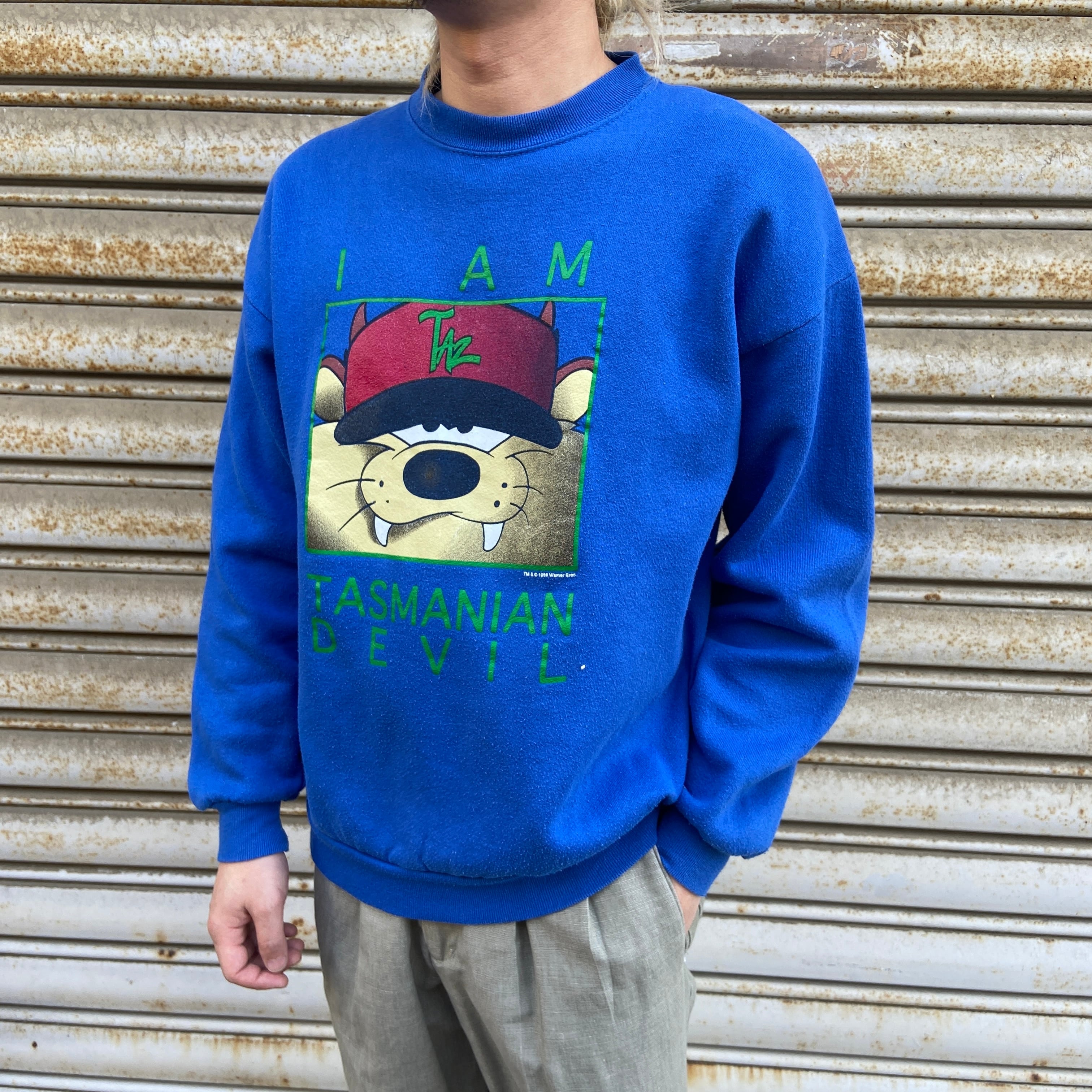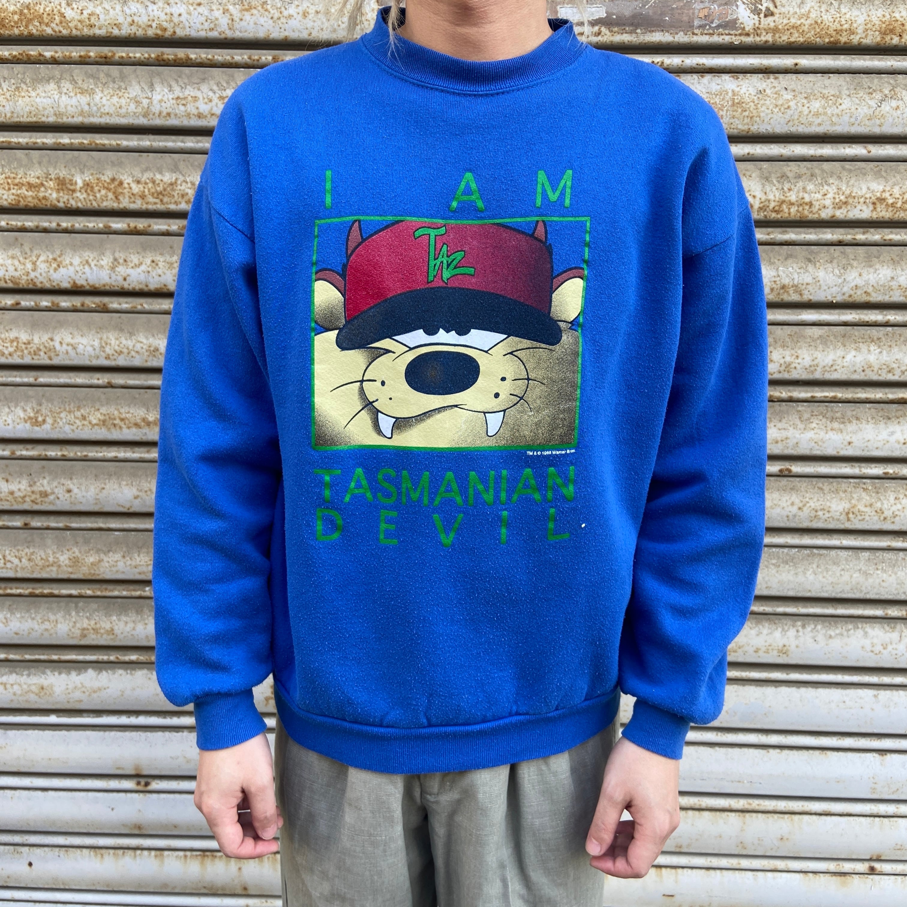 90s タズ キャラクタースウェット Looney Tunes USA製 L 青