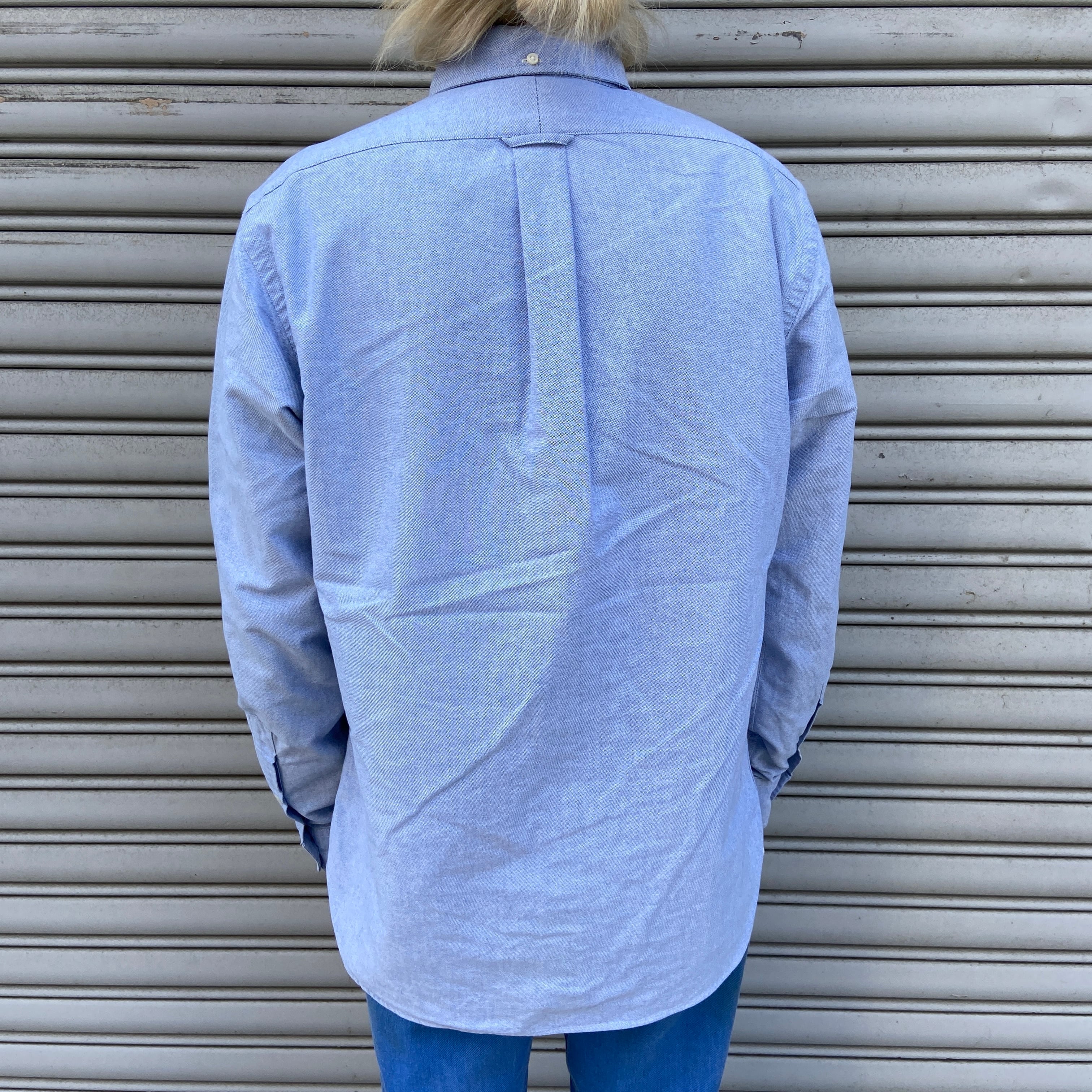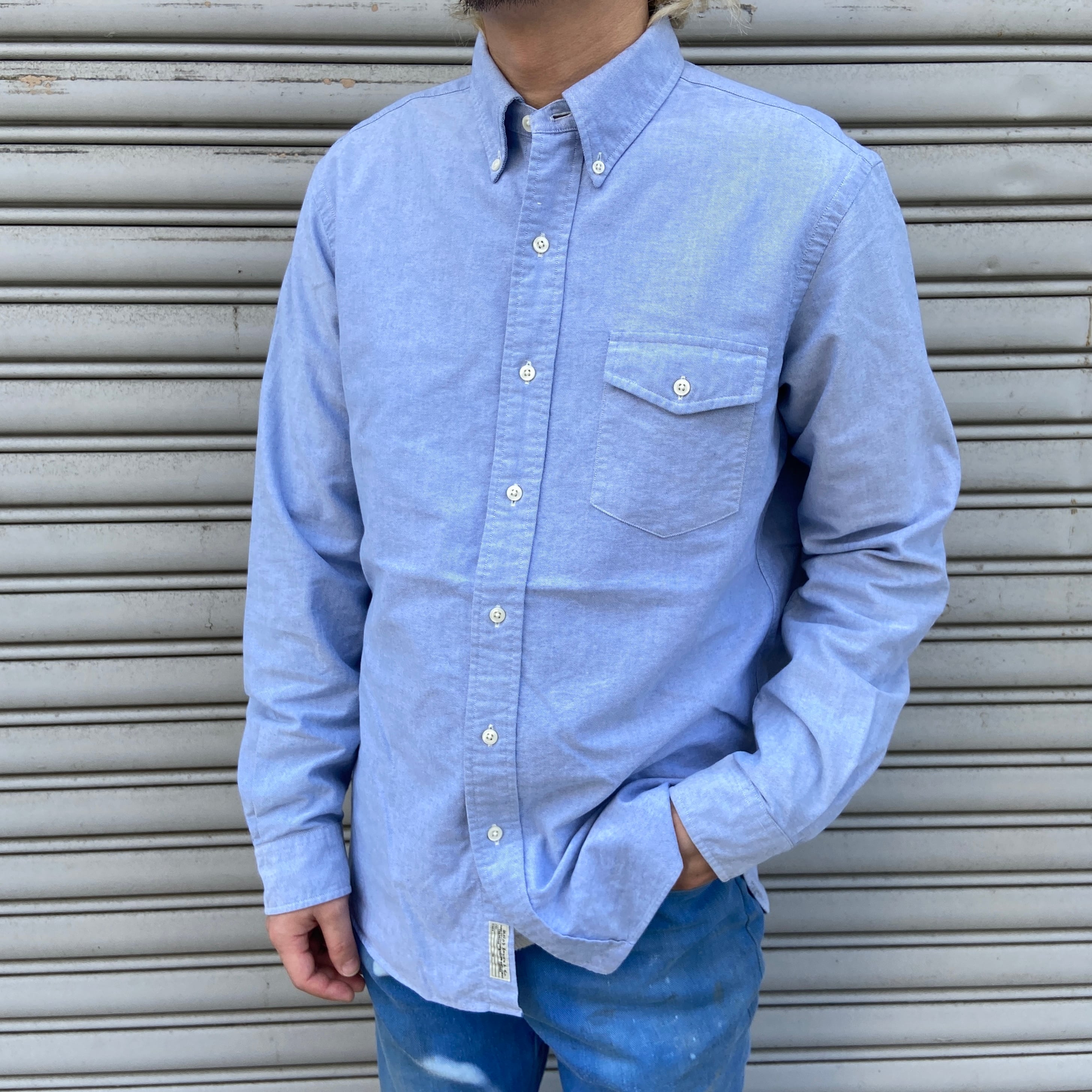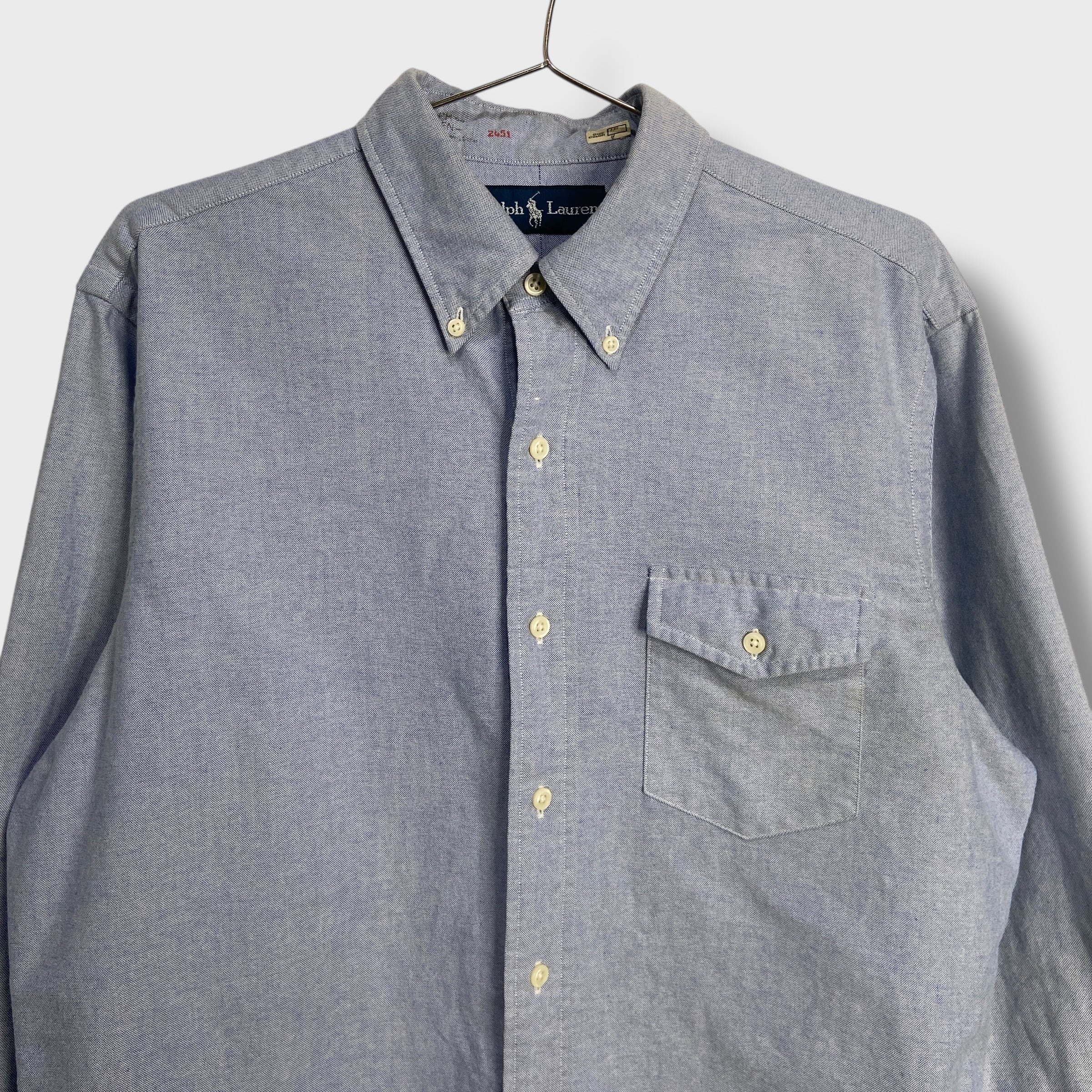 ラルフローレン ボタンダウンシャツ ポニーマーク無し サックスカラー M