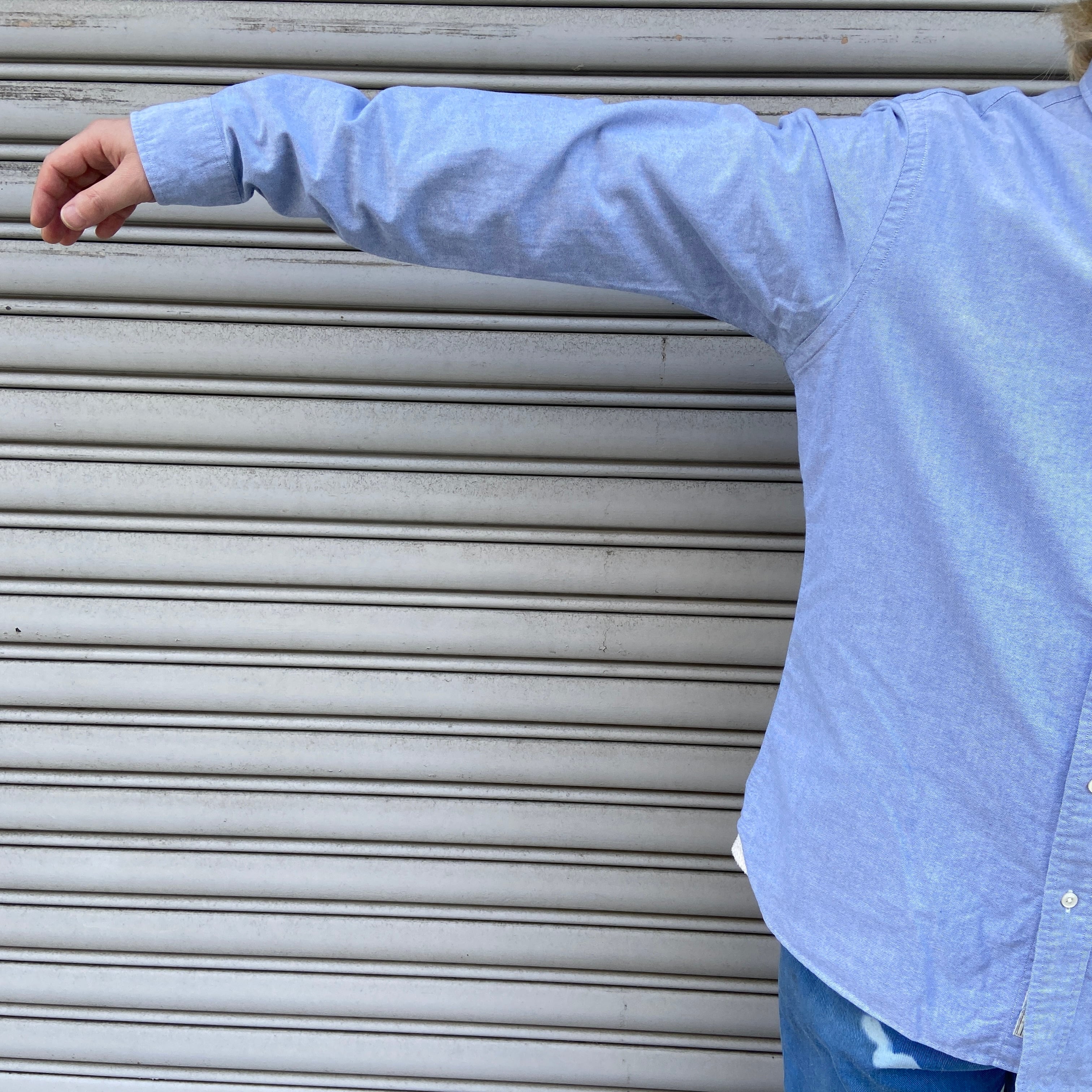 ラルフローレンのシャツで大きいサイズが多い中Mサイズと着用しやすく合わせやすいサックスカラーと申し分なしです^ ^
