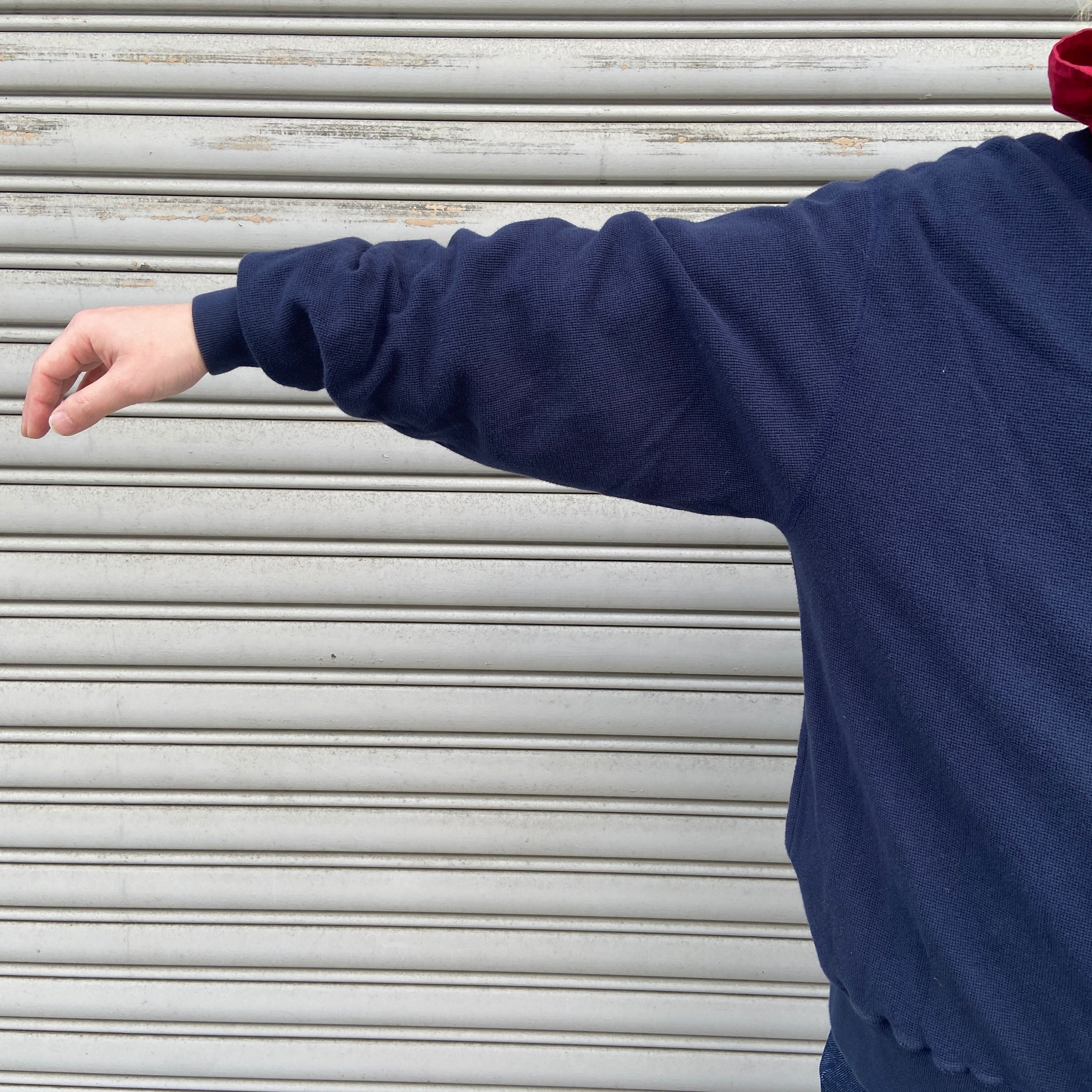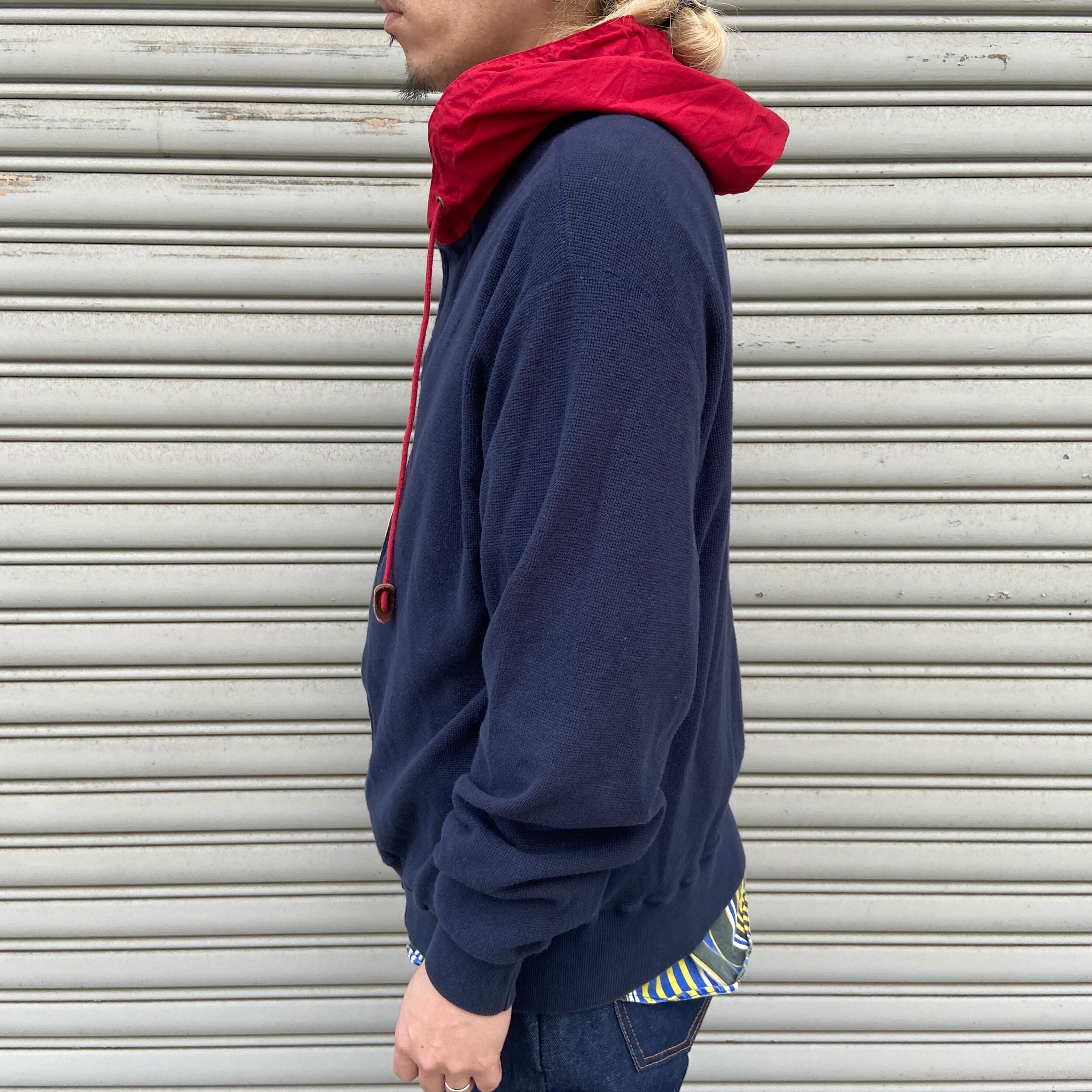 フードとドローコードのレッドカラーがネイビーと好配色です^ ^