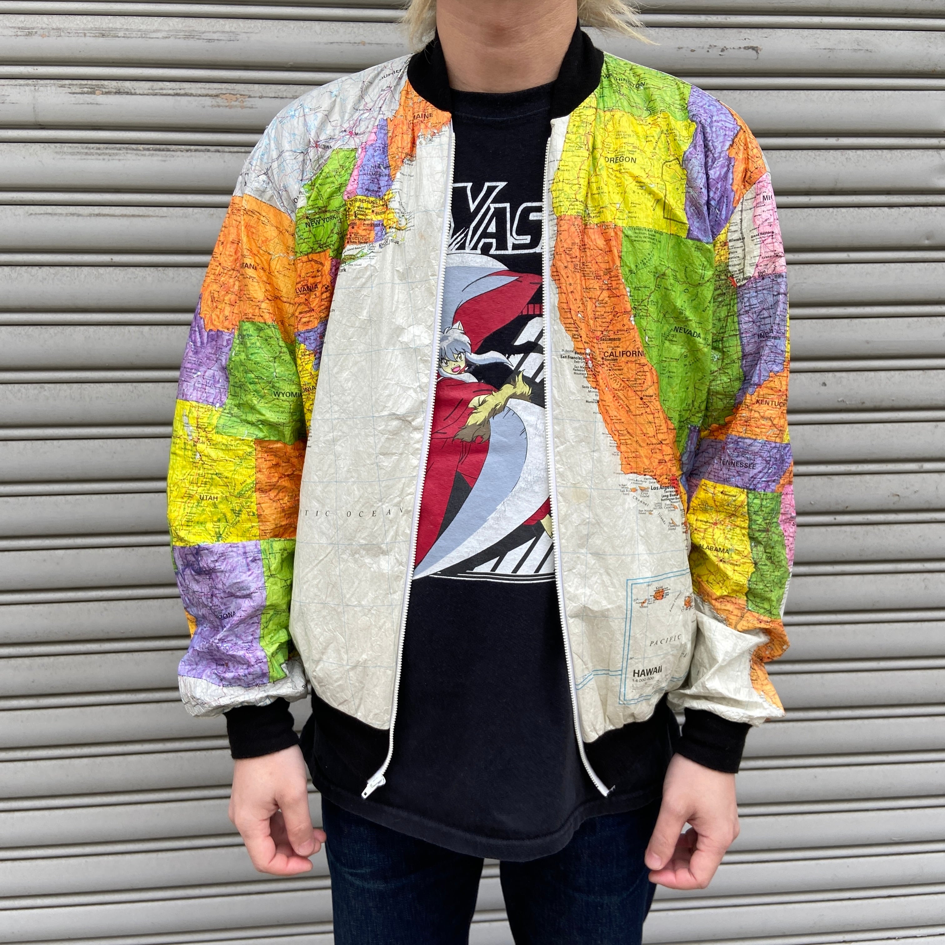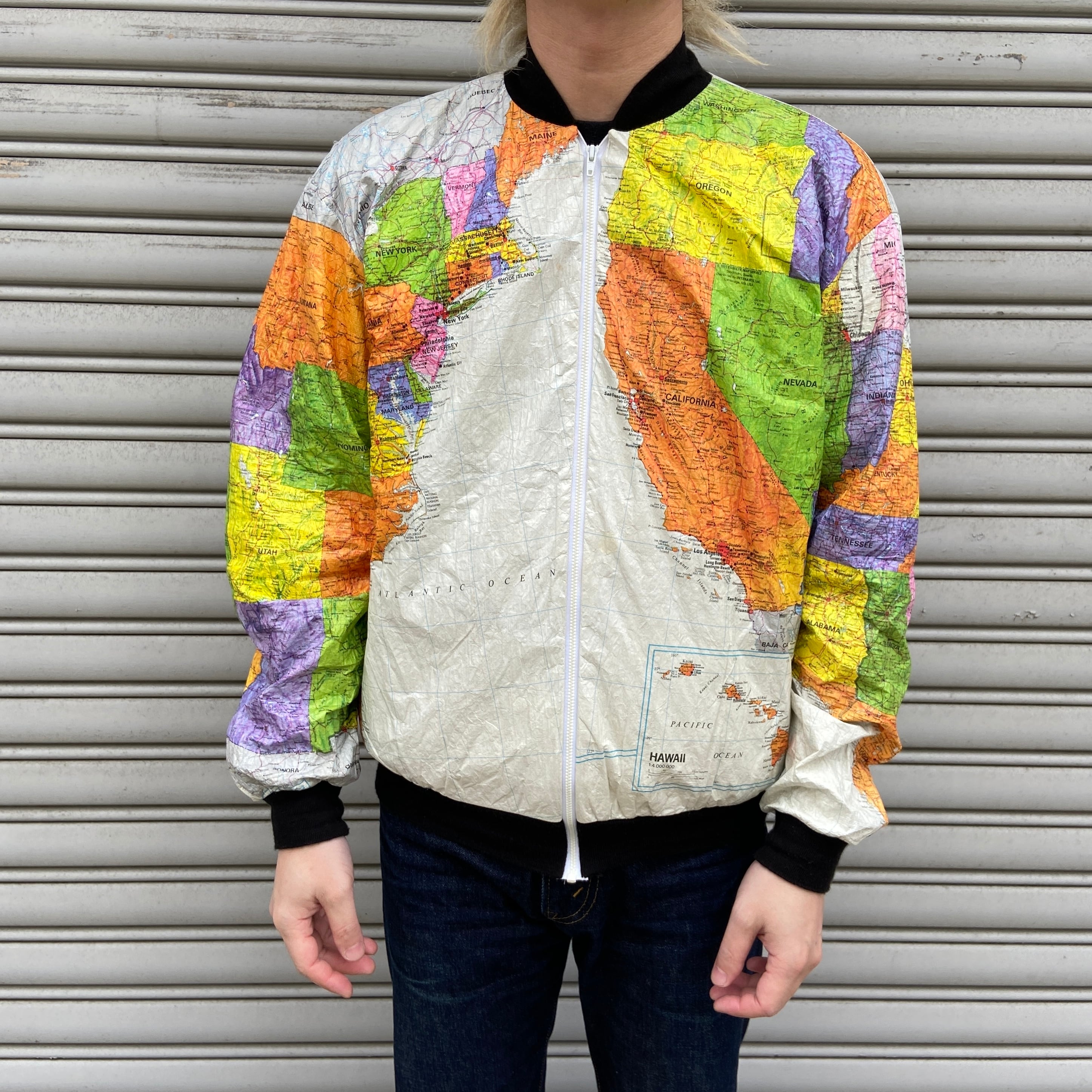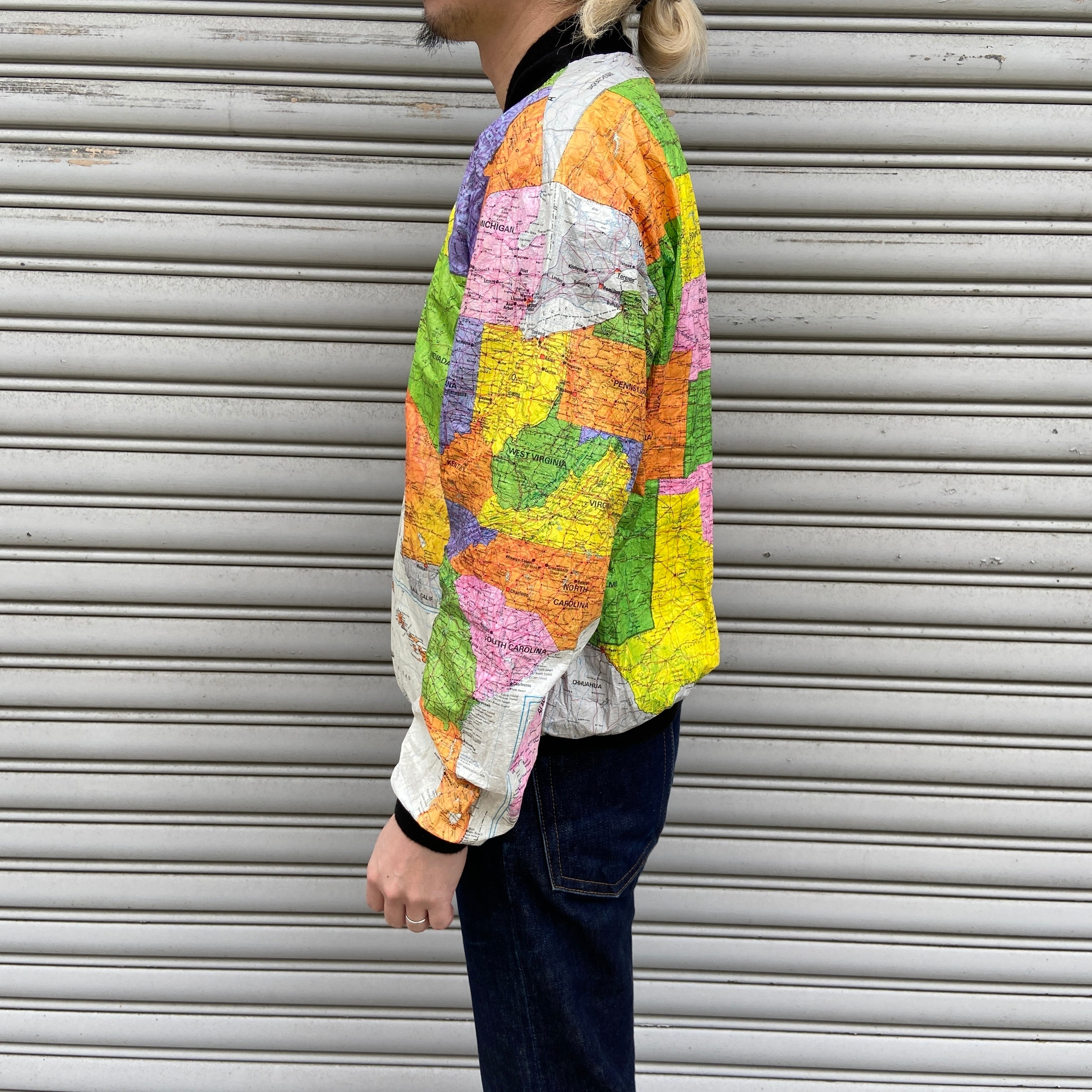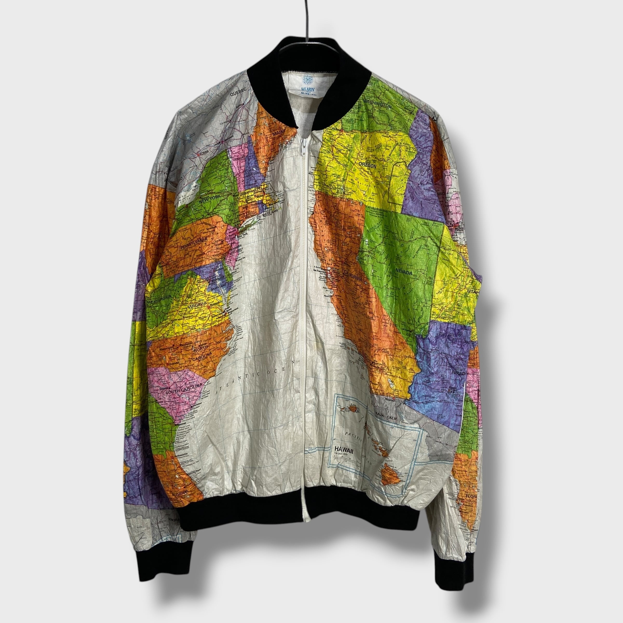 80s マップ柄ペーパージャケット アメリカ大陸 M Dupont