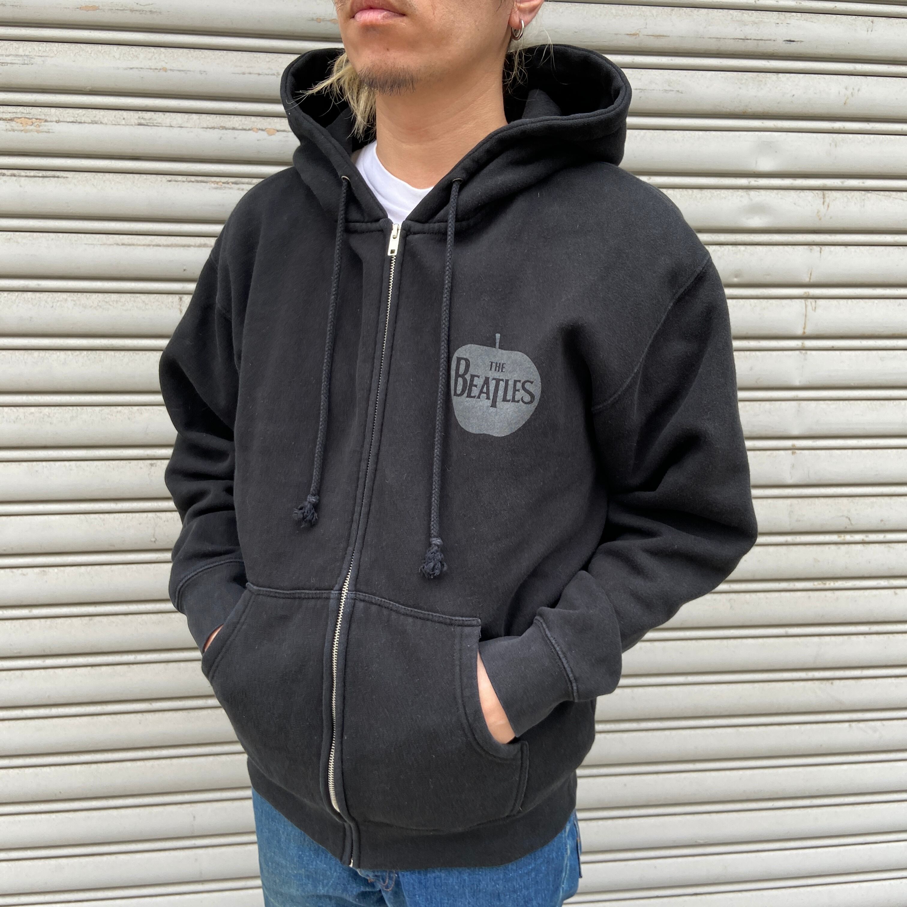ビートルズ ジップパーカー バックプリント バンド アップルロゴ 黒 M