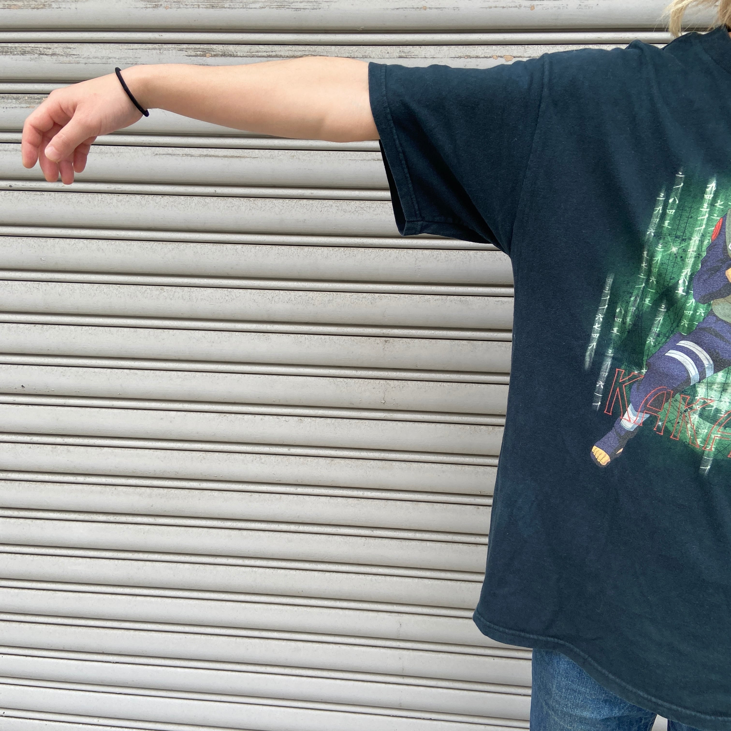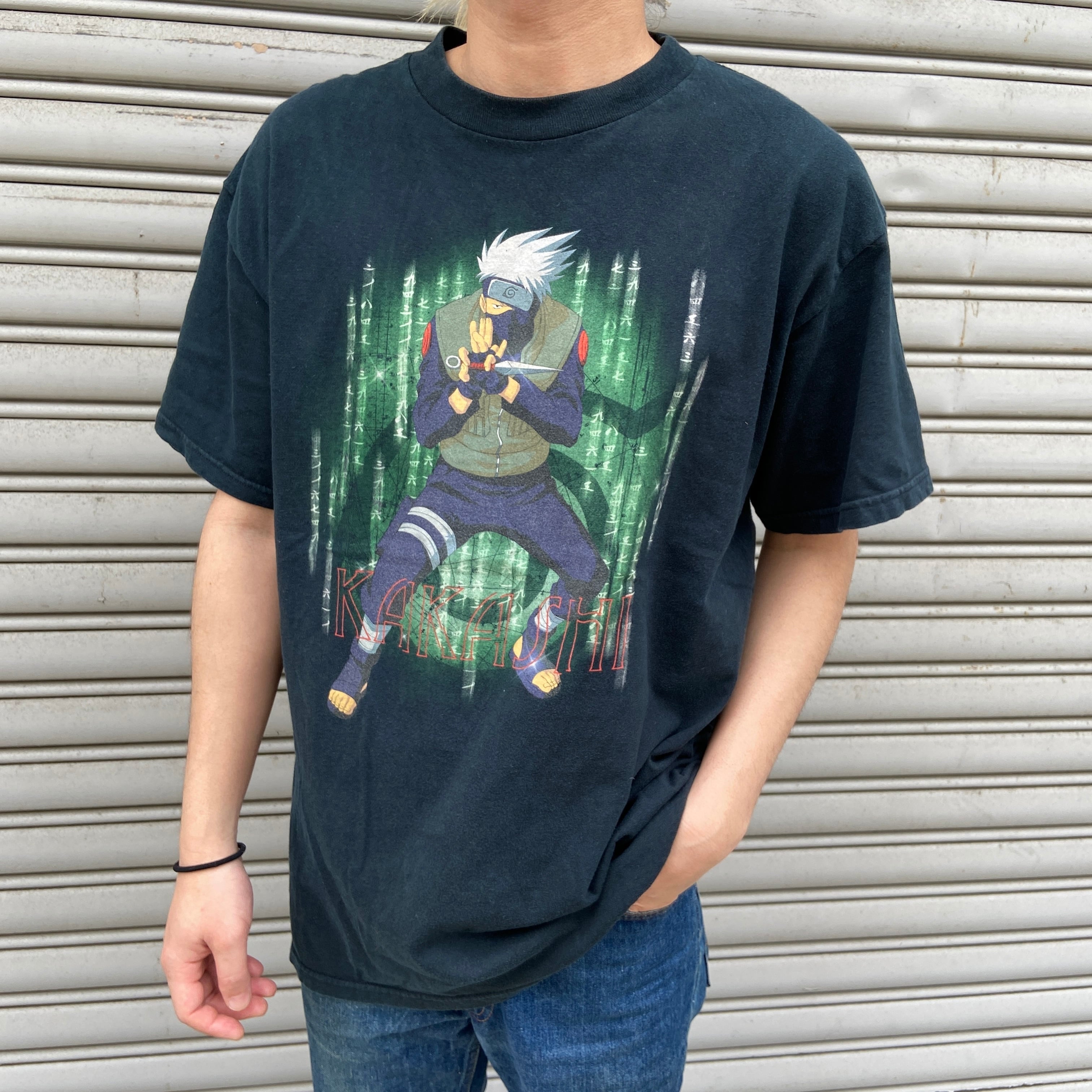 00s ナルト はたけカカシ アニメTシャツ キャラT 黒 L 海外規格 漫画