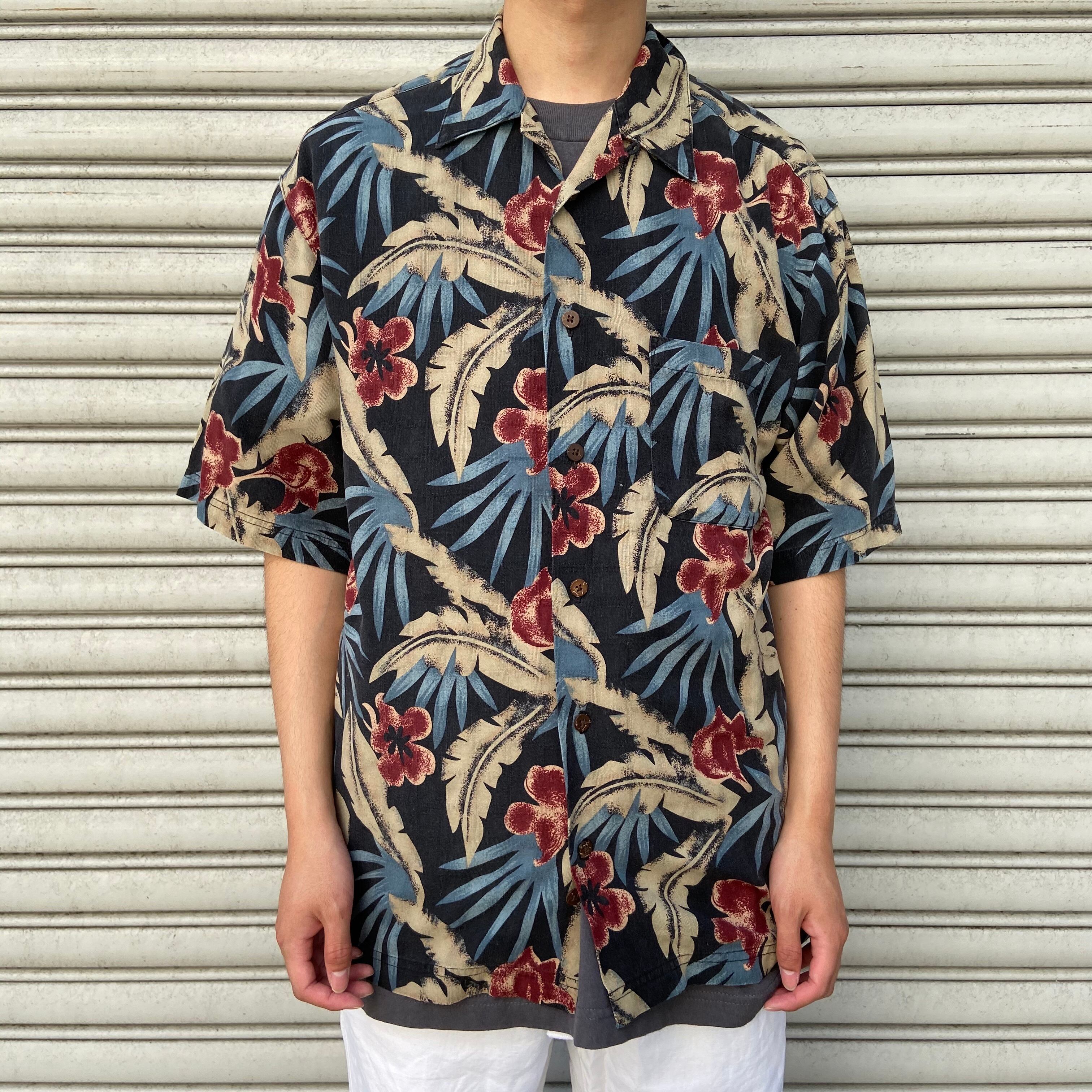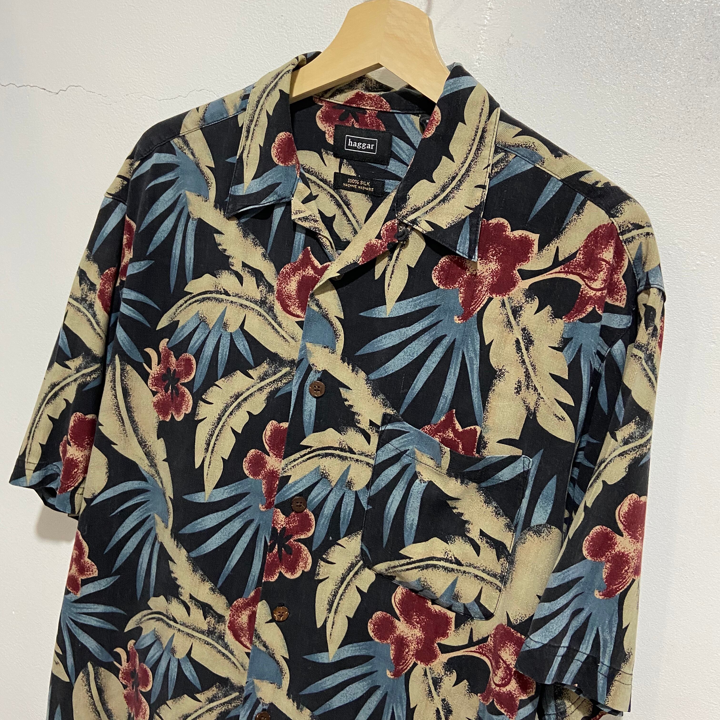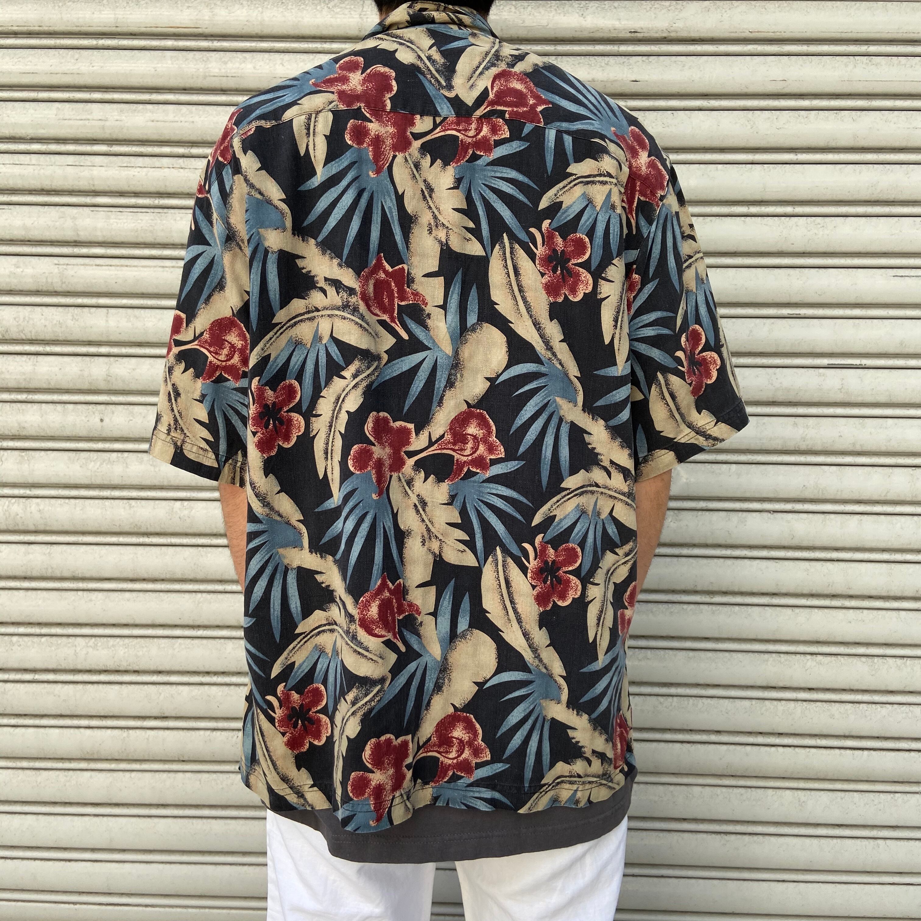 ブラックカラーベースにカラフルなフラワー柄、リーフ柄がデザインされたお洒落一枚です