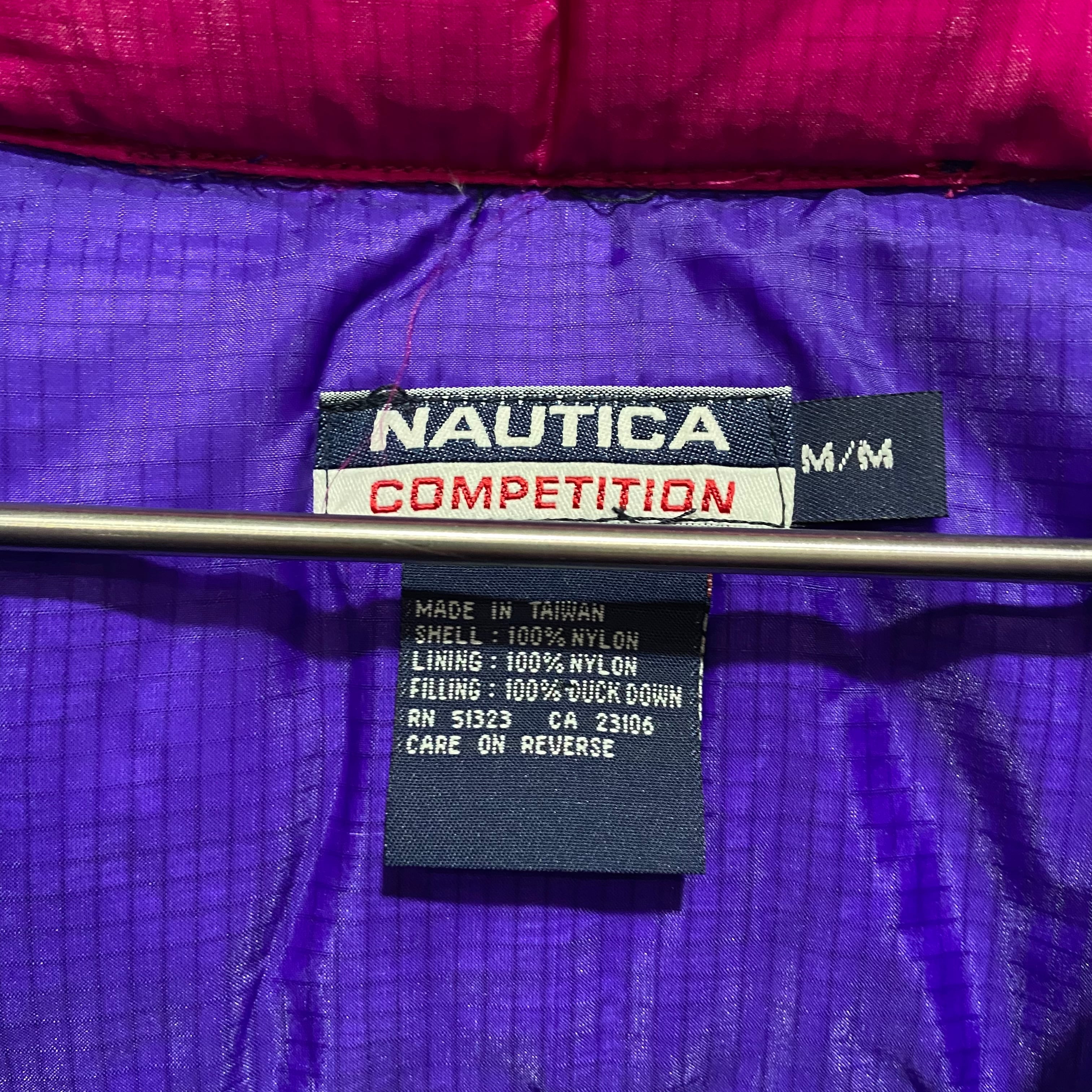 襟にはフードが収納されています。バックの襟下にはnautica competitionのロゴが入っていてカッコいいです!