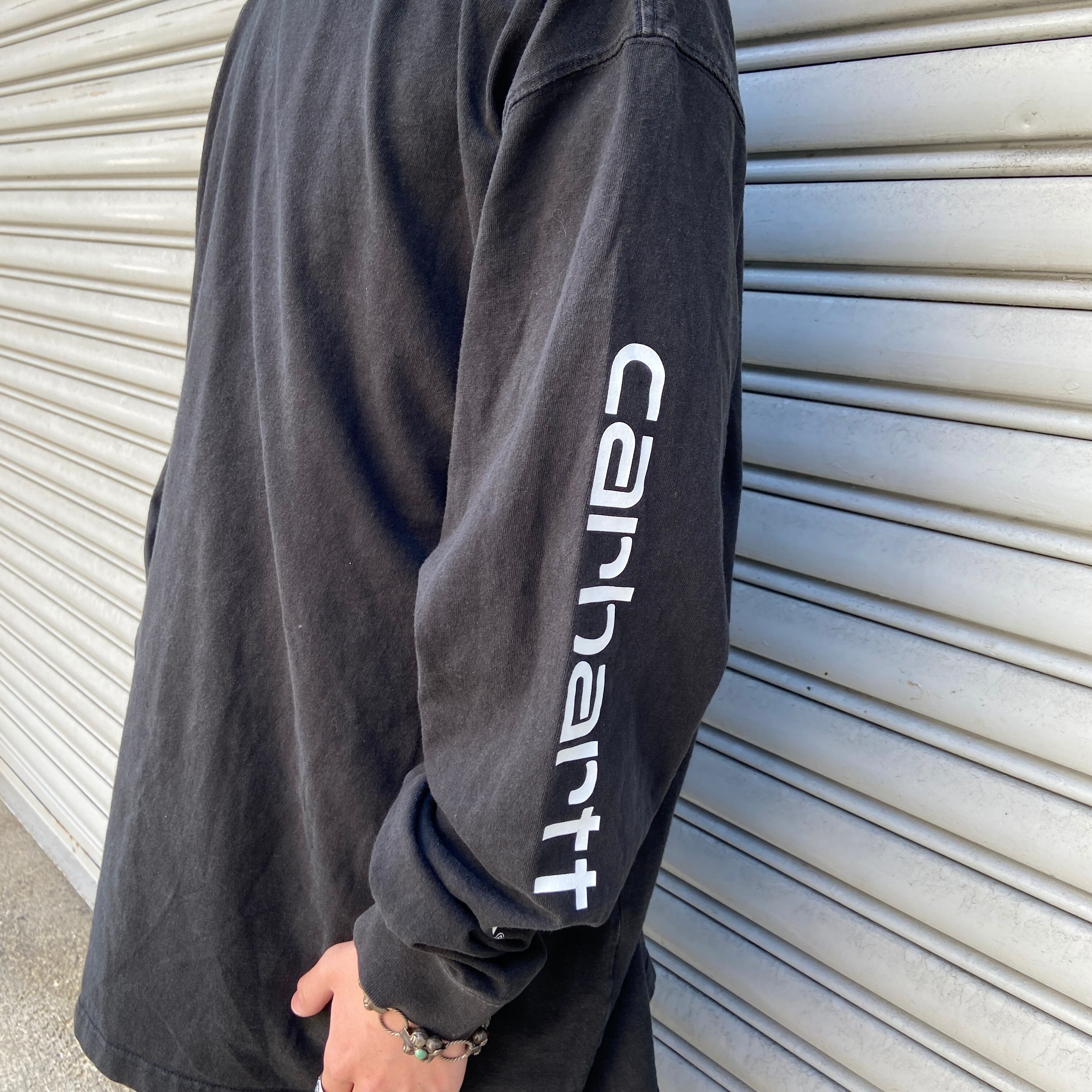 袖以外は無地で、袖にはカーハートのロゴが入ったデザインが着易く、程よく気も利いたデザインがお洒落な1着です^ ^