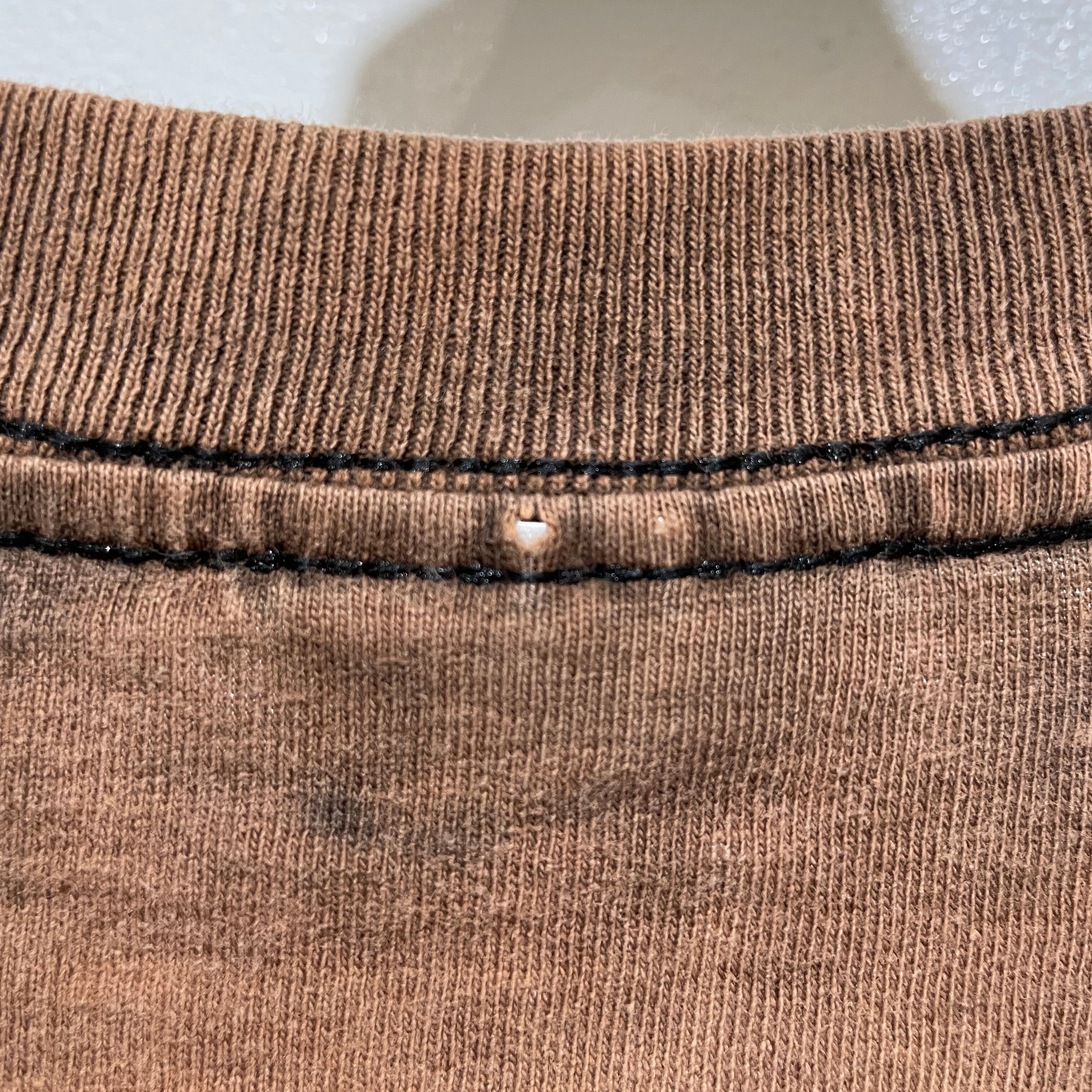 使用感はございます。お腹裾周り、脇、首リブに小穴があります。裾のステッチ周りがカールしてる箇所があります。