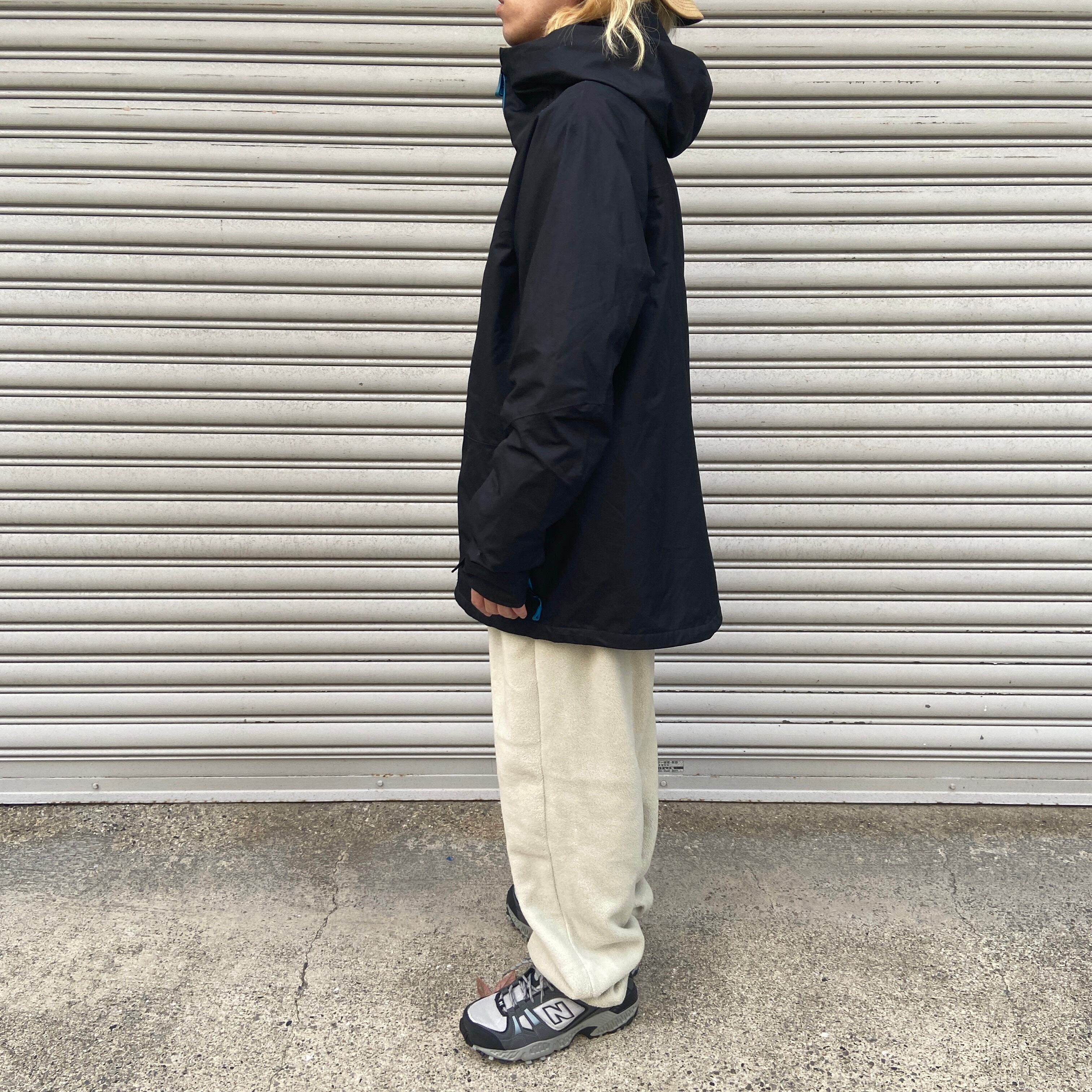 ナイロン地のハイネックフード仕様でフードと裾口にドローコード付きで絞り調整が可能となります!