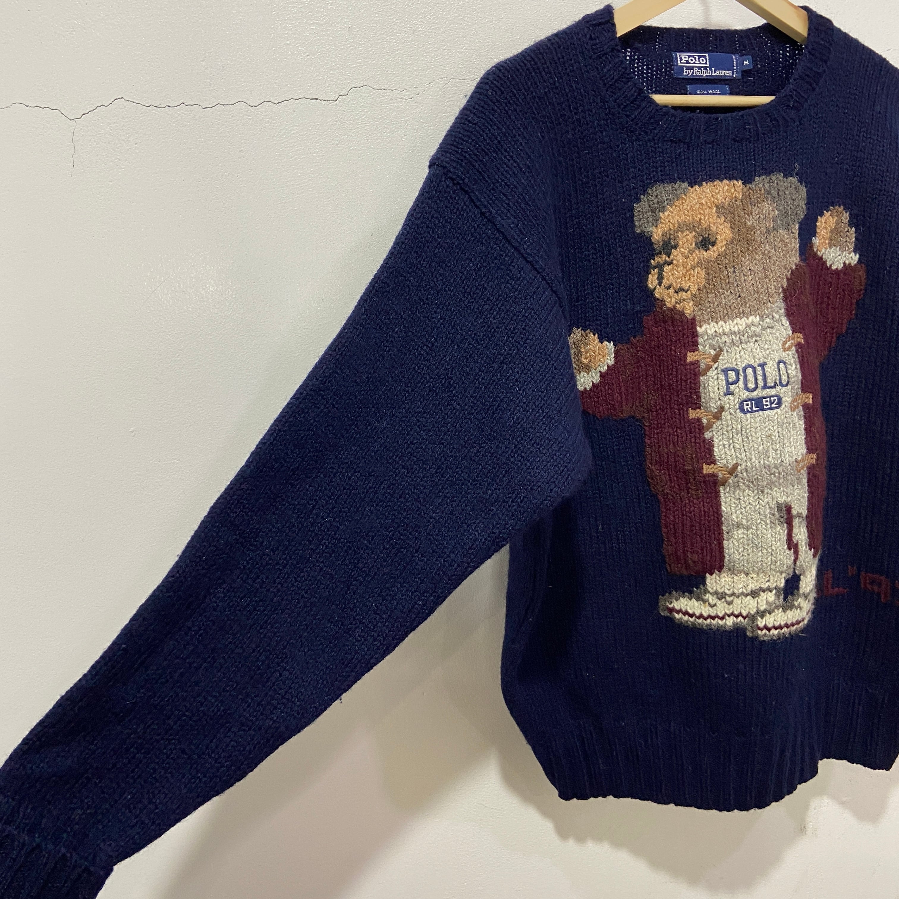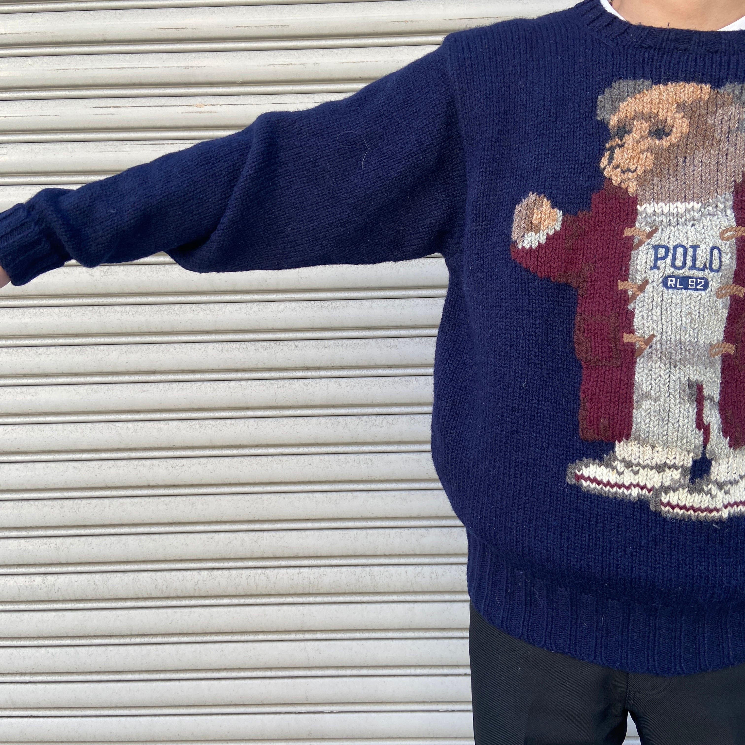 『送料無料』90s RL-92 ポロスタジアムコレクション ポロベアウールセーター 希少
