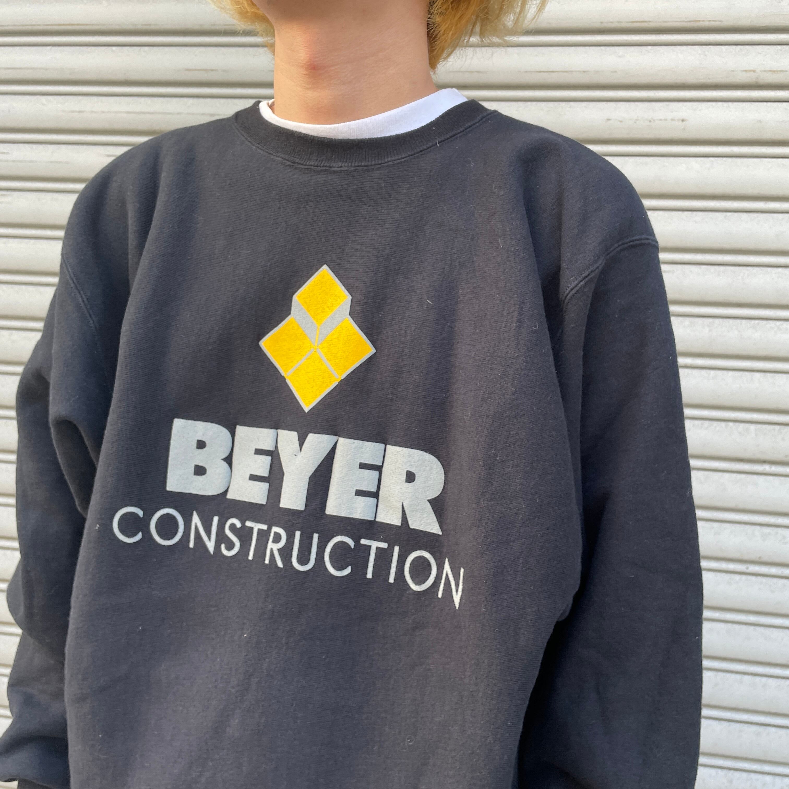 フロントにはアメリカのウィスコンシン州の建設会社の企業ロゴが大きくプリントされており、ポップでストリート感があるデザインが素敵です!左袖先には目玉マークロゴも入っています。