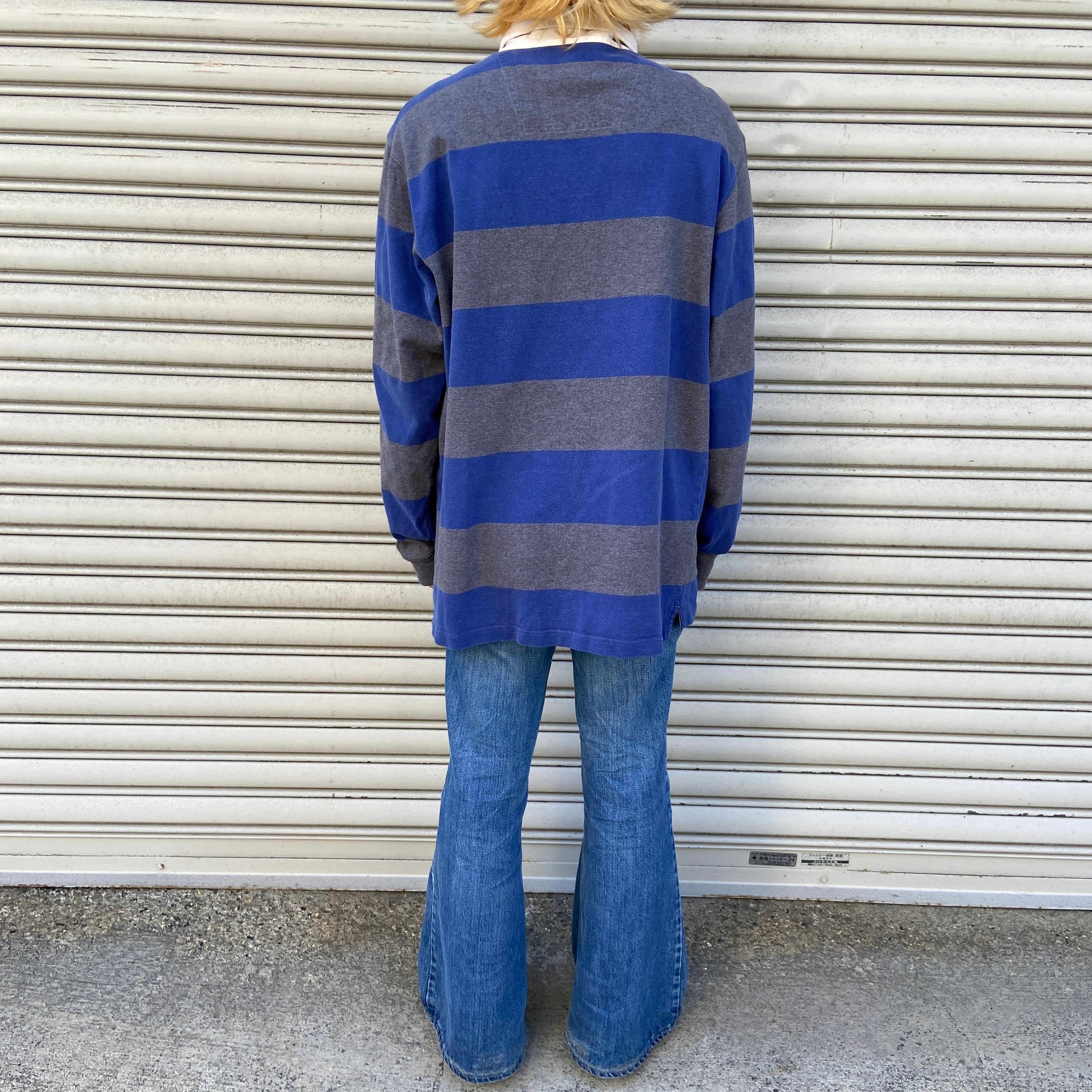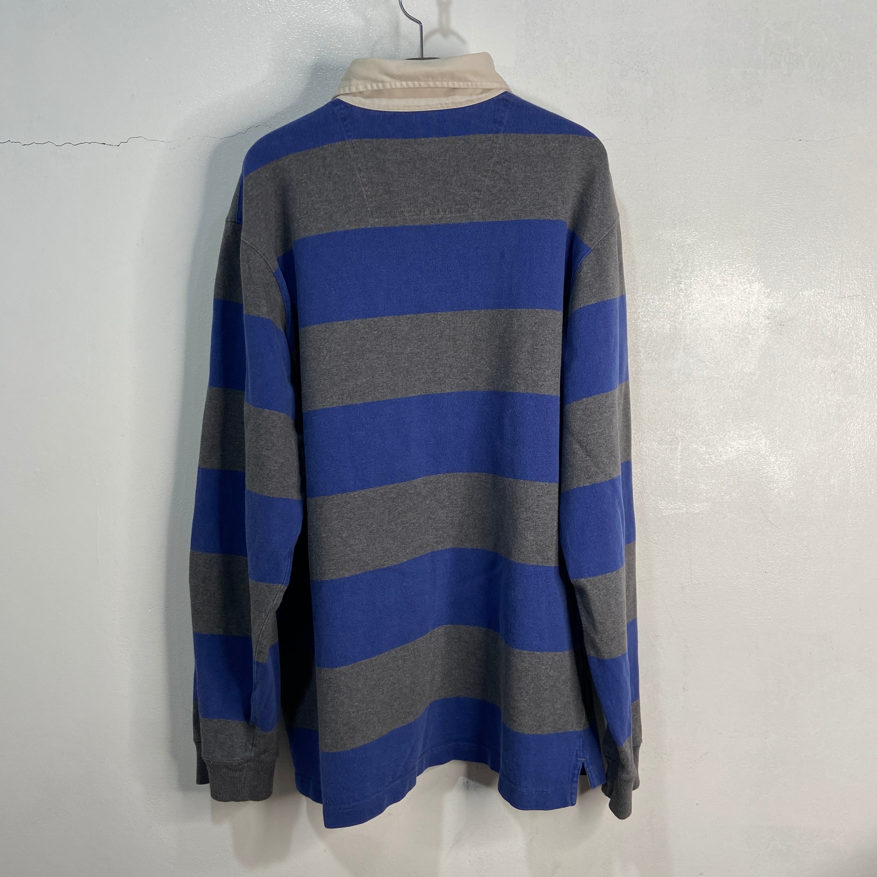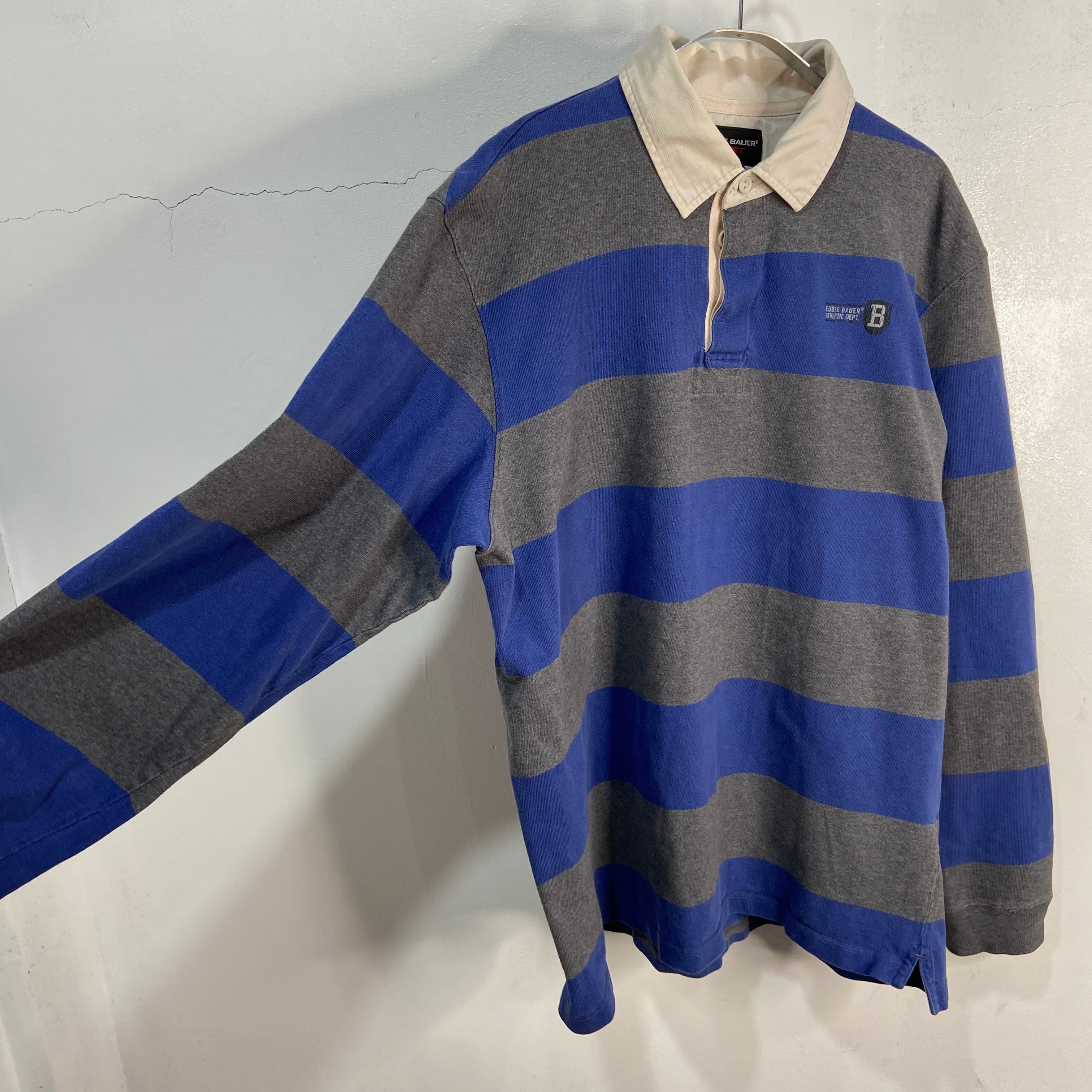 ブルーカラーとグレーカラー配色の太ボーダーのラガーポロシャツ^ ^