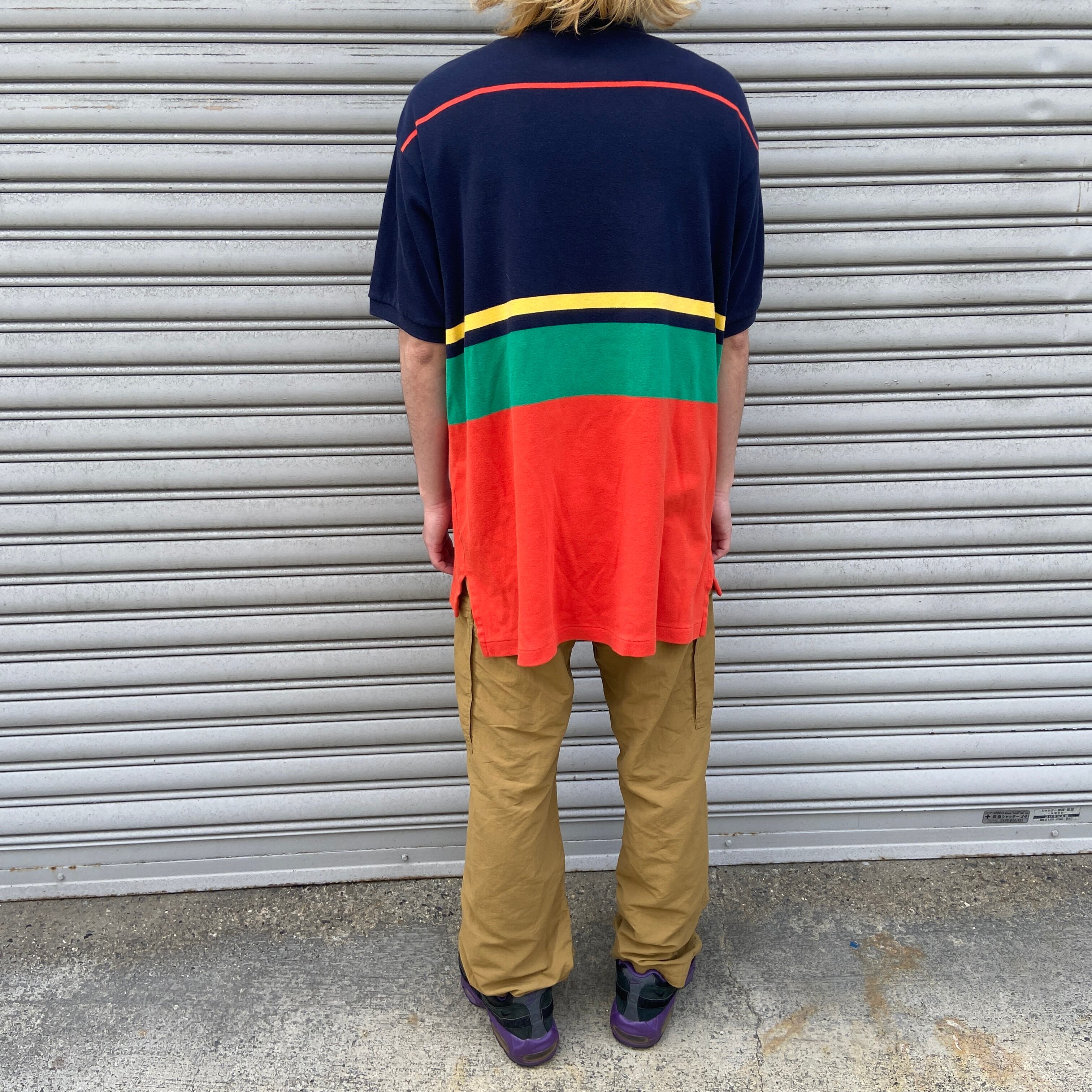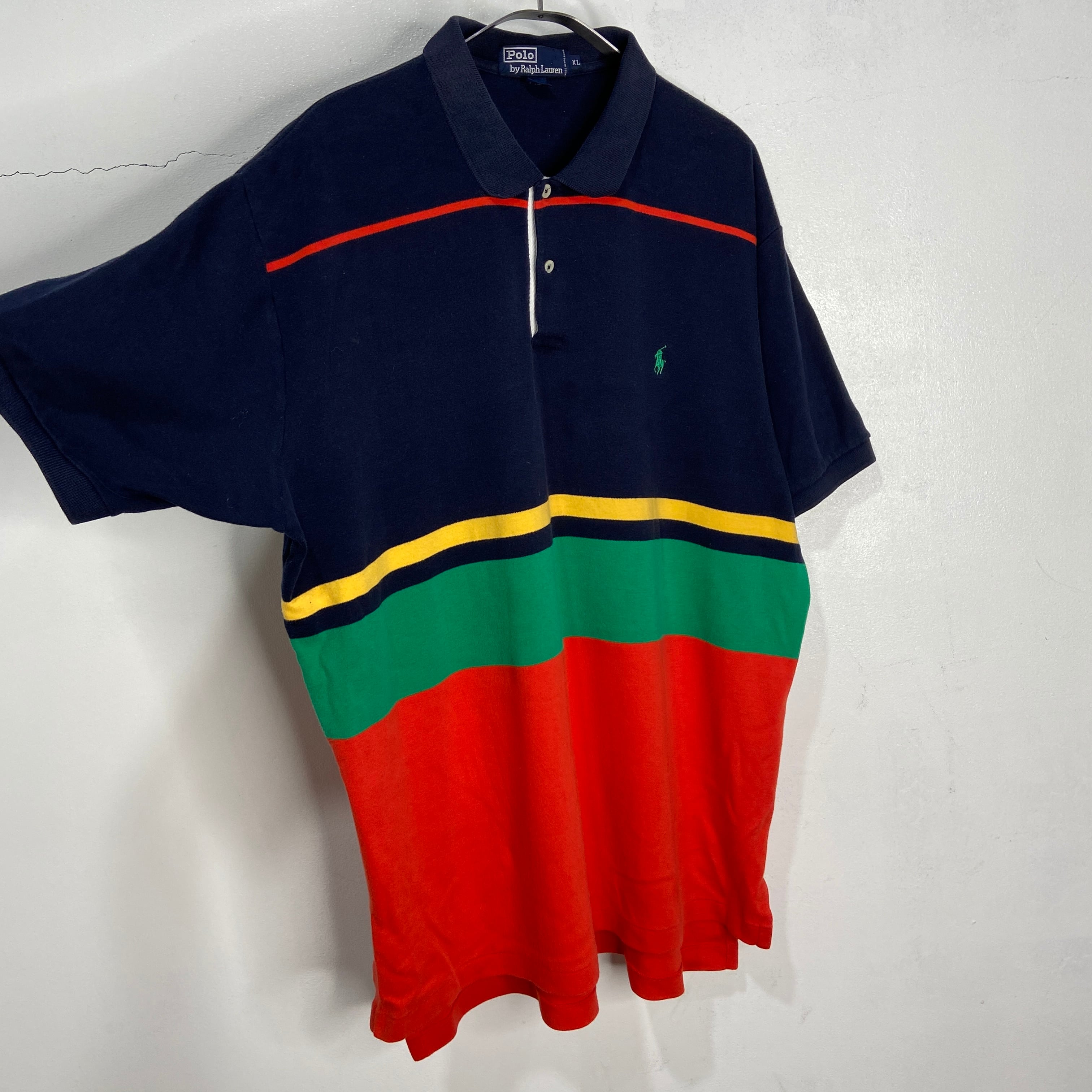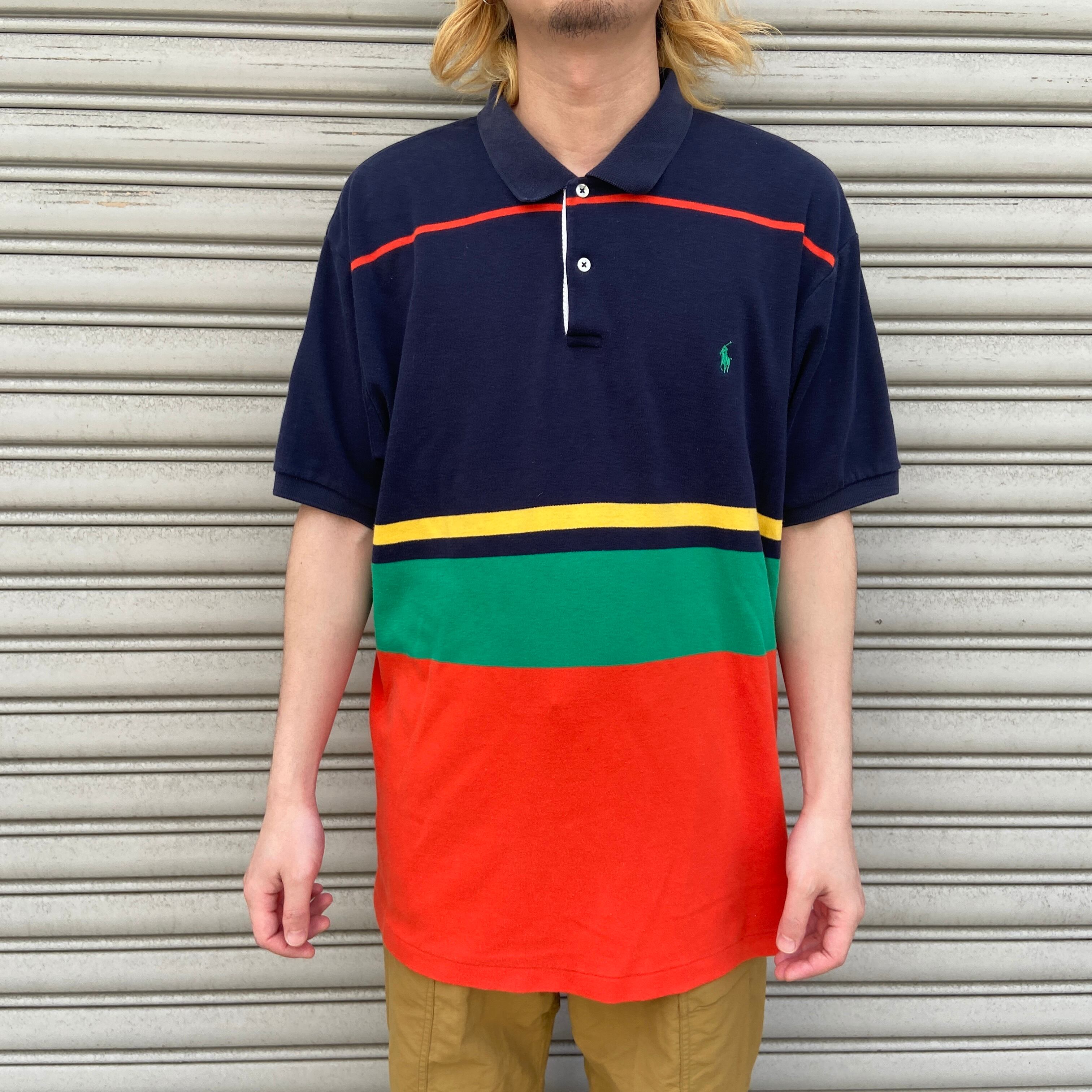 90年代頃のRalph Laurenのマルチボーダー柄半袖ポロシャツです!