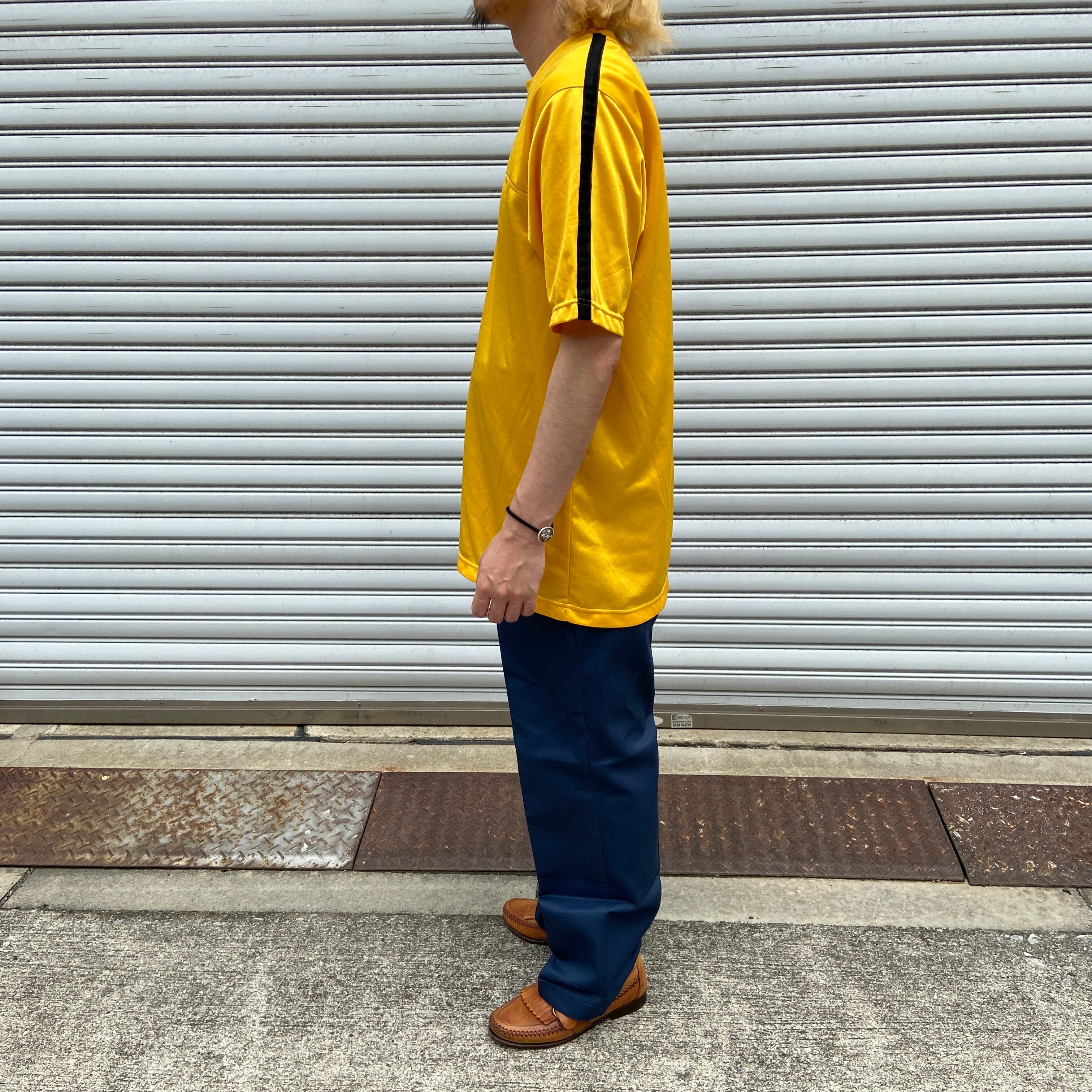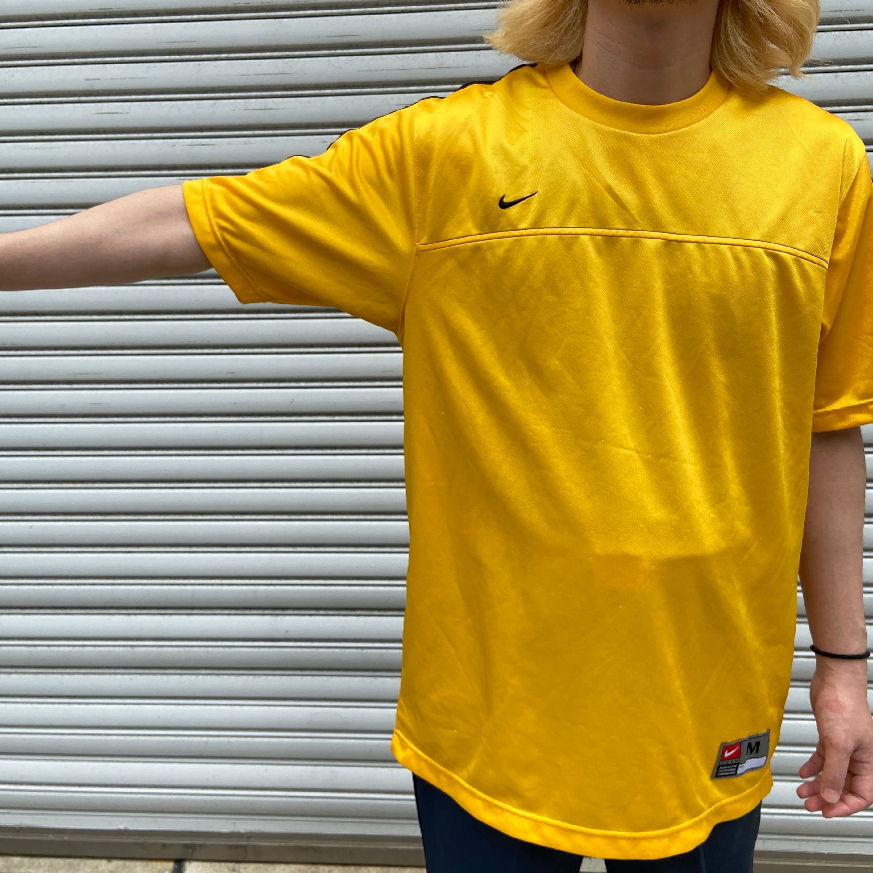 マスタードカラーをベースにブラックカラーのスウォッシュロゴと肩から袖口に向かったラインがアクセントとなってます^ ^