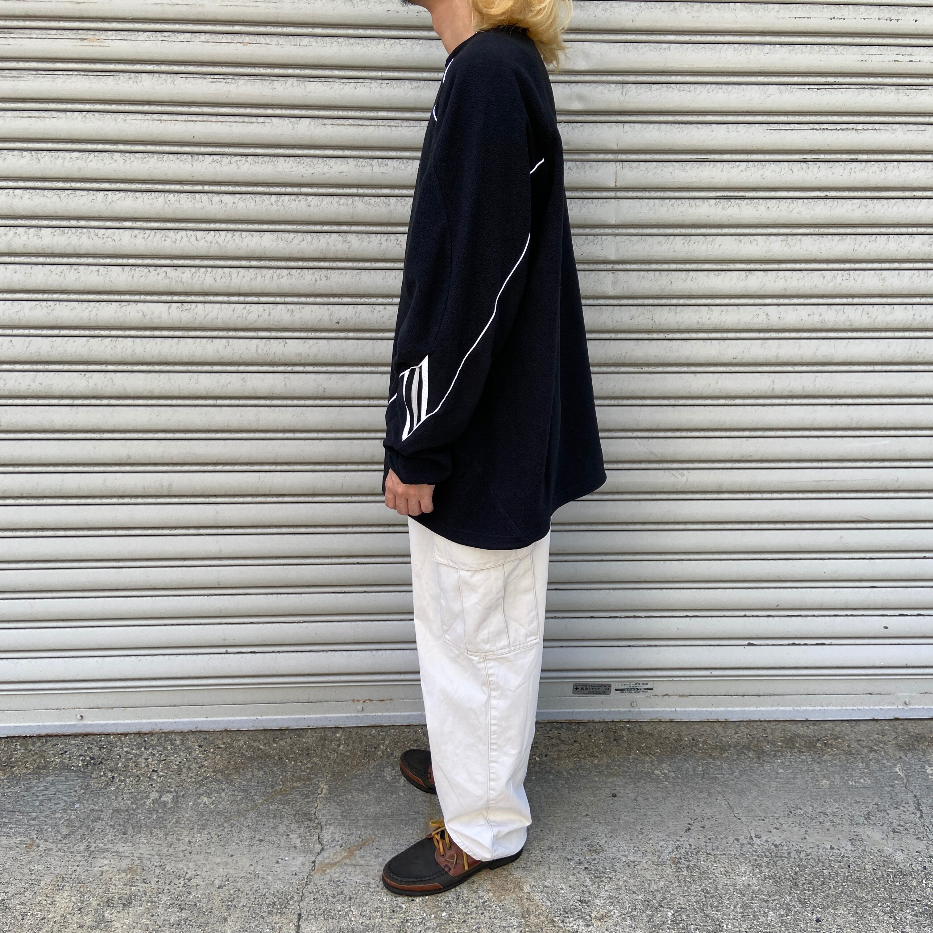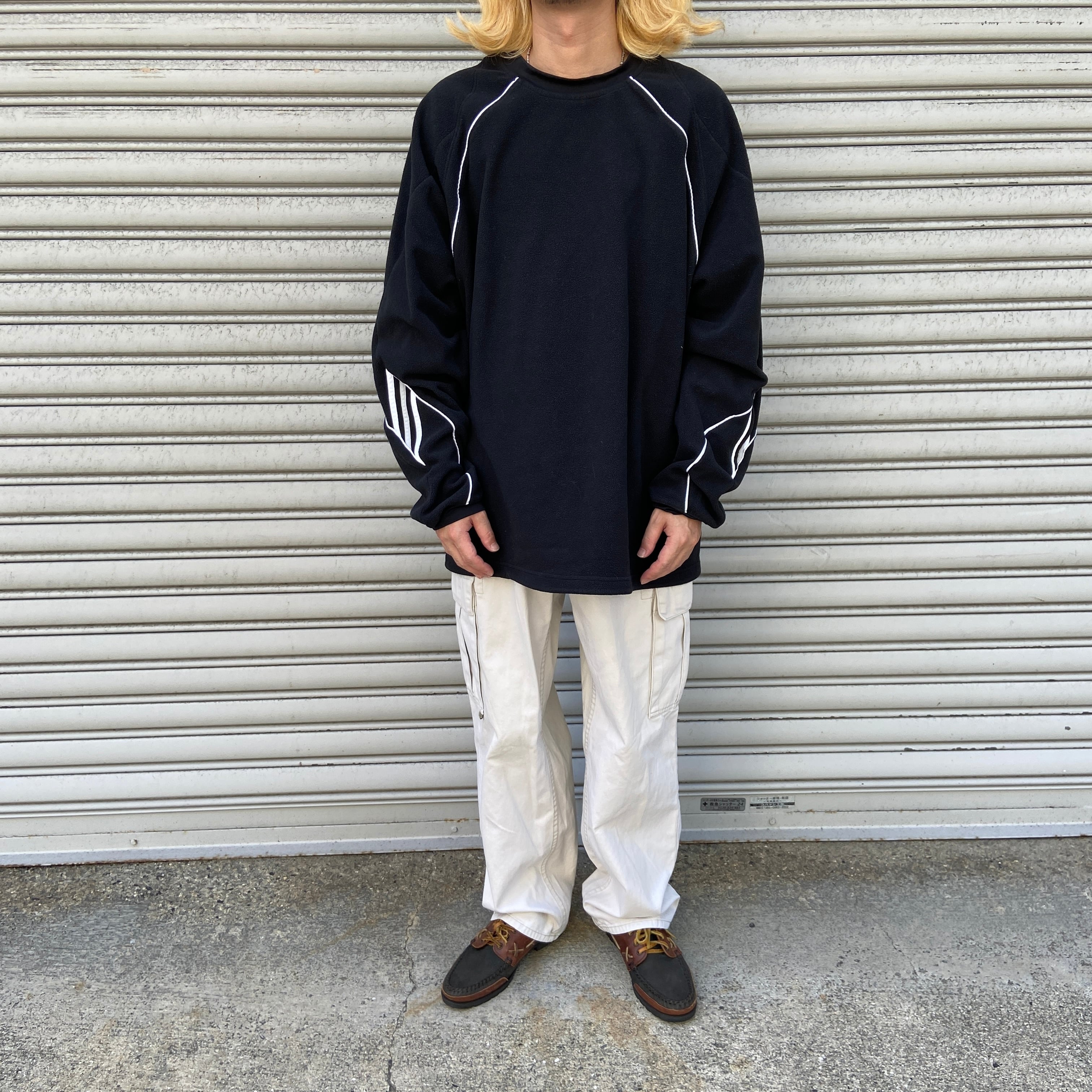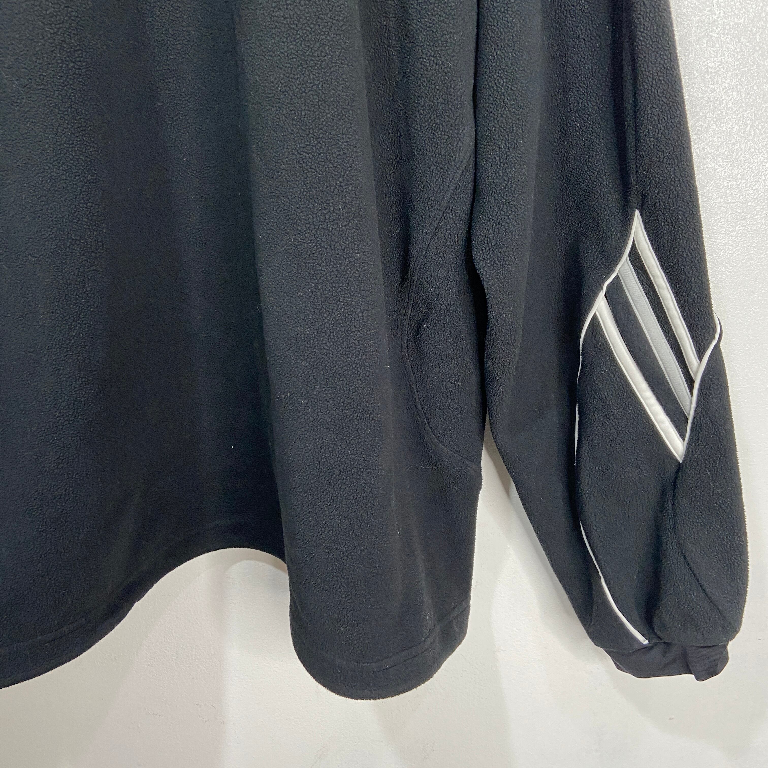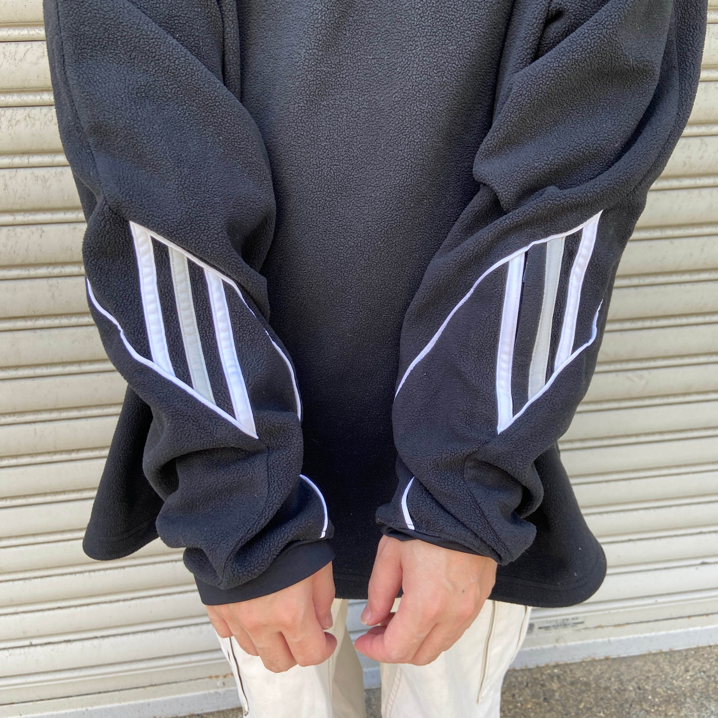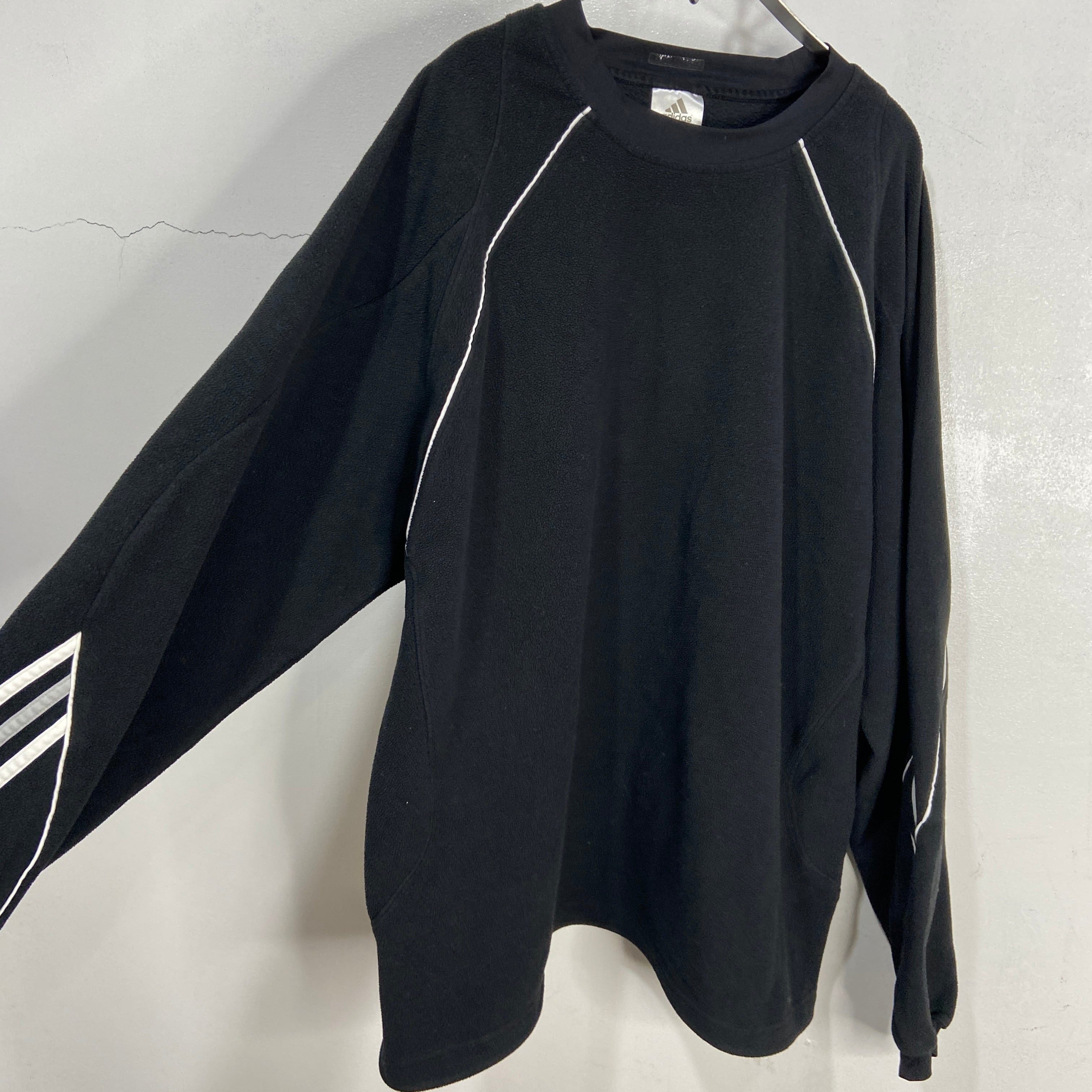 ブラックカラーを基調に、ホワイトカラーのパイピングとadidasのアイコン『スリーストライプ』デザインがお洒落なプルオーバーフリースセーター!