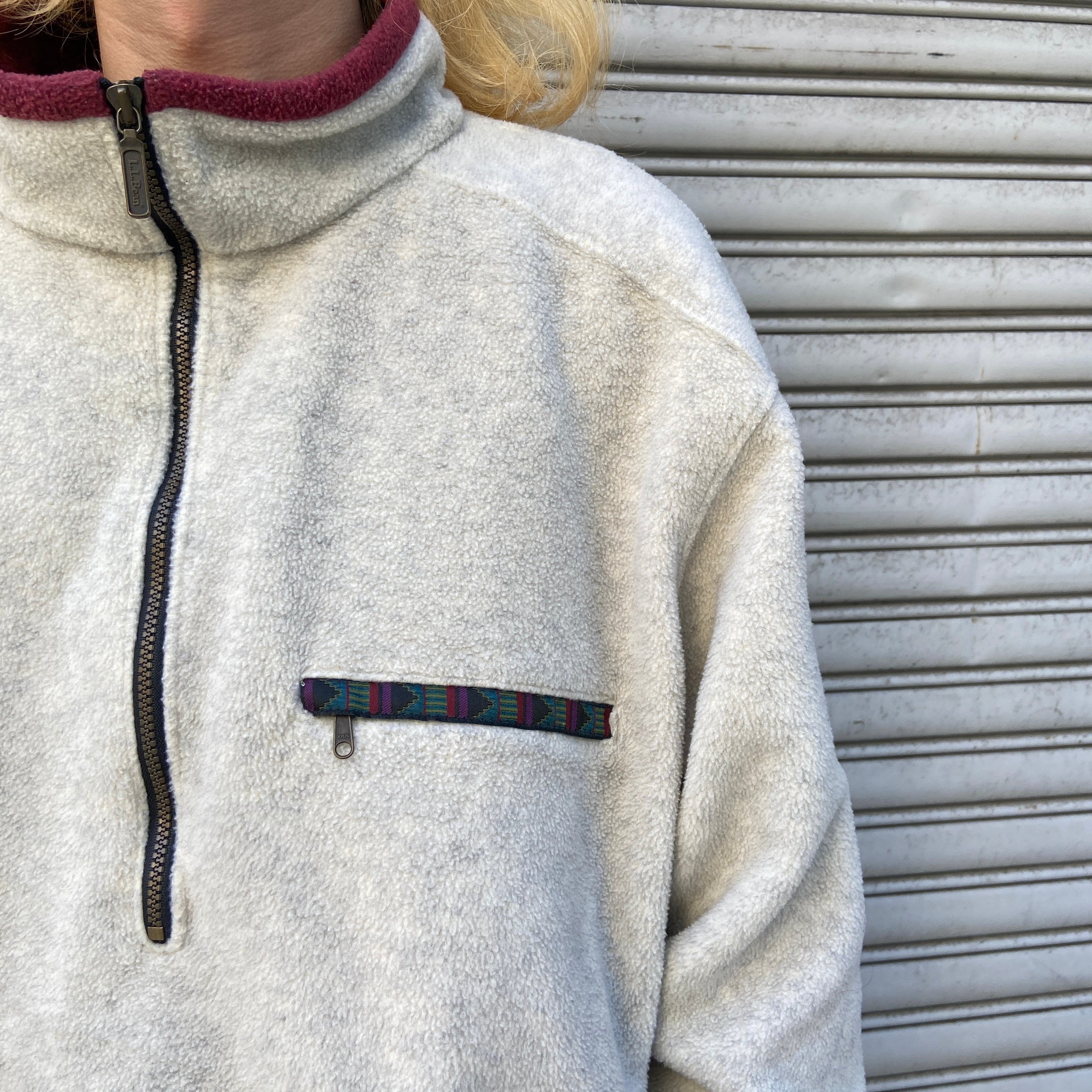 90s L.L.Bean ハーフジップフリースプルオーバー アイボリー XL相当
