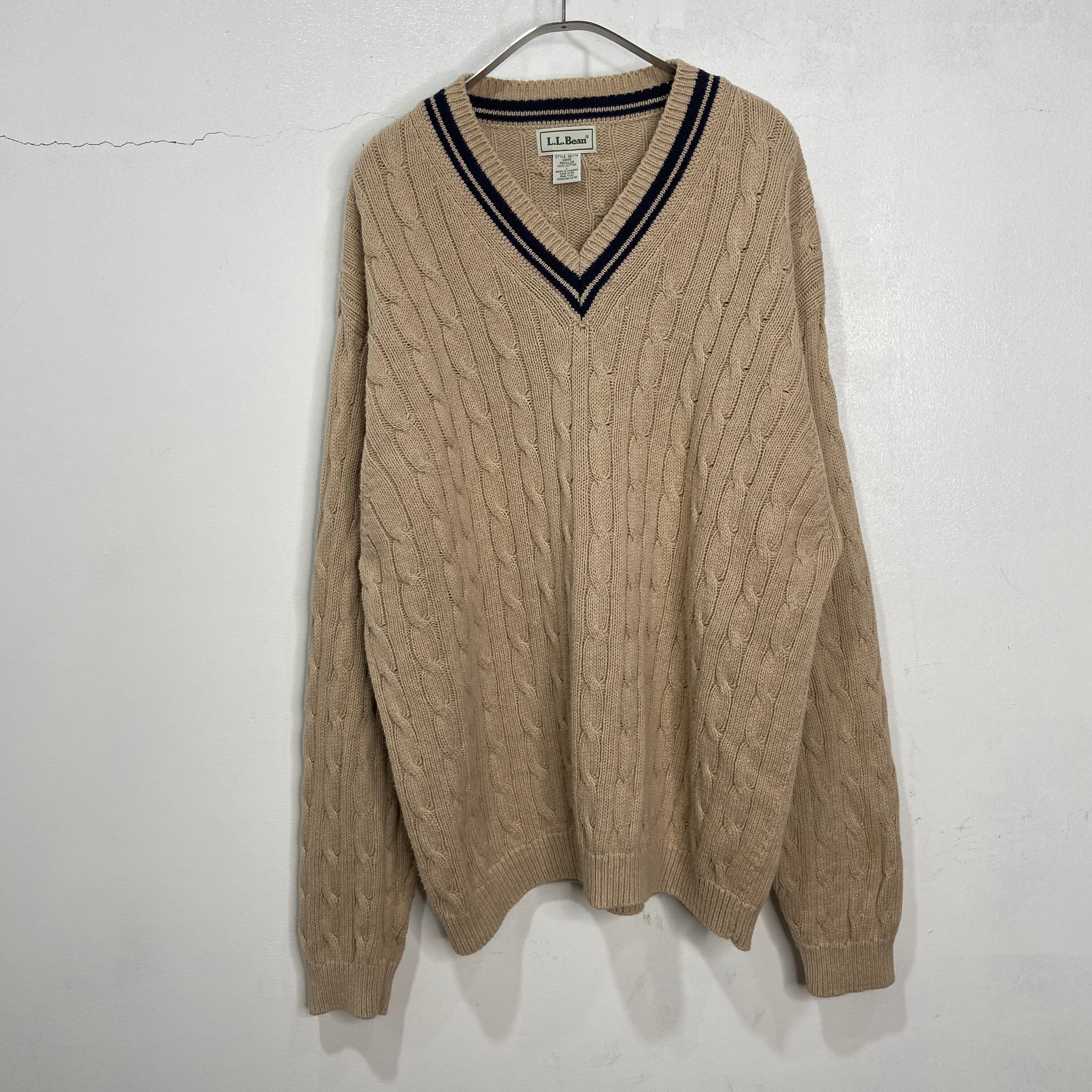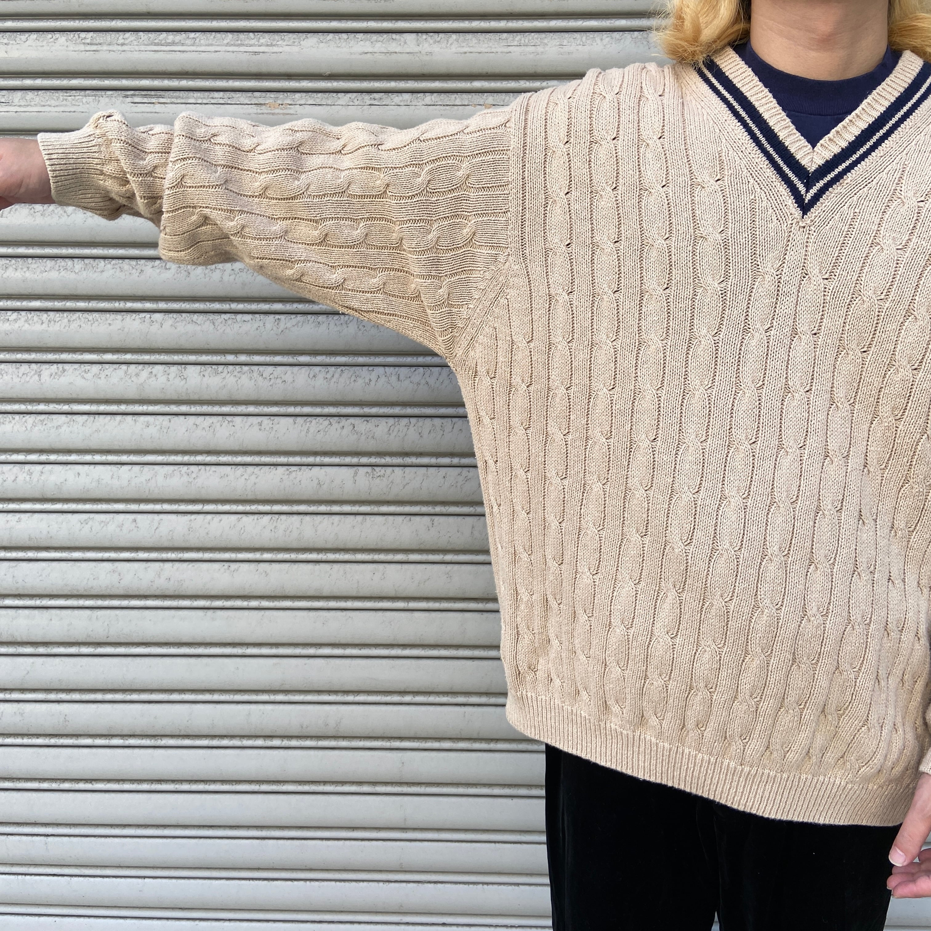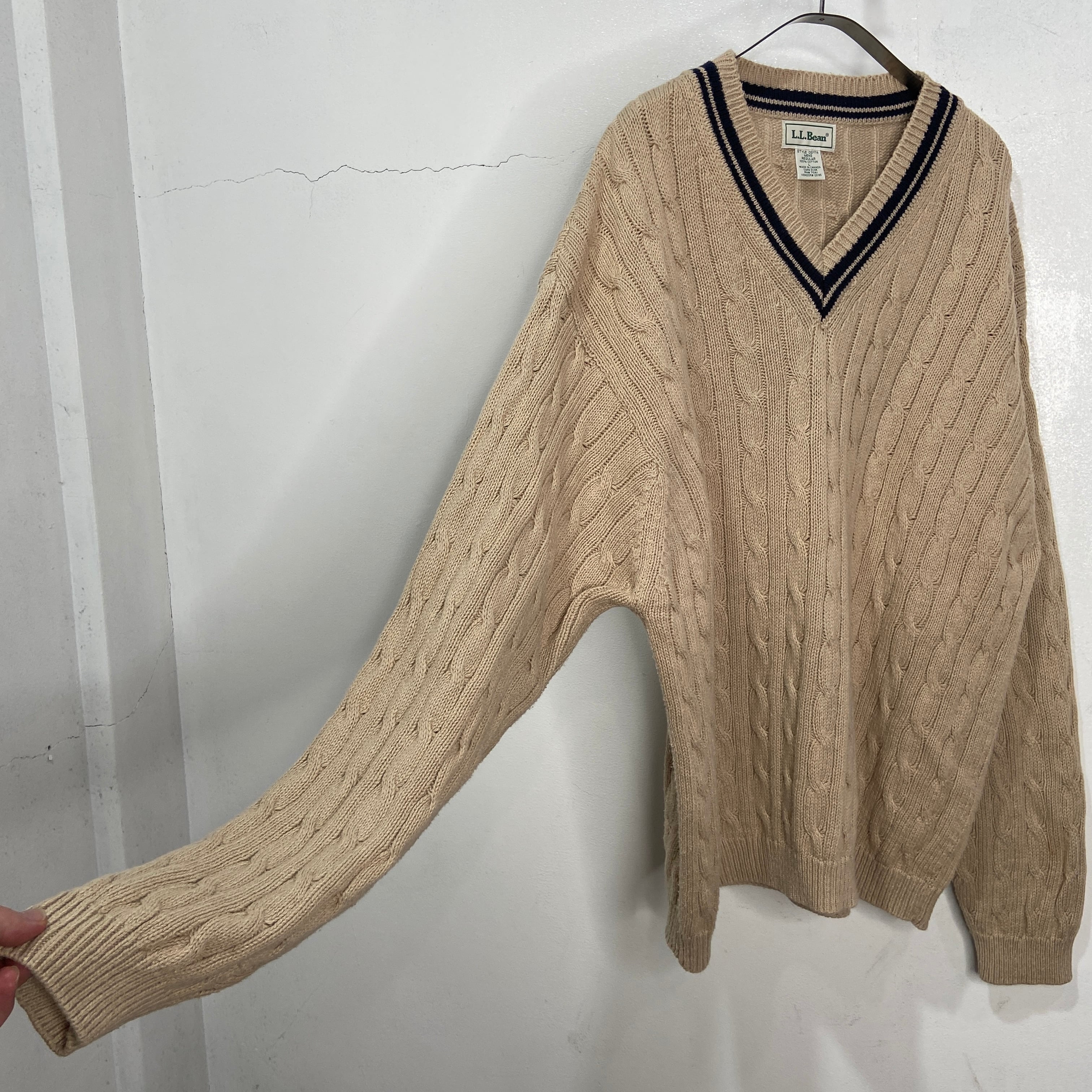 90s L.L.Bean チルデンセーター Vネックニット ベージュ L カナダ製