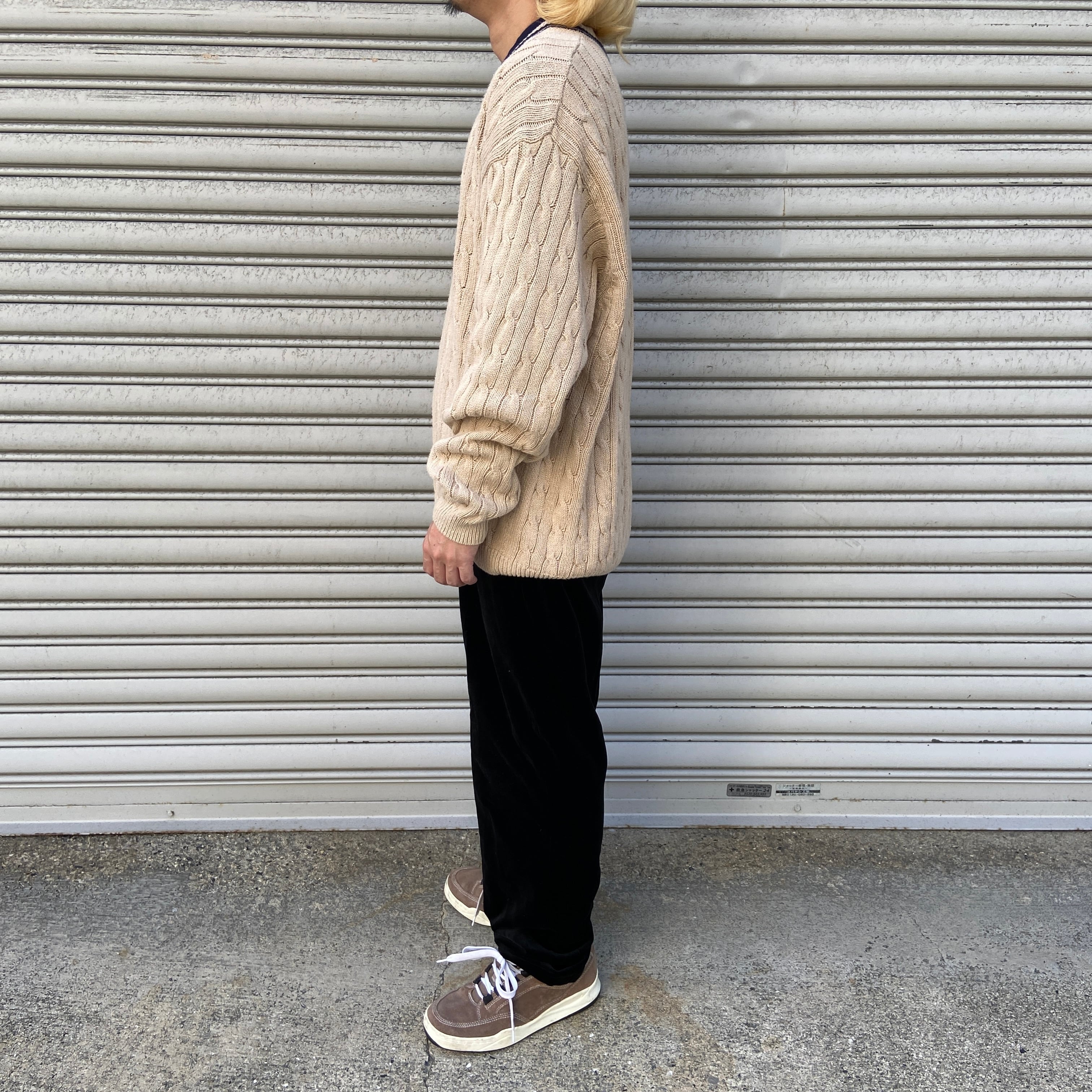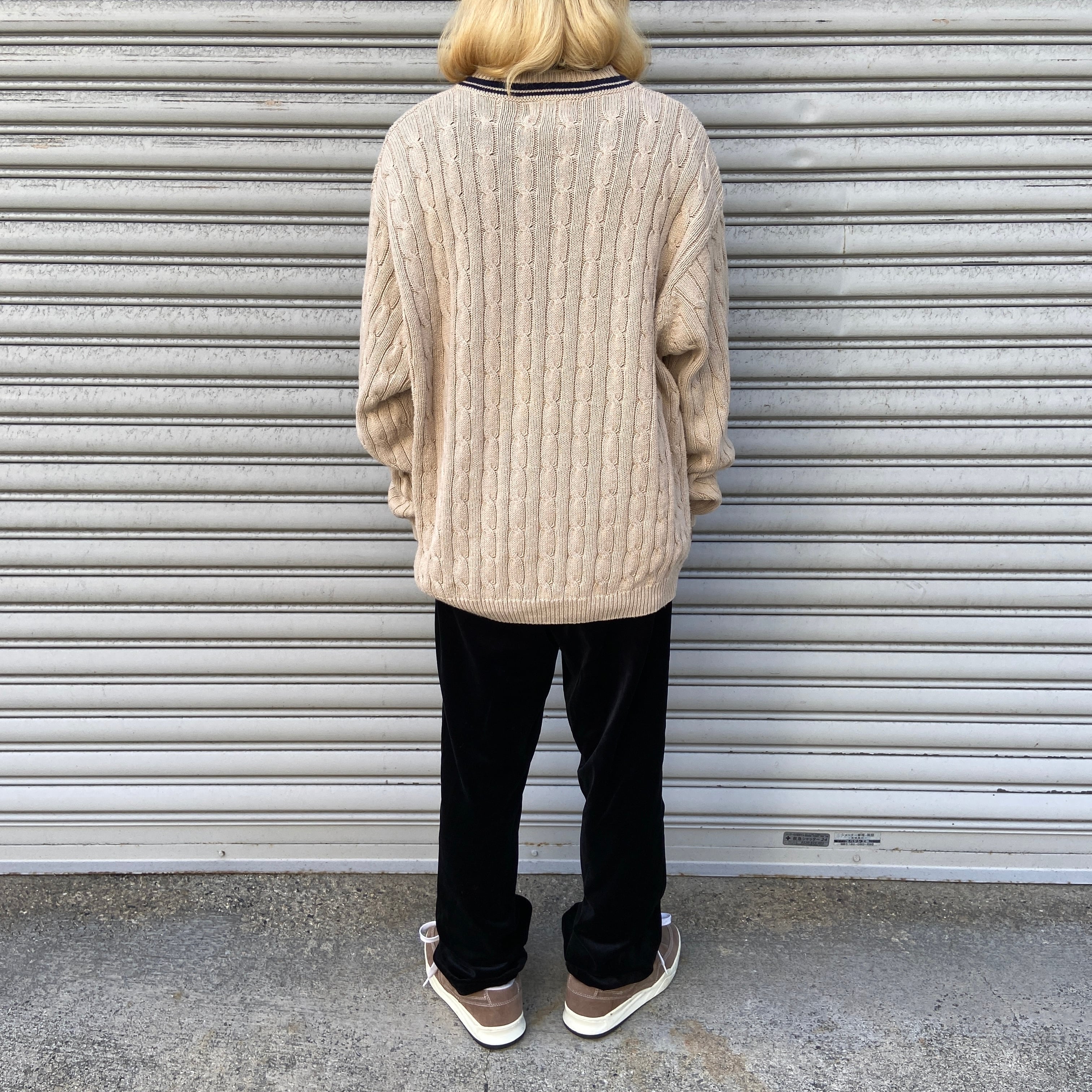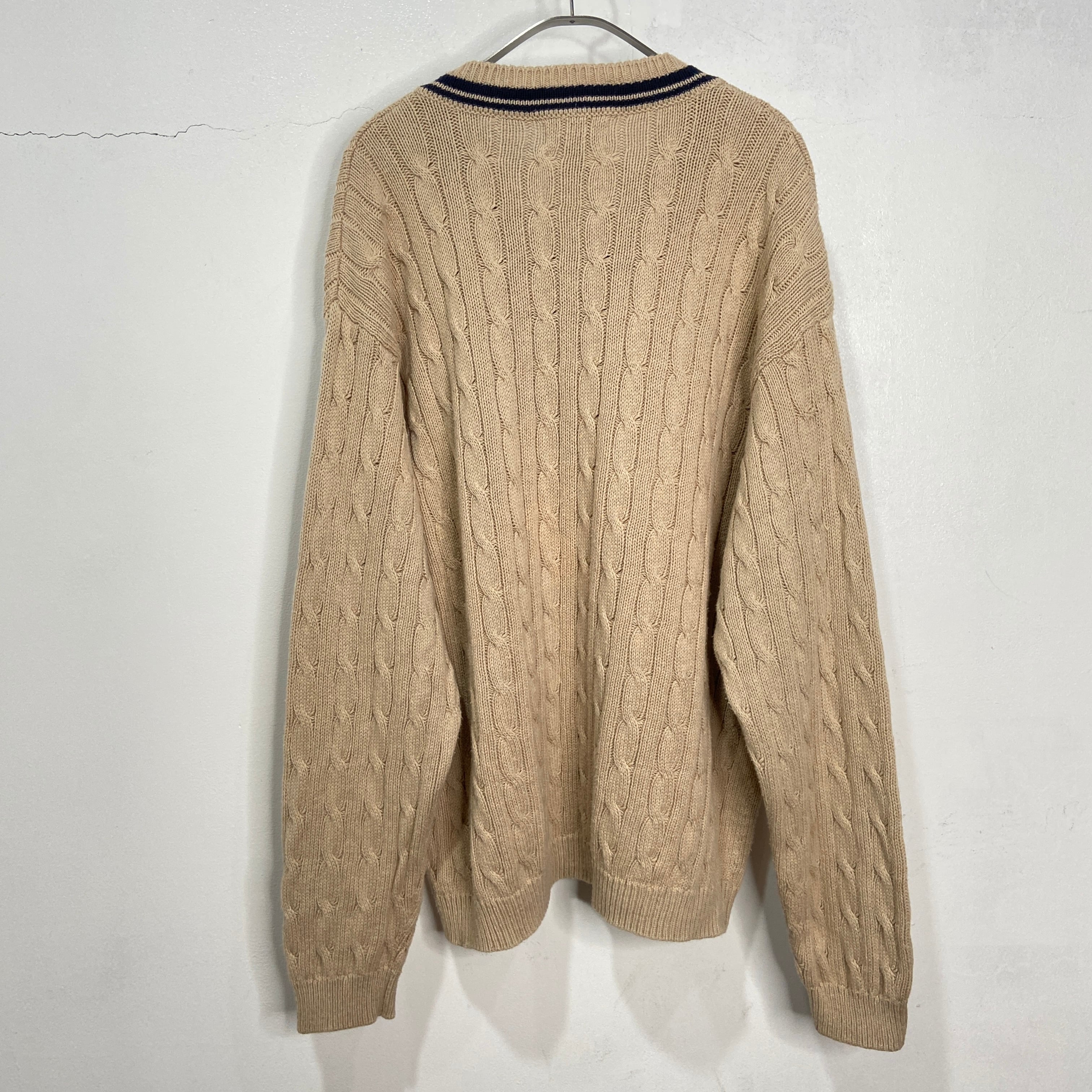 90s L.L.Bean チルデンセーター Vネックニット ベージュ L カナダ製