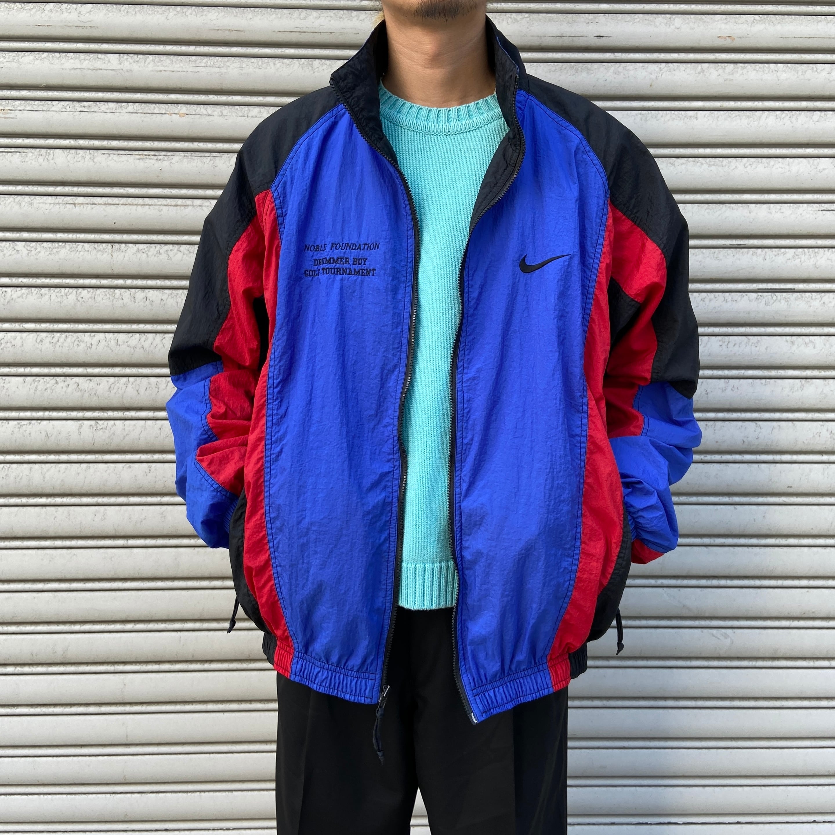 90s NIKE パネル切り替えナイロンジャケット ビッグスウォッシュ XL