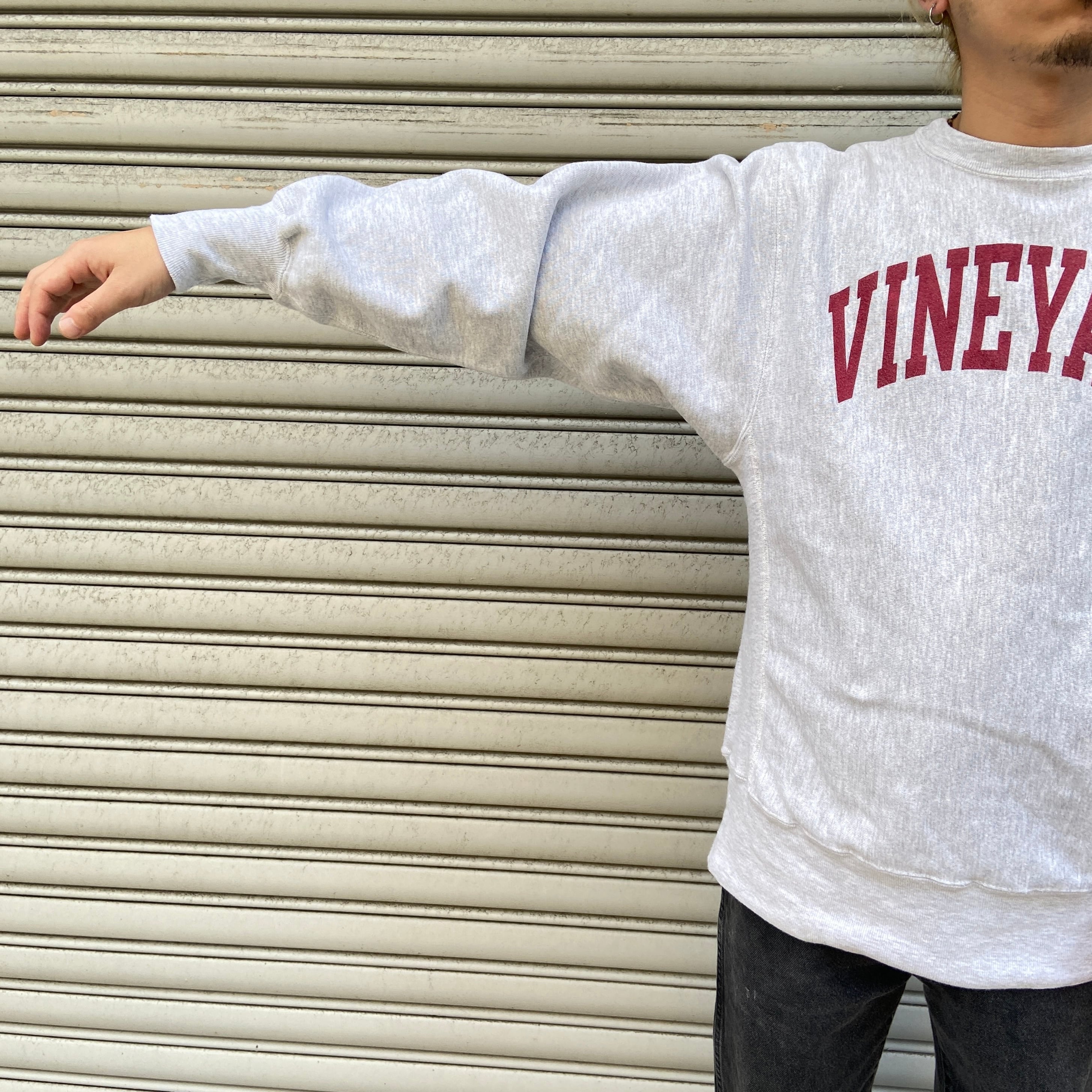 グレーカラーの肉厚な生地に、淡い赤色のVINEYARD(ブドウ畑)のロゴが映える1着です^ ^