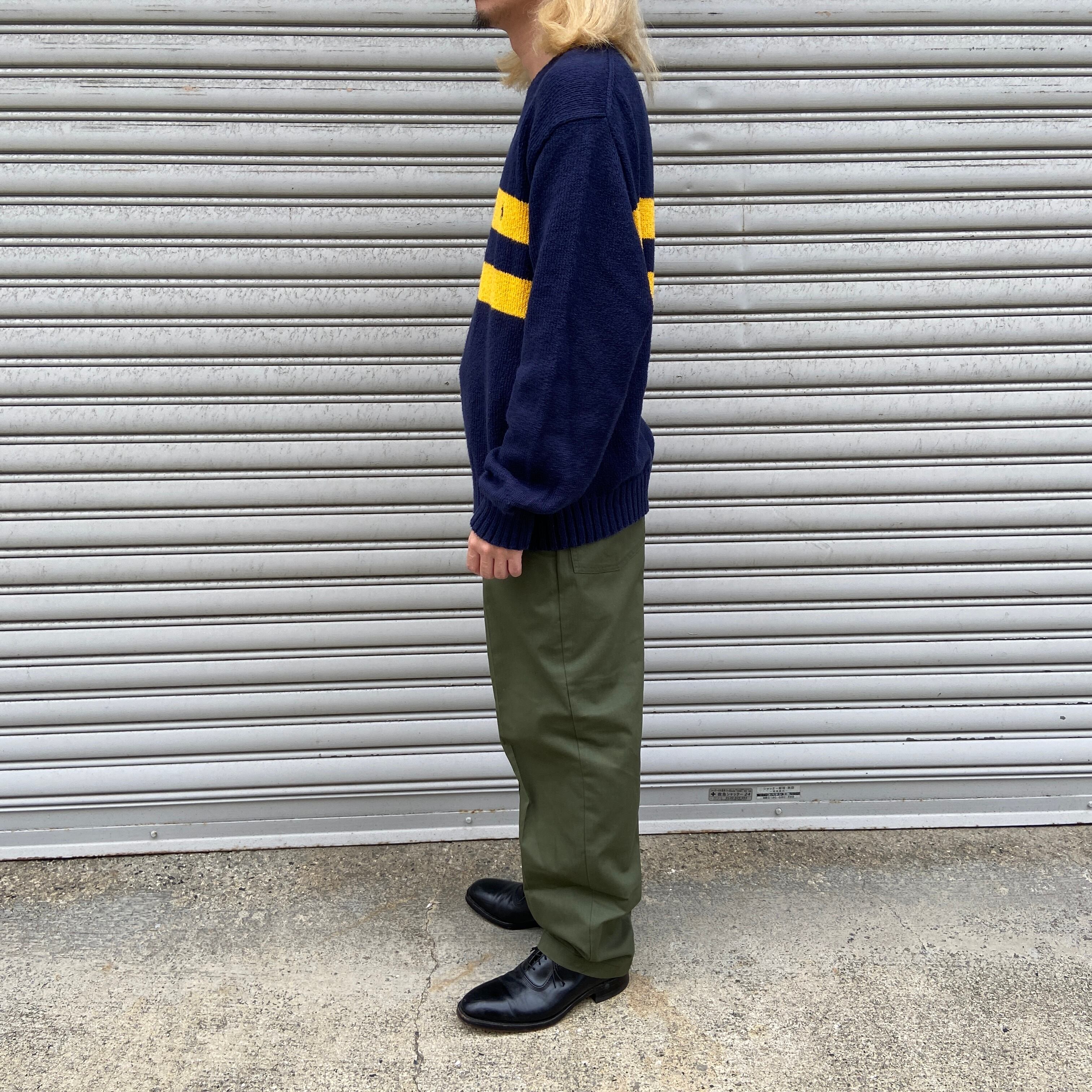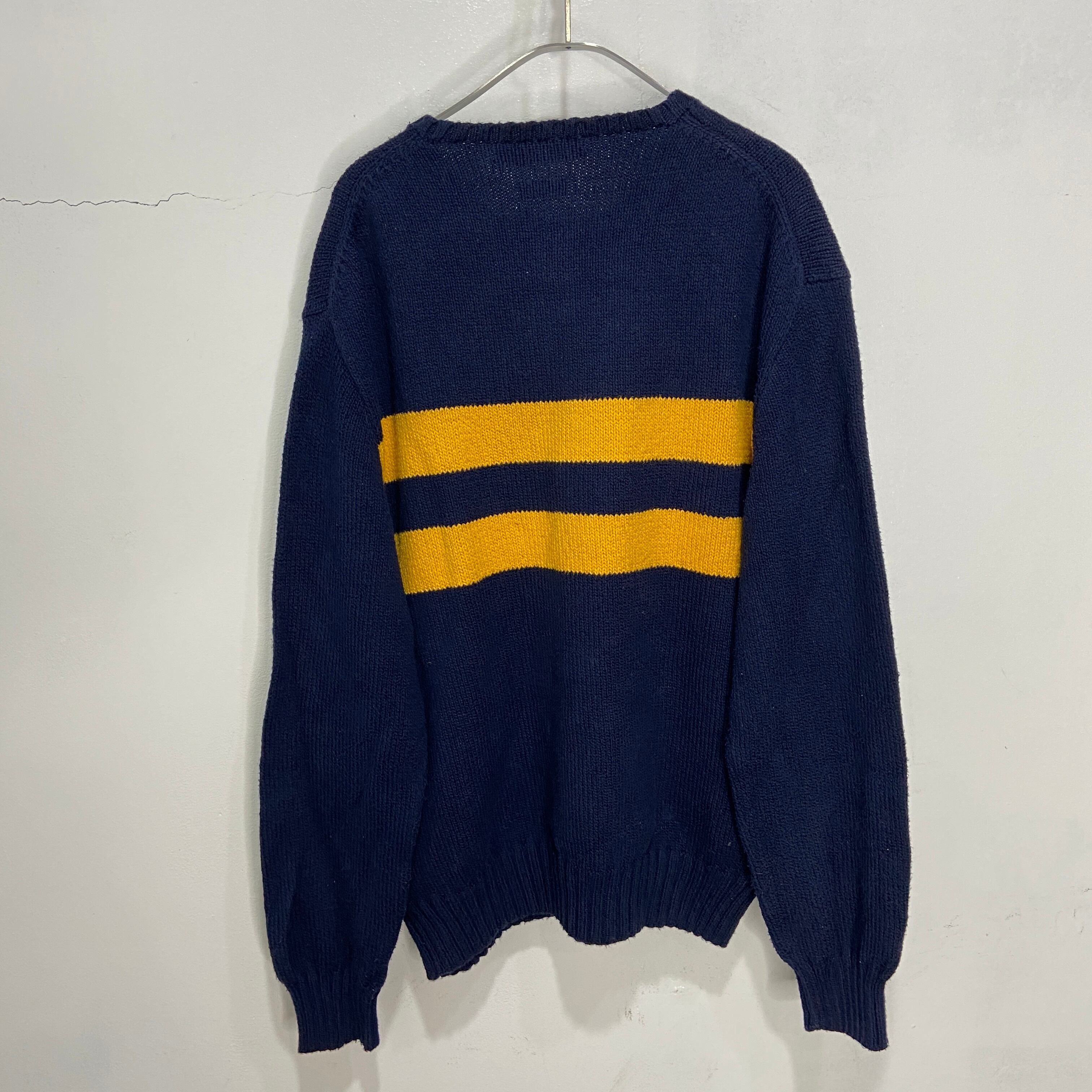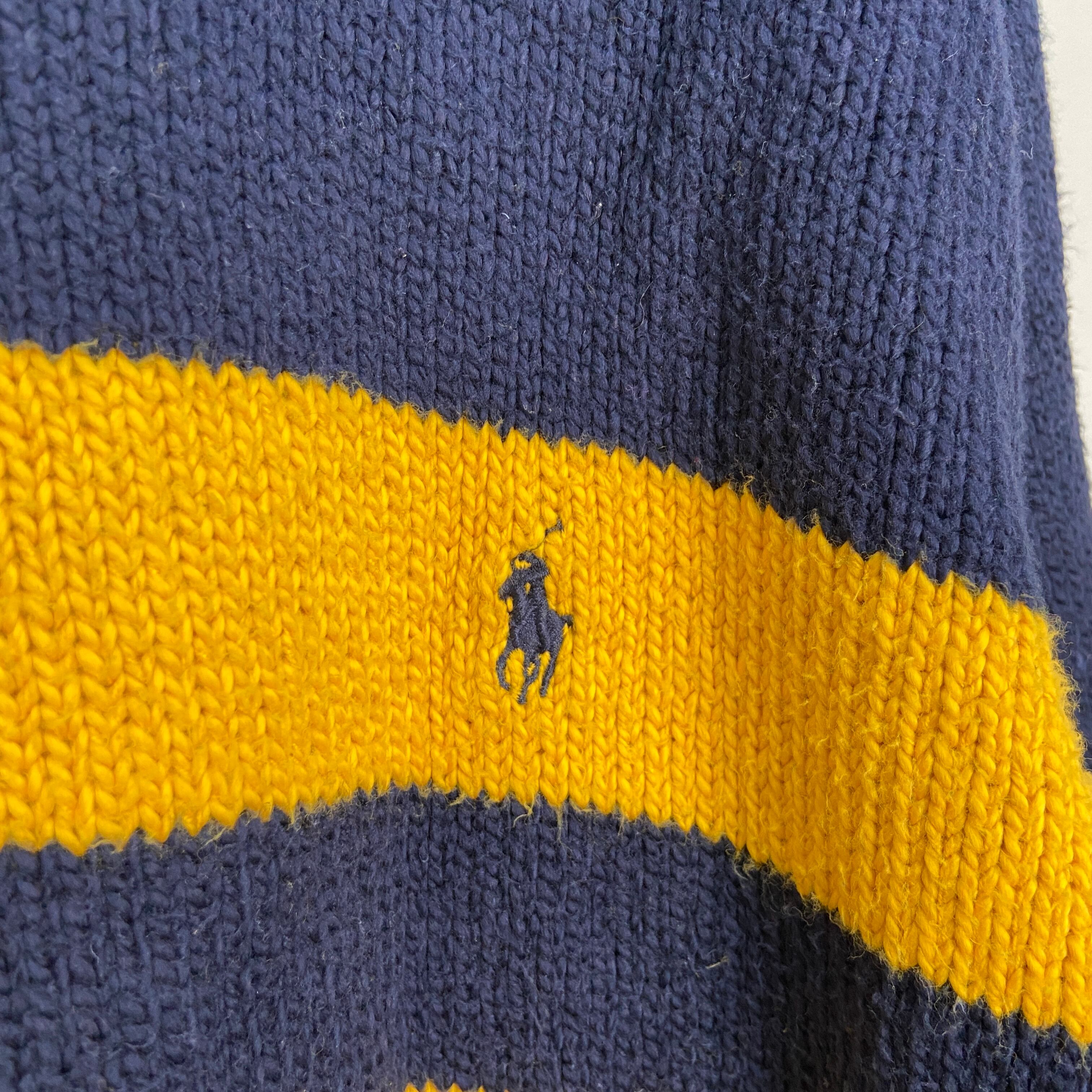 80s RalphLauren ボーダー柄コットンセーター ポニーロゴ 紺 XL