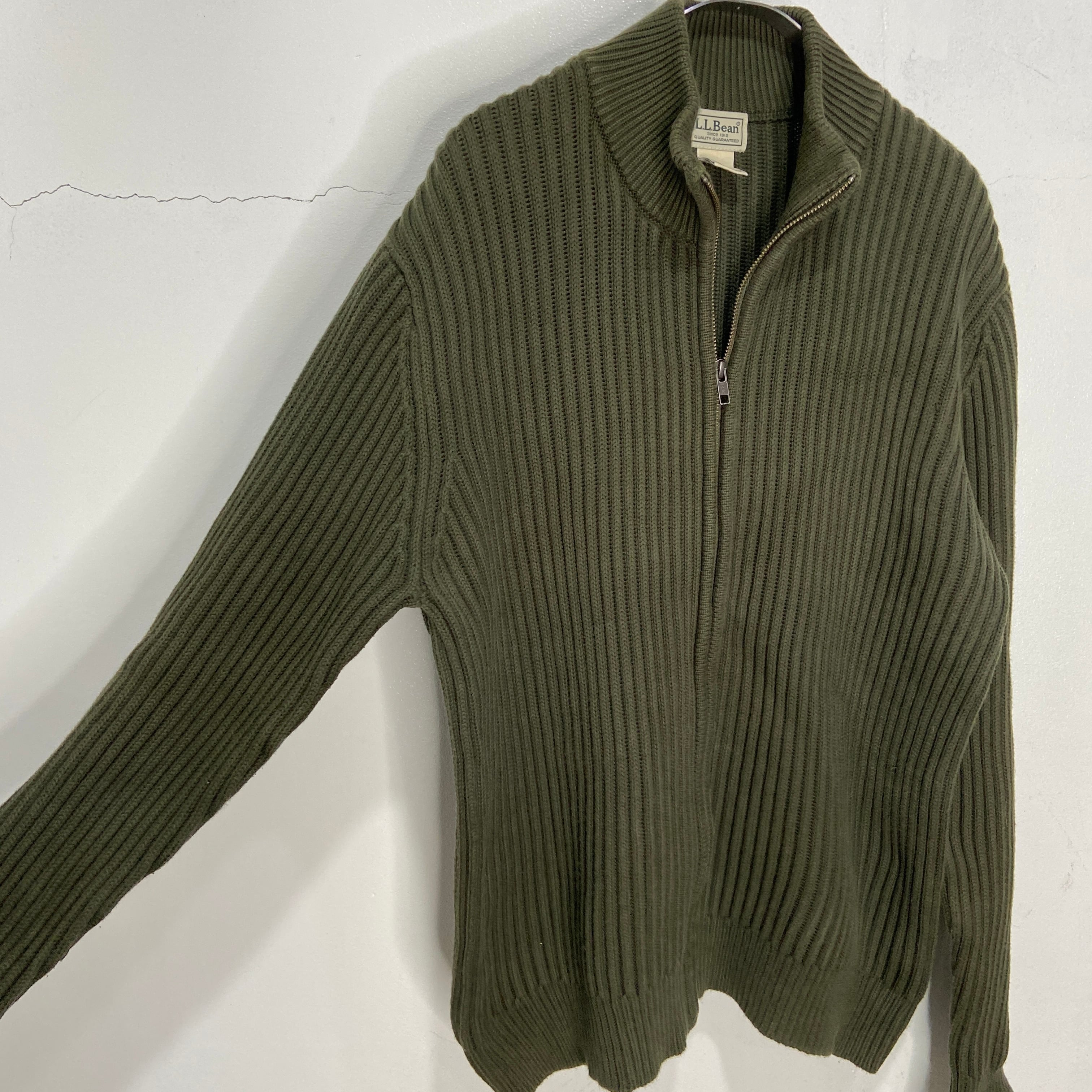 90s L.L.Bean ドライバーズニット コットンニット カーキ M